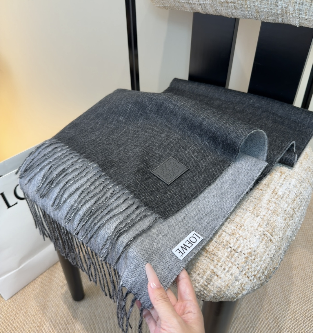 🉐️180 【▪Loewe · 罗意威难得一见的温柔配色,低调又不失优雅❗】重点推荐❗双面配色,一条围巾两种风格搭配,高级舒适时髦气质,名小众,却大牌范十足,超级安利❗loewe这款触动内心的柔美围巾,极其简单的颜色搭配抢眼的变色logo,点睛之笔确又不失美感,成功人士的追求,色彩绝对💯,有点独有的仙气,绝对的情侣款不二之选,颜色淡雅,不妖娆❗规格:30x 180cm