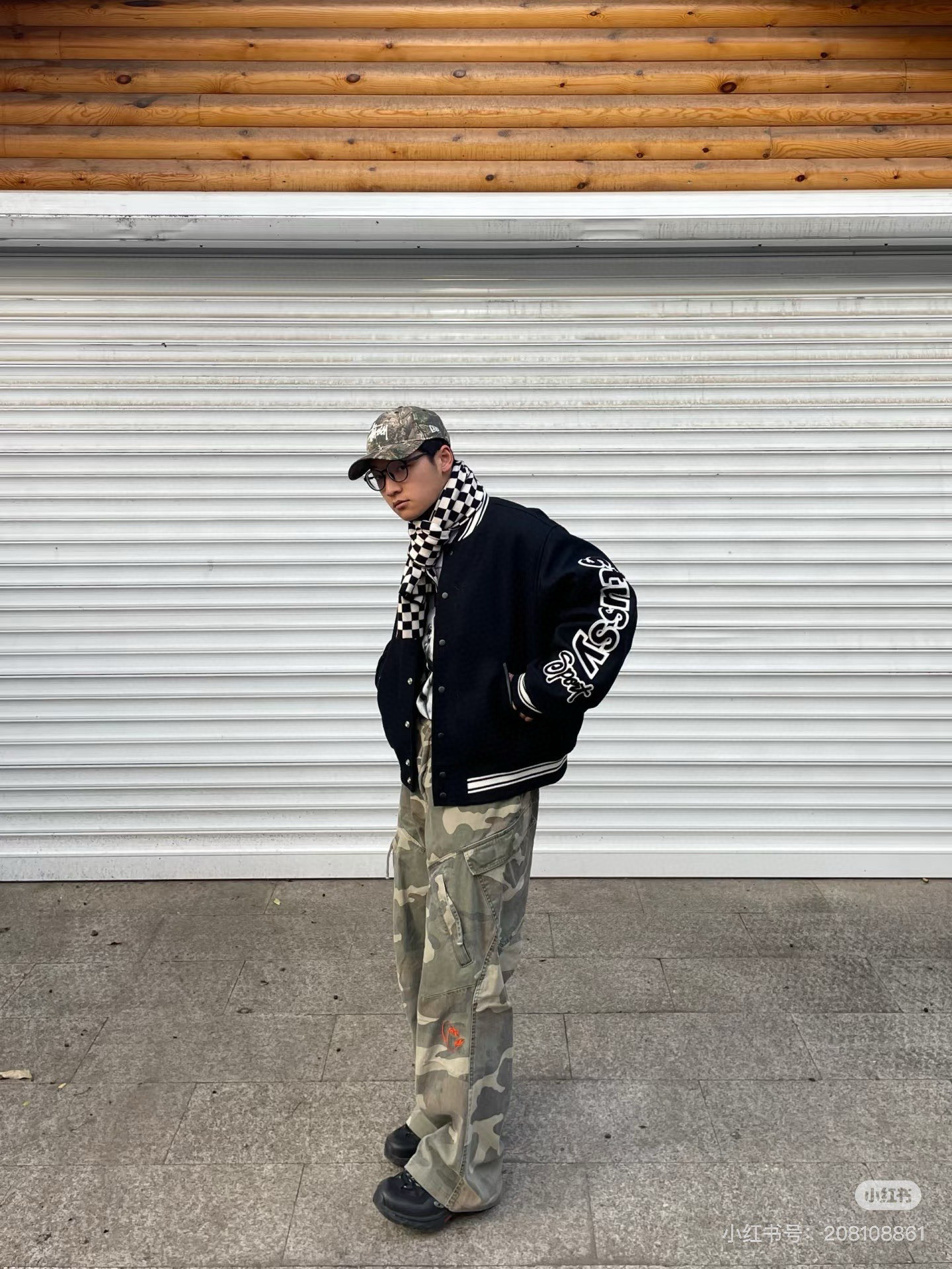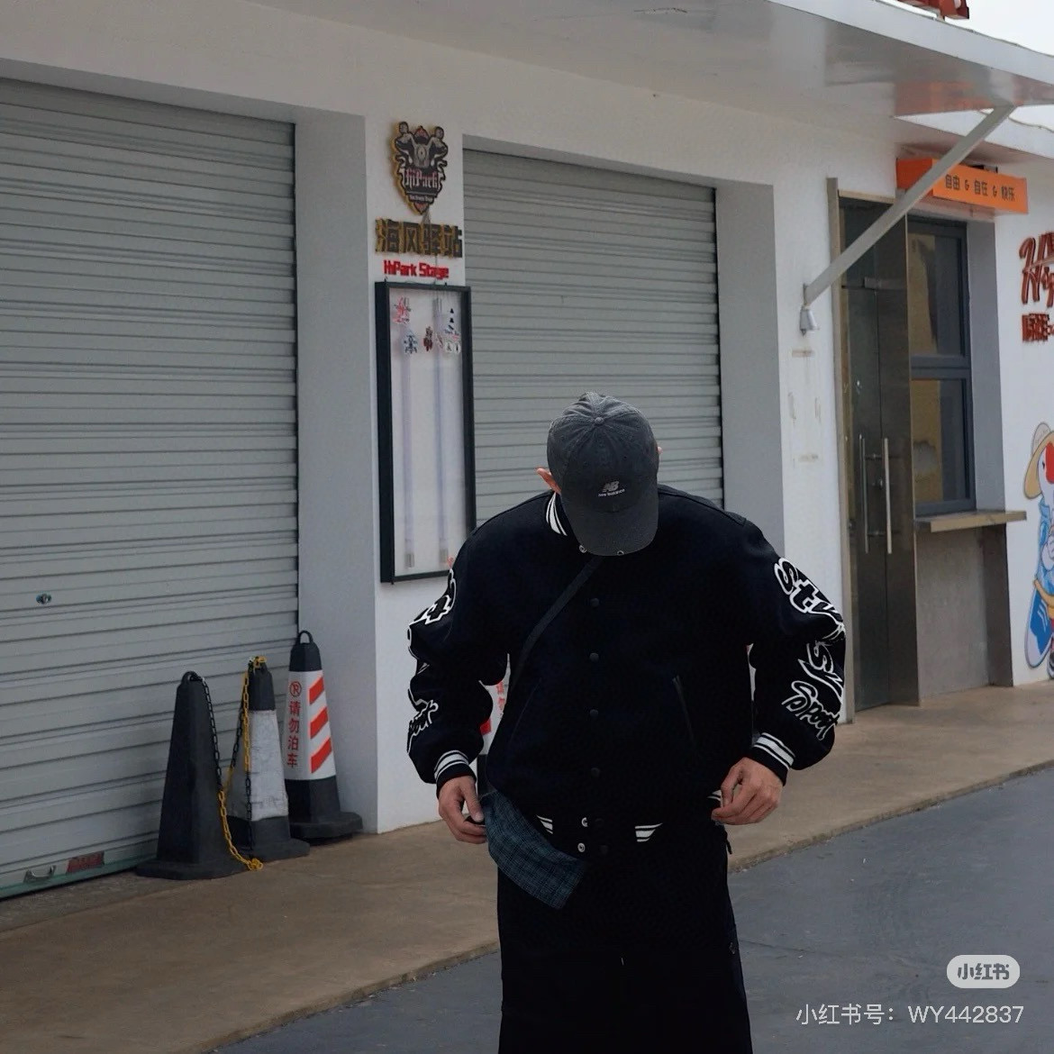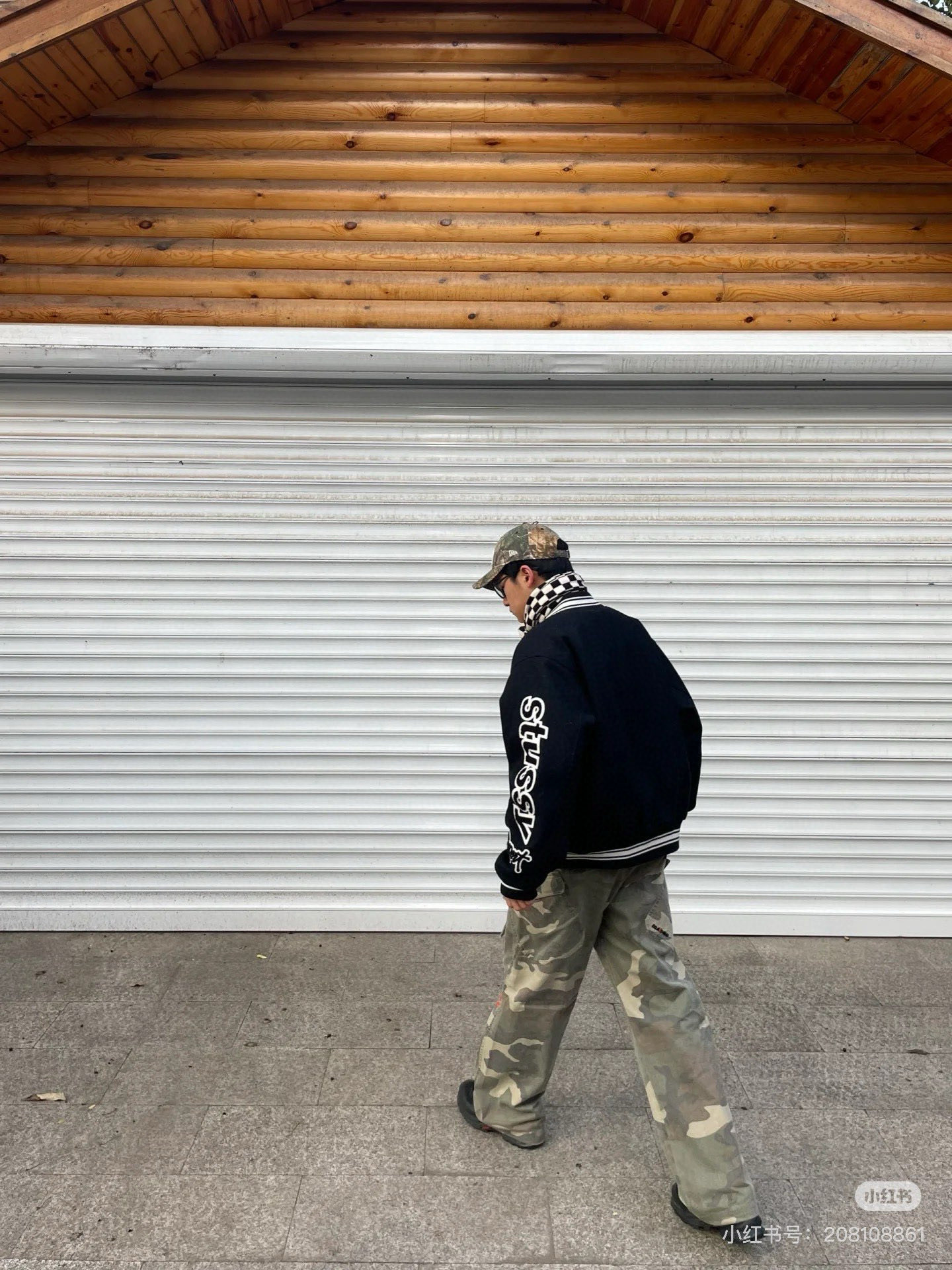 Stussy/斯图西 25Fw 手臂毛巾绣字母棒球服外套上身效果#