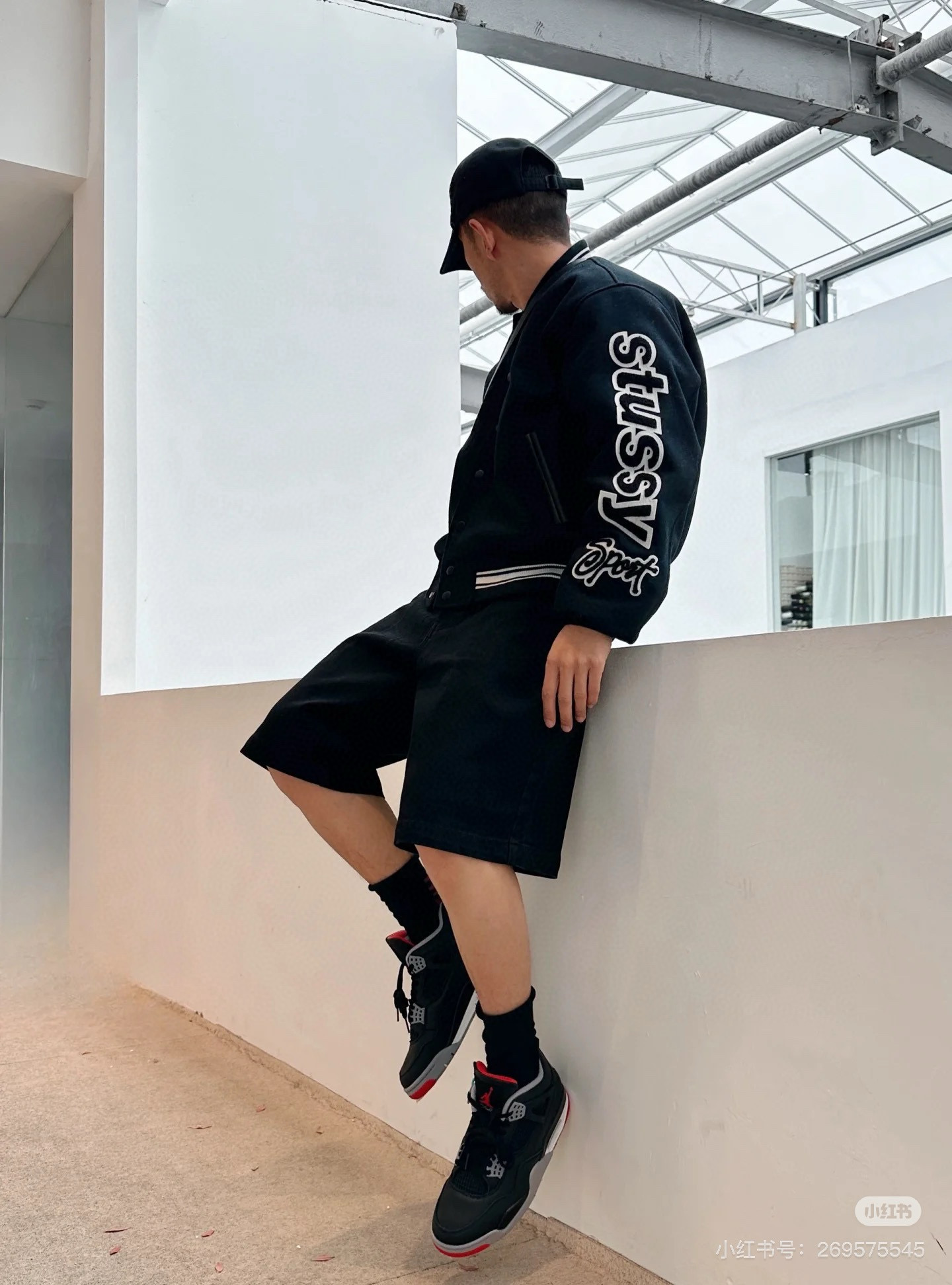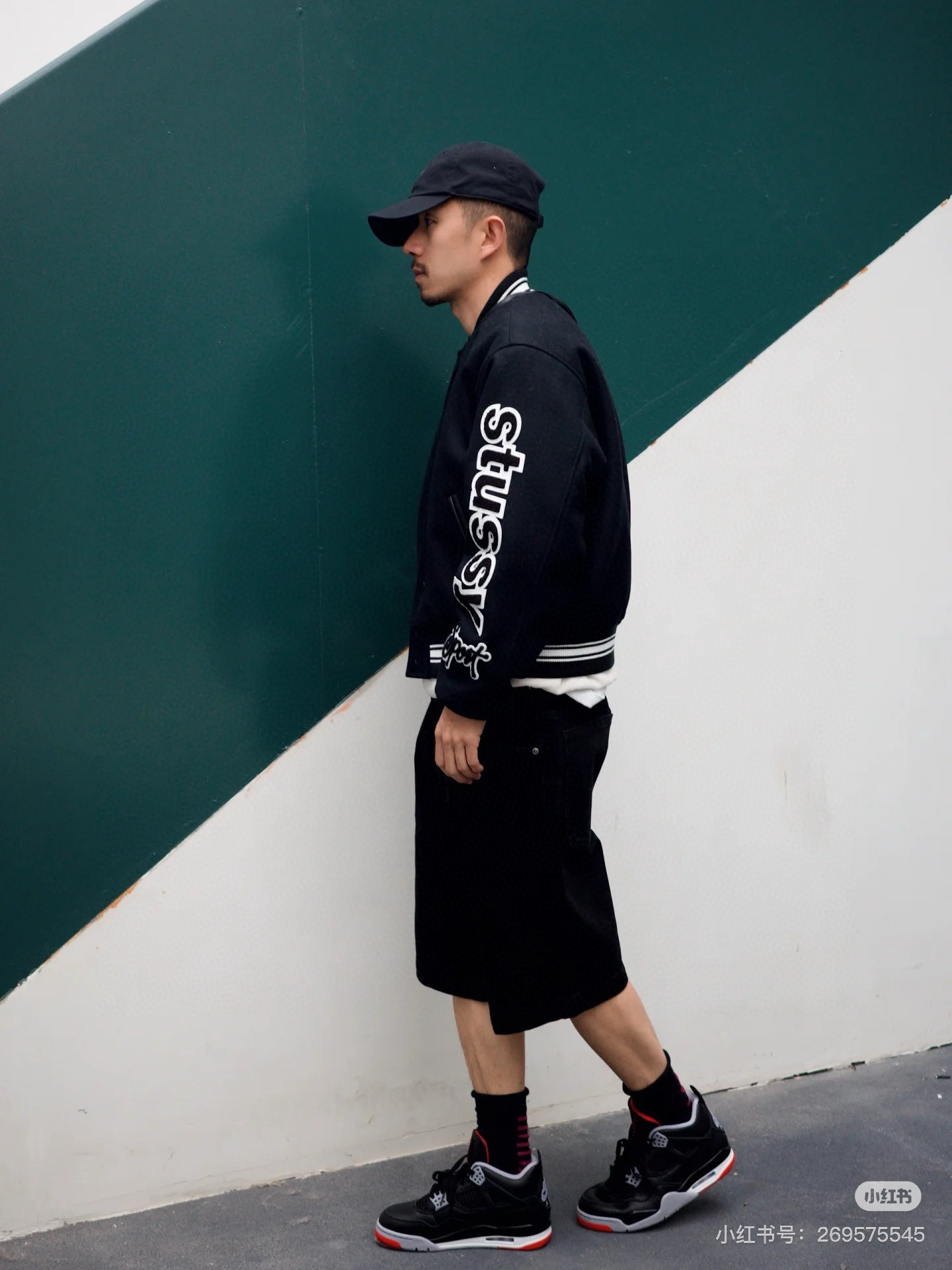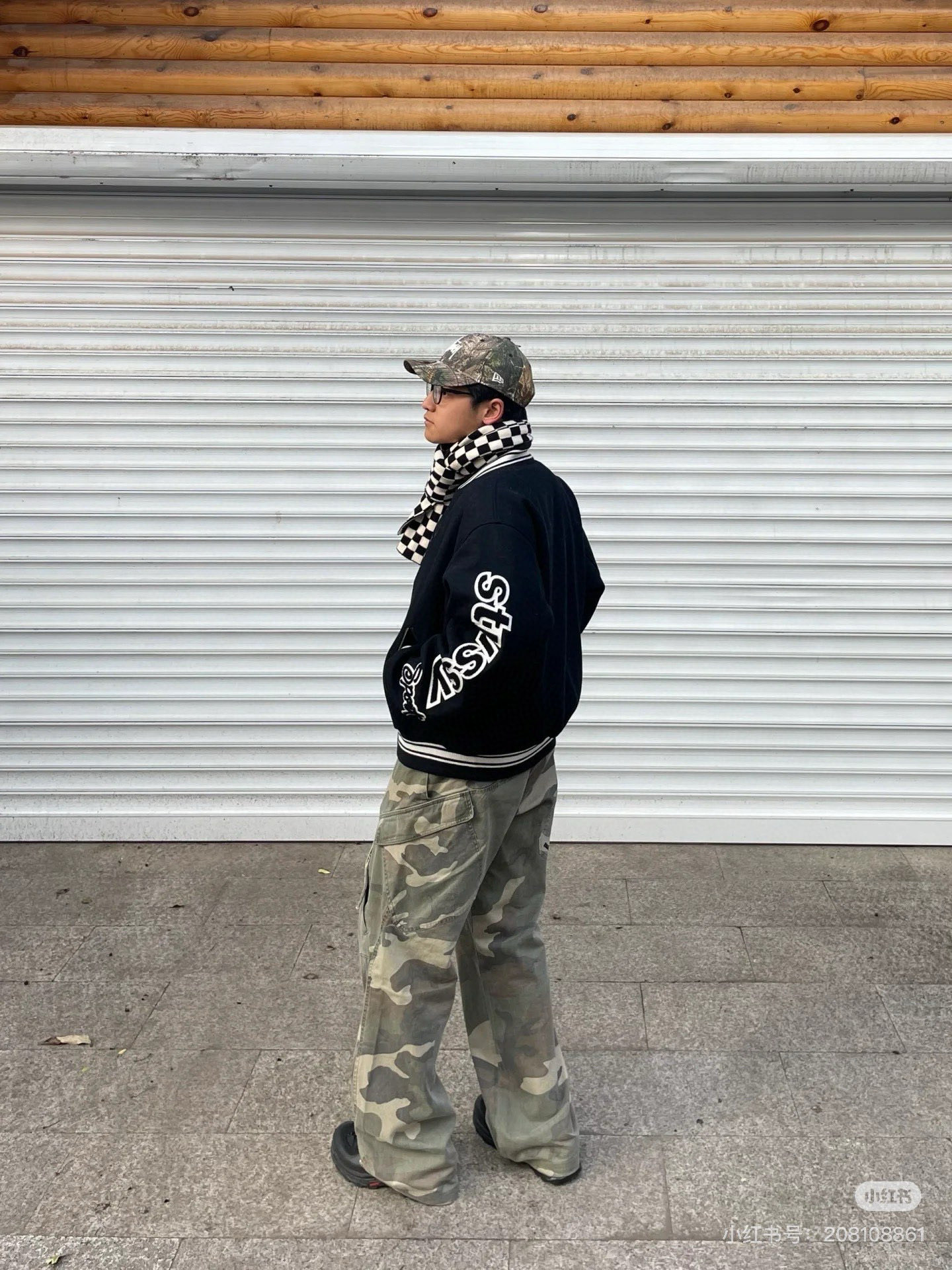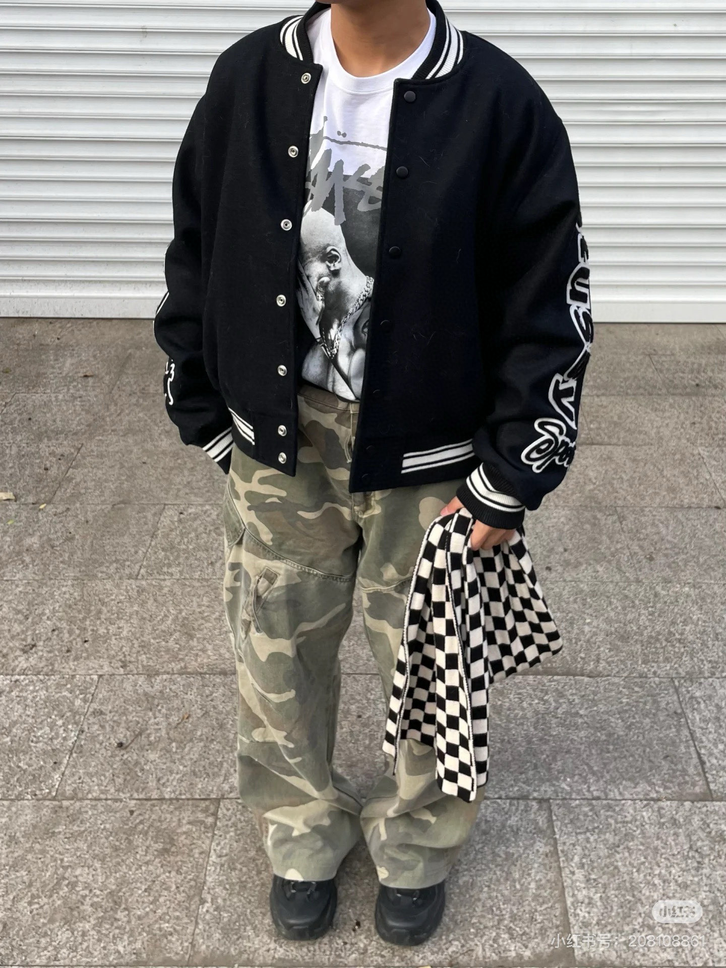 Stussy/斯图西 25Fw 手臂毛巾绣字母棒球服外套上身效果#