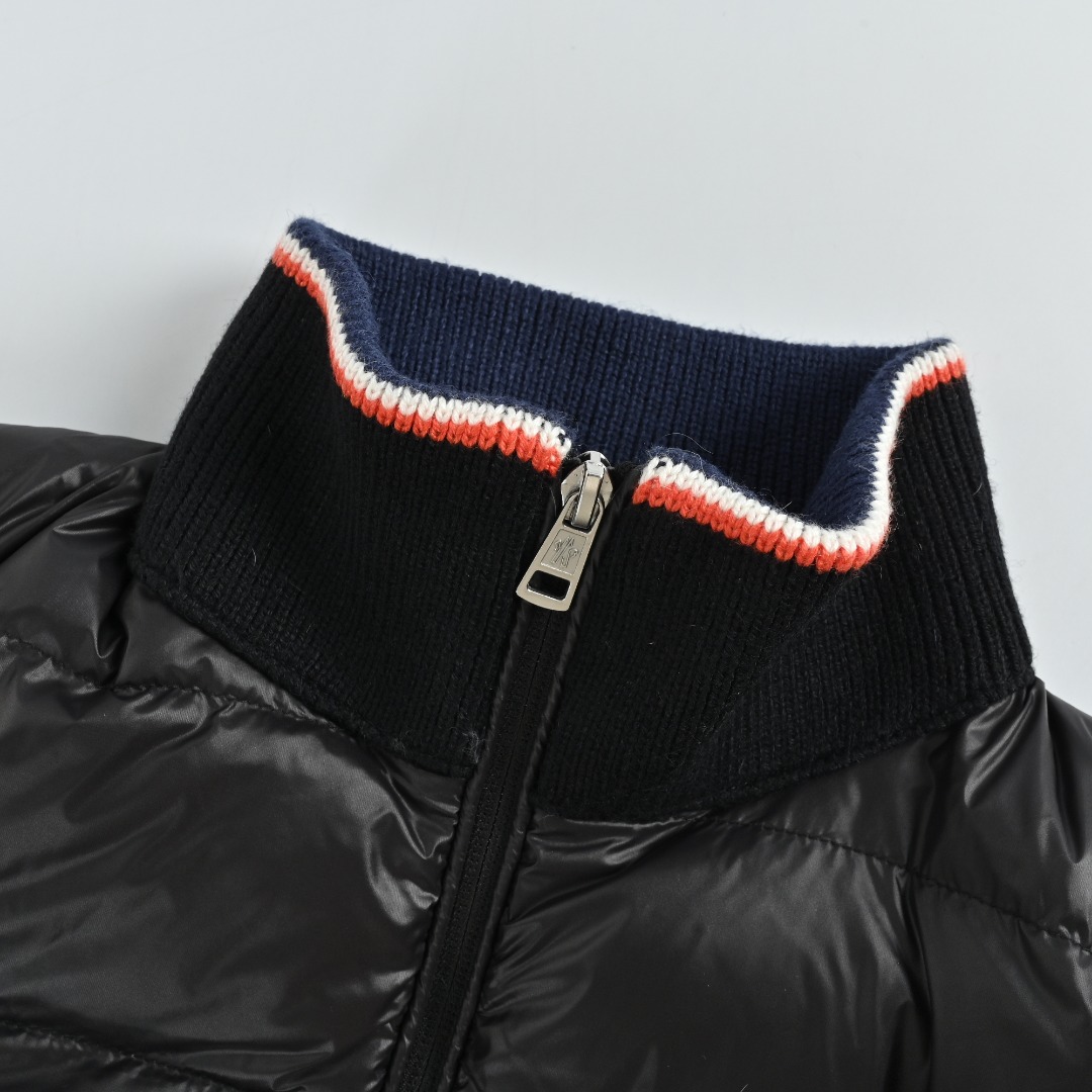 本地自取💰490 MONCLER蒙口MC 绗缝毛织拼接立领羽绒服 前身面料采用100%聚酯纤维高密编织而成,0.08mm厚度避免增加整体重量且顺滑,高密编织结构形成风阻层,保护保暖层热效率不流失,同时可承受羽绒膨胀压力,防止长期使用后变形破损。 使用较粗的纱线,织出有明显厚度和分量感的毛织面料,纹理清晰可见,有一种粗犷、复古的肌理感,且骨架感好,比较挺括,能长久保持衣物的廓形。同时提供了更多的静止空气层,锁住热量。 高质量白鸭绒填充,充绒量达130g,保暖效果极佳。 衣领处的三色饰边,汲取传统灵感,成为点睛之笔。顺滑的口袋拉链开合提升实用性和美感度。 Size:1 2 3 4