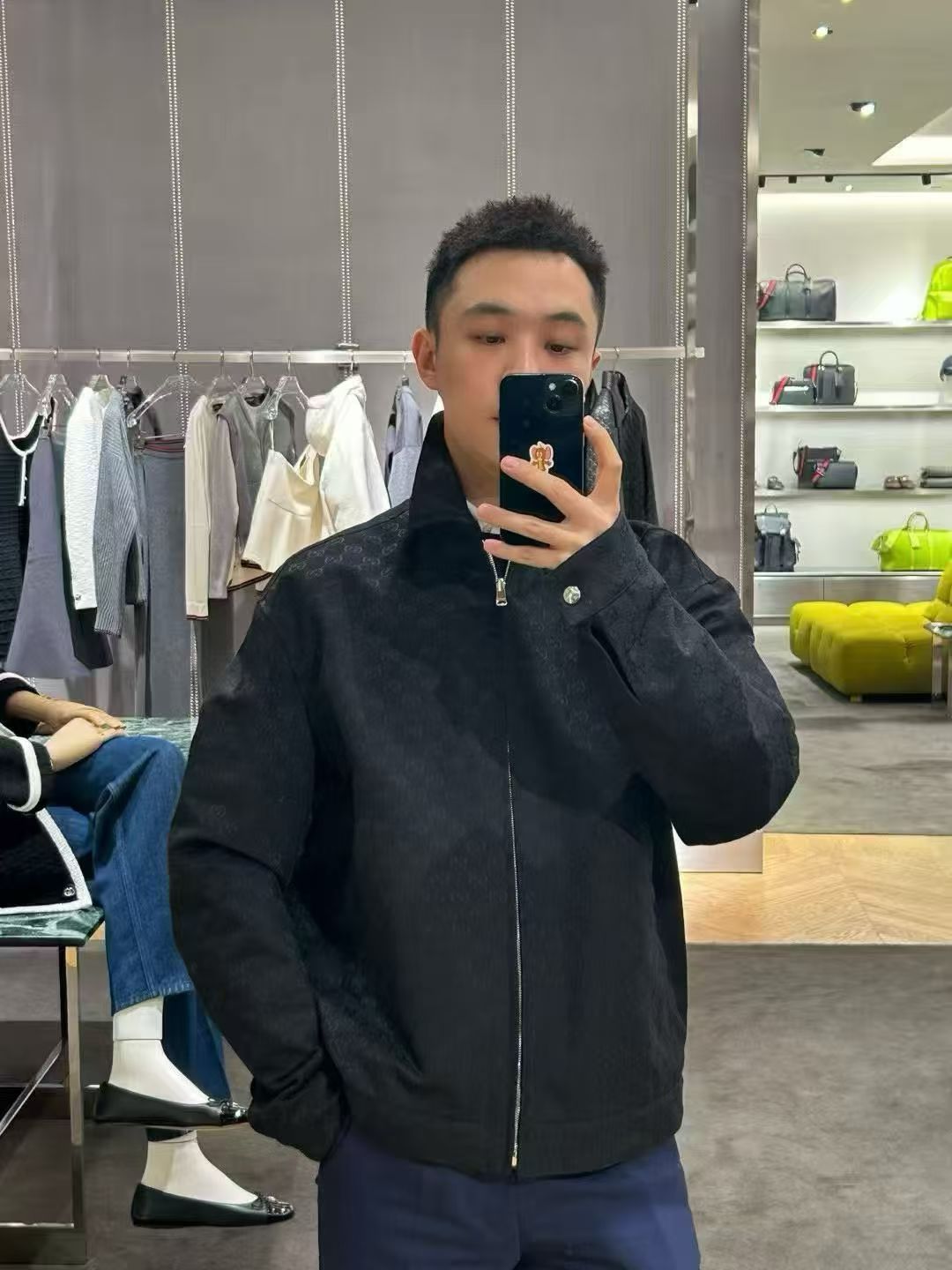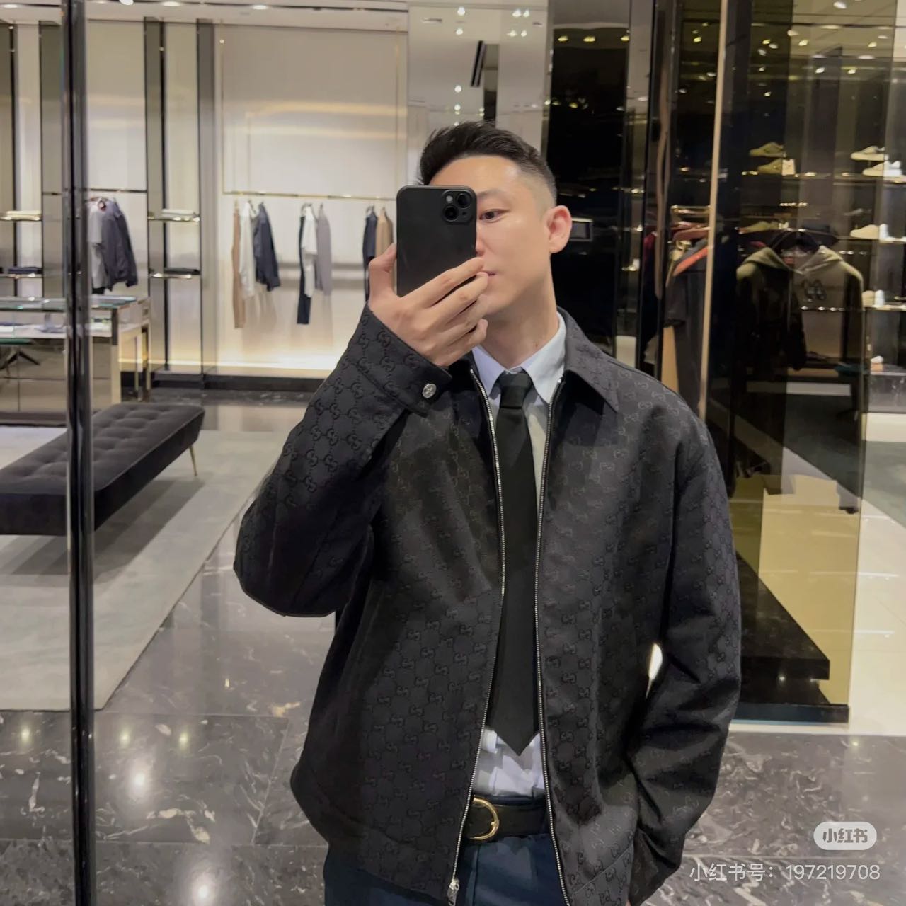 GUCCI古驰GUC 双面提花GG帆布尼龙夹克外套 上身效果#