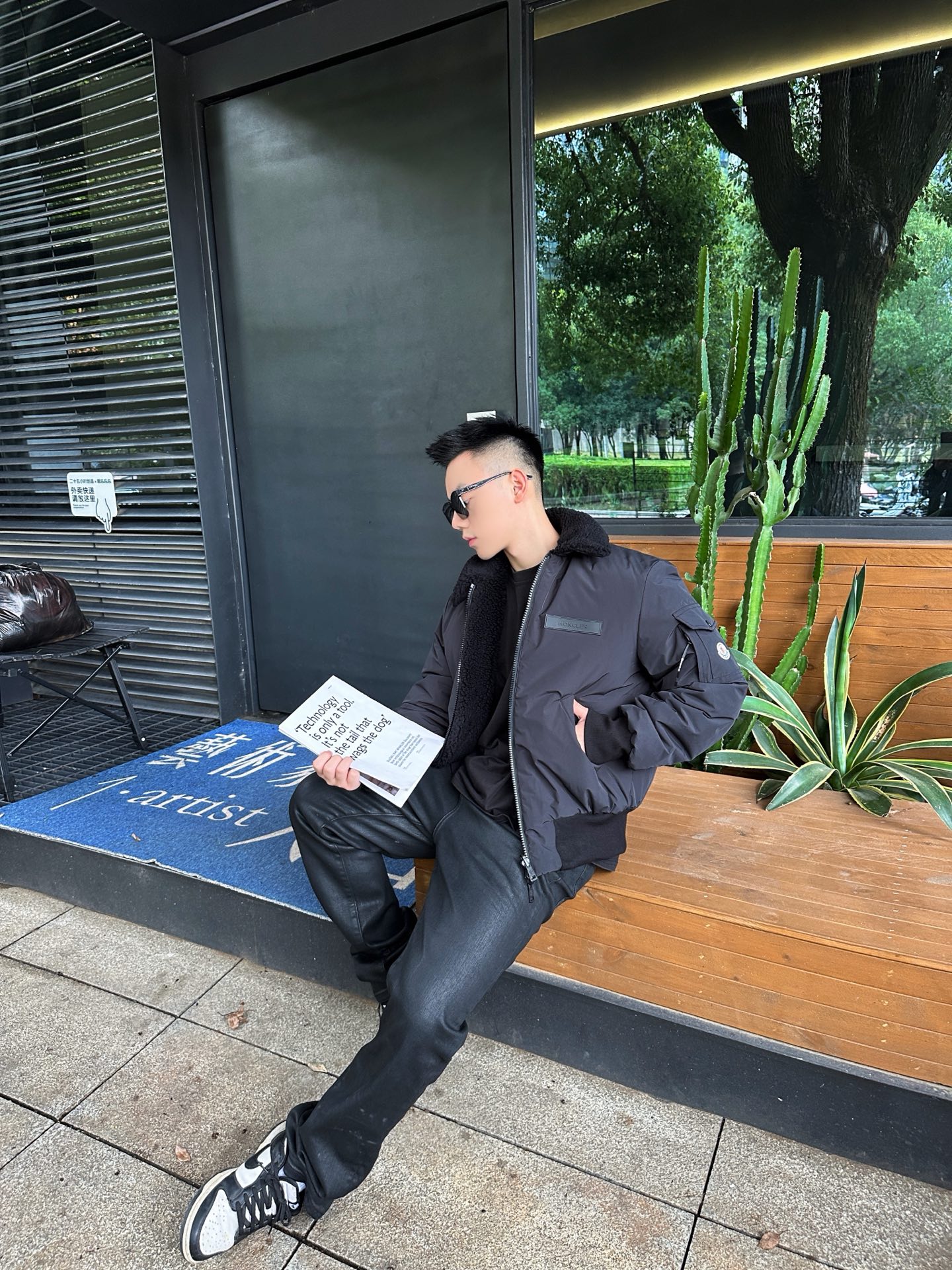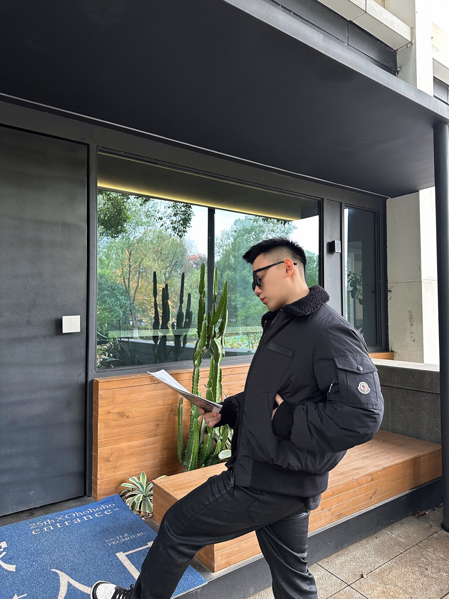 MONCLER蒙口MC 毛领双面飞行员羽绒外套 上身效果#