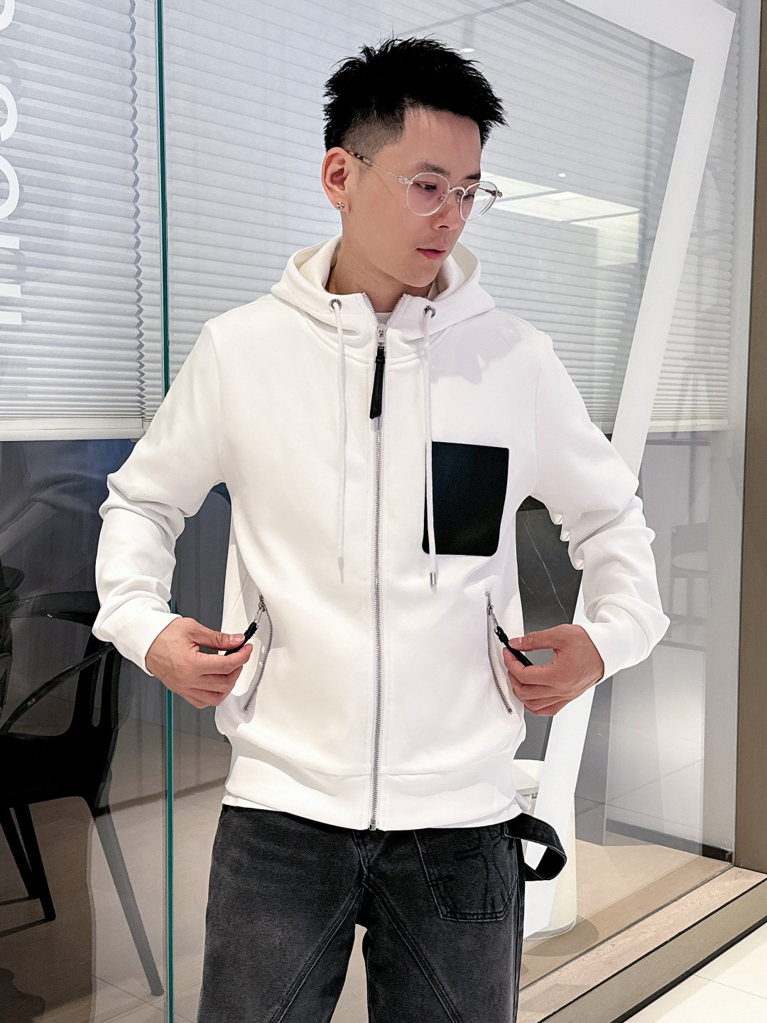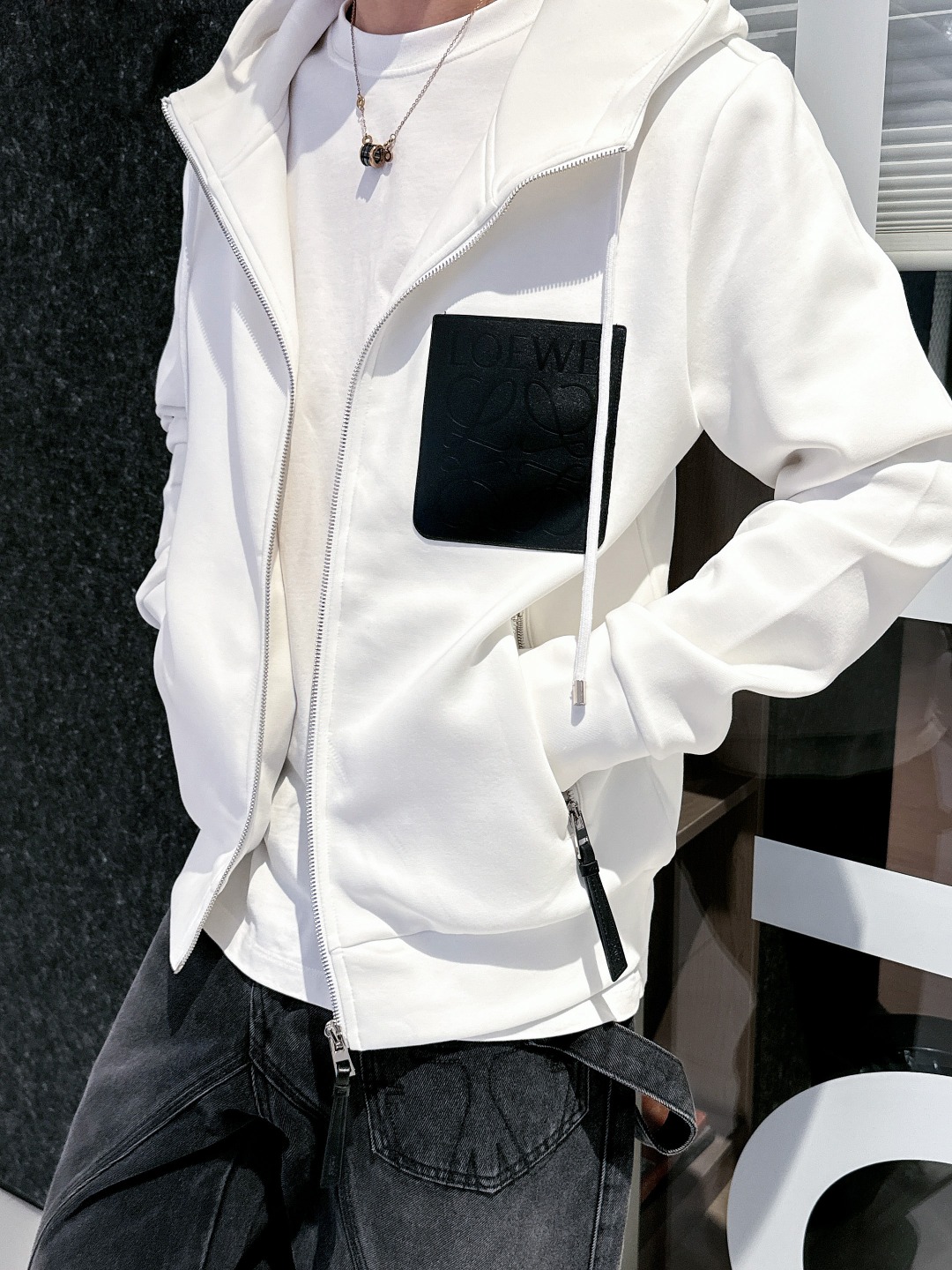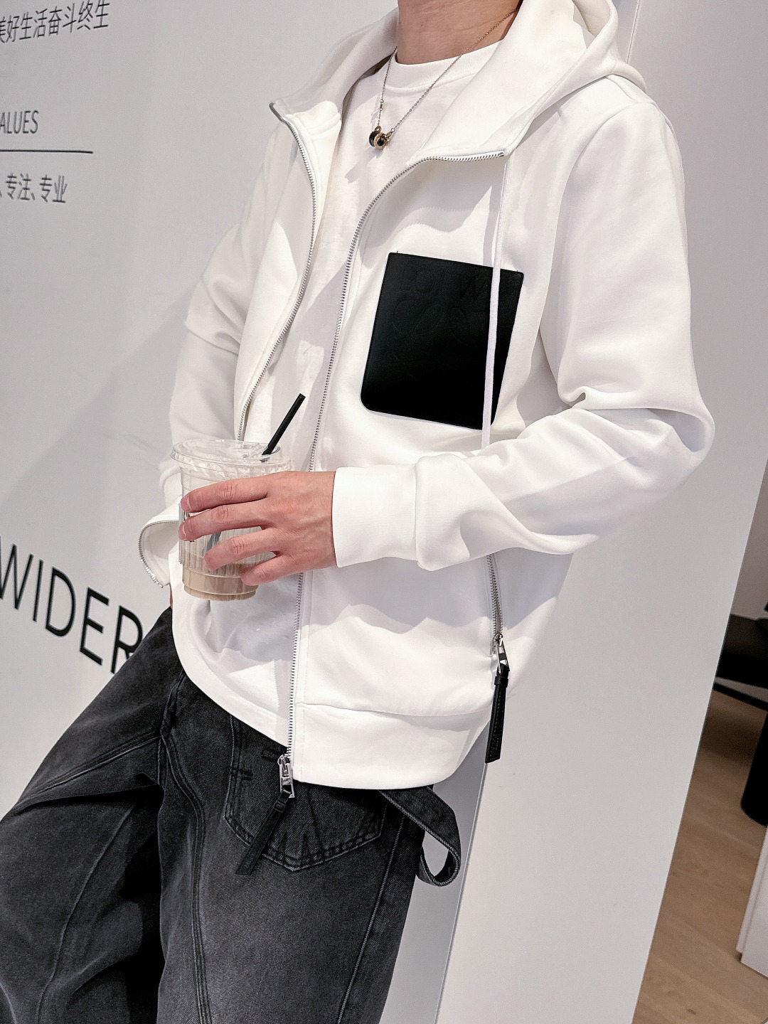 Loewe/罗意威 胸口压花徽标皮口袋拉链连帽外套 上身效果#