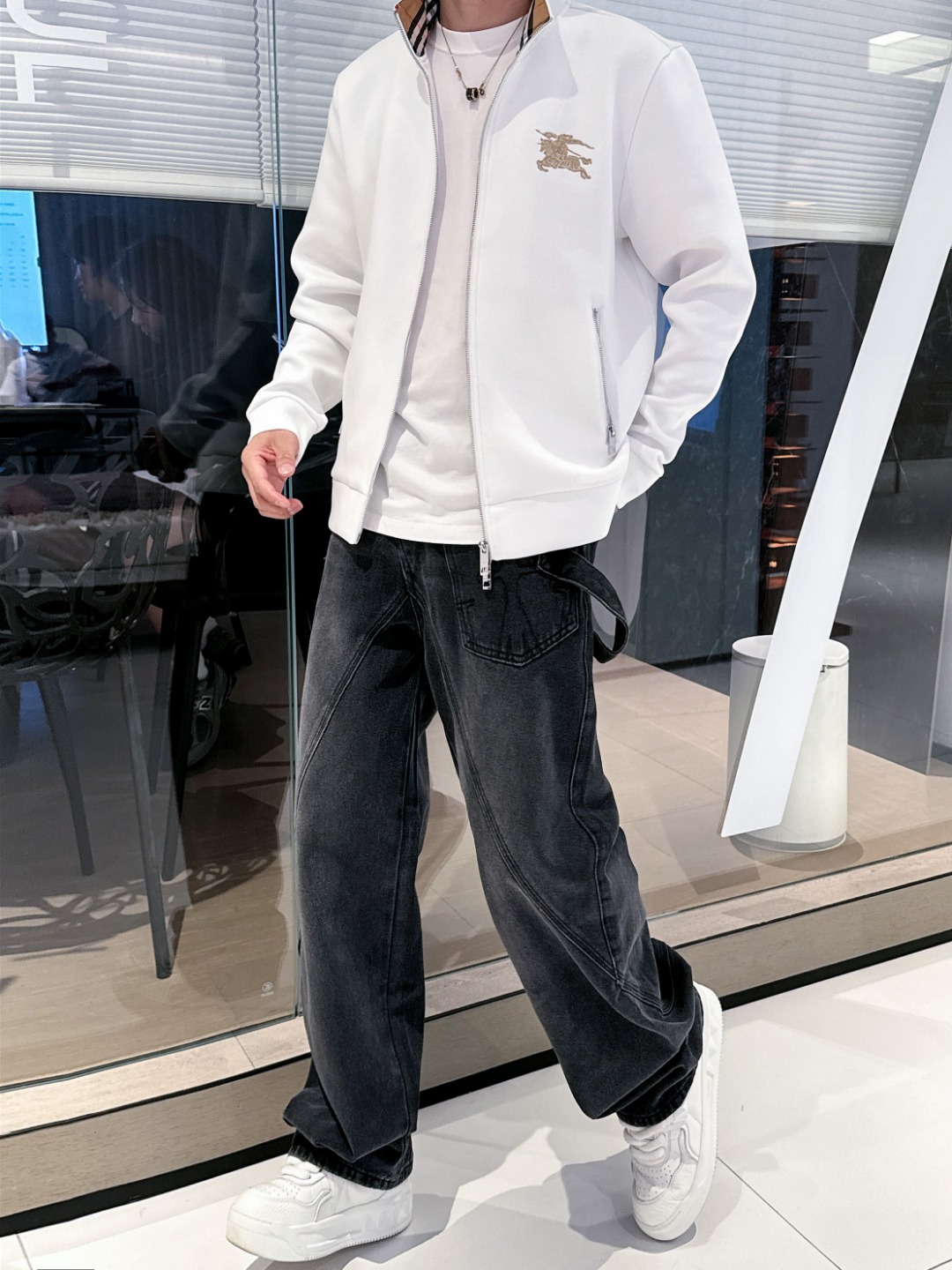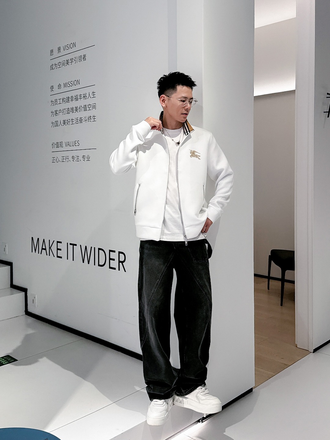 Burberry/巴宝莉 胸口刺绣战马拉链立领外套 上身效果#
