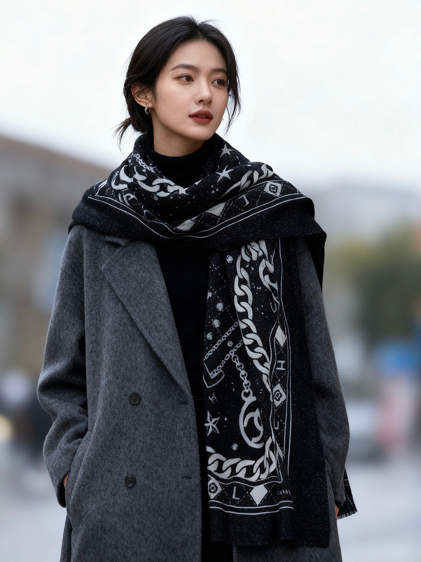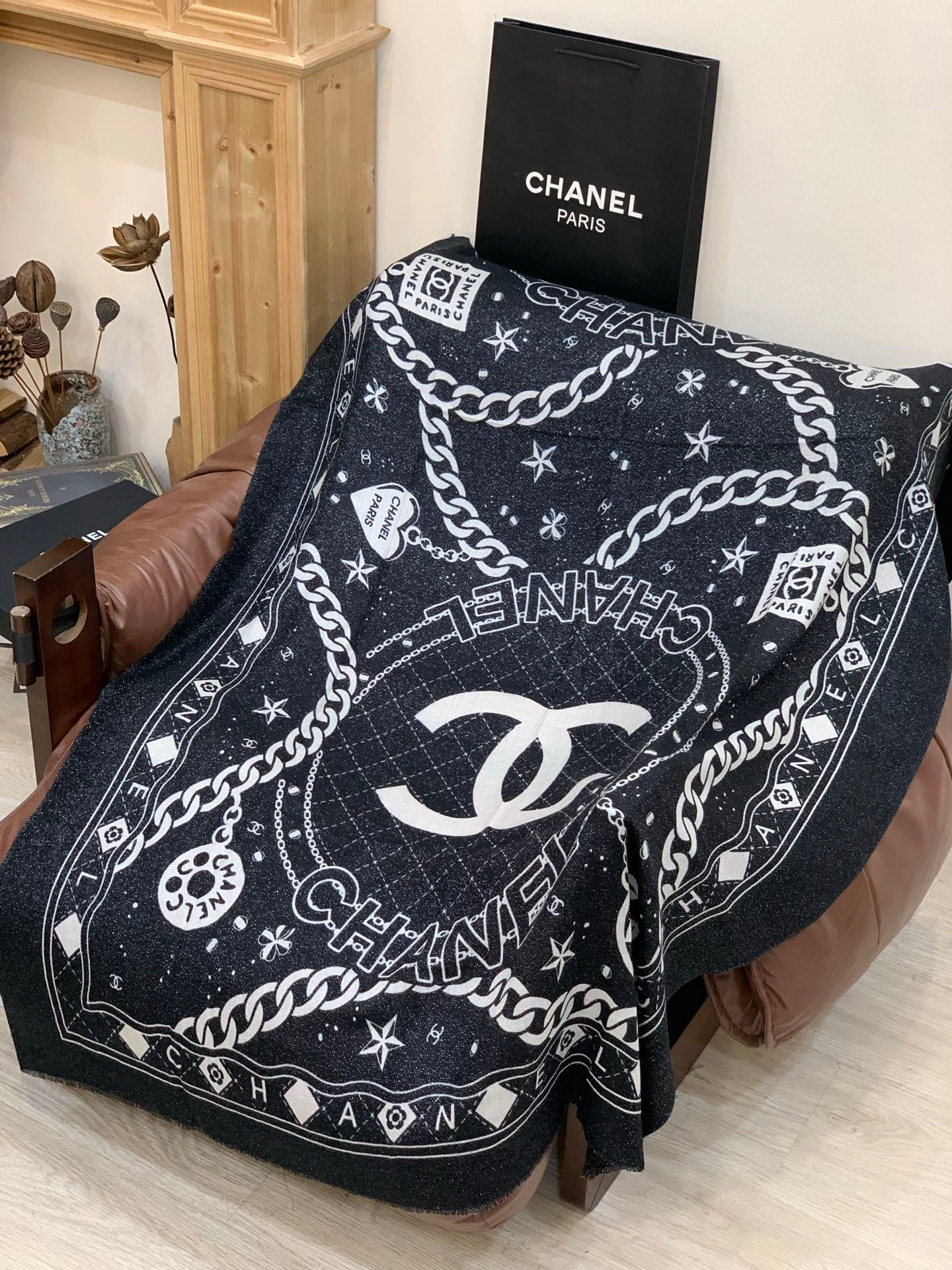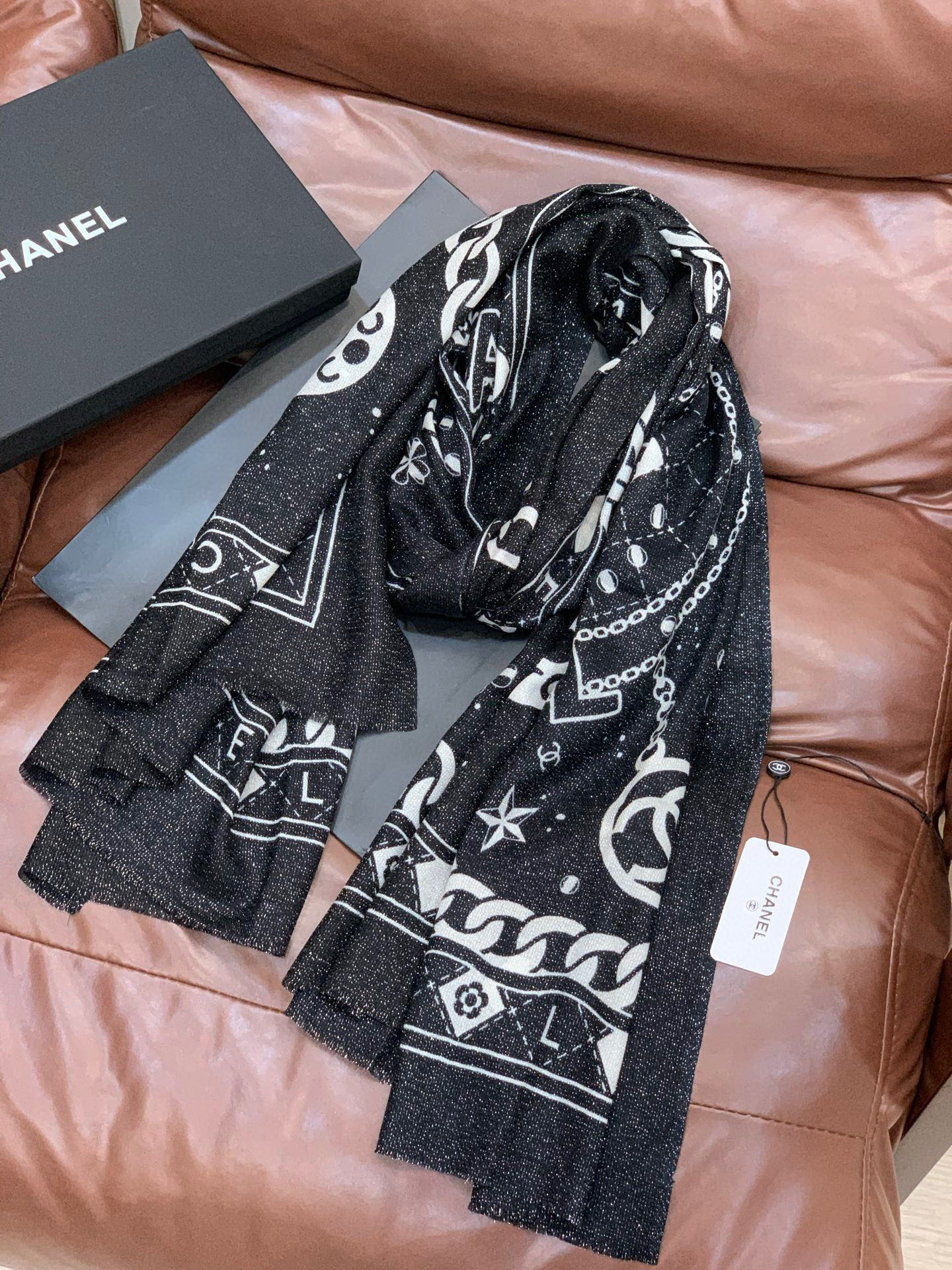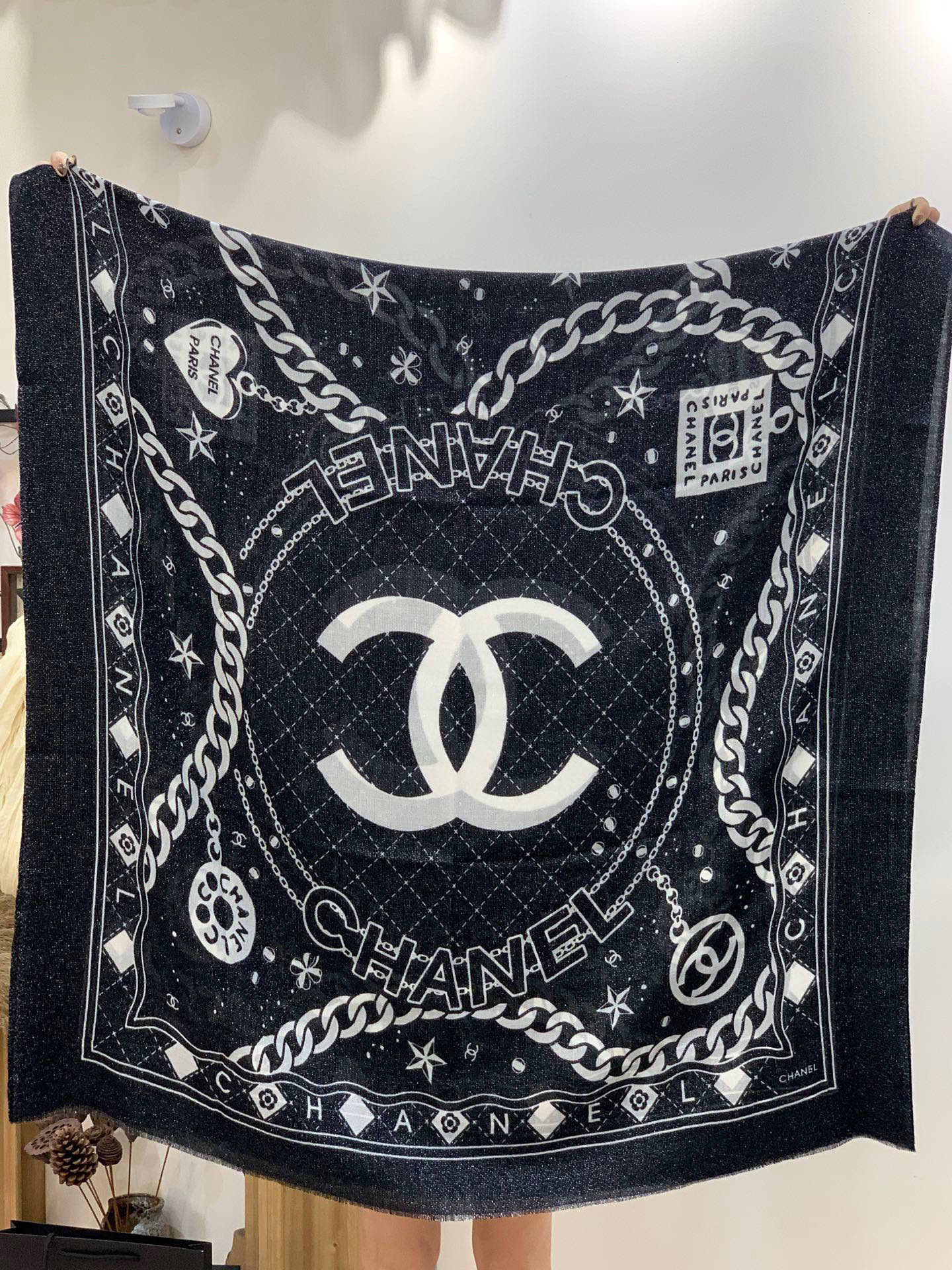 P215 上新🌟 会发光发亮的围巾 💄💋新款客供银线💖羊绒面料长巾 😘美翻了[流泪]【银线双C图案】御用殿堂级极‼️新款专柜在售 纯羊绒银丝线独特设计风格❗加上富有香家本季特色图案印花 美丽至极 真的 上身极为奢华上档次 稀有~小贵~好看不好看自己看吧 ‼尺寸110x200cm 大长巾,100%顶级纯羊绒
