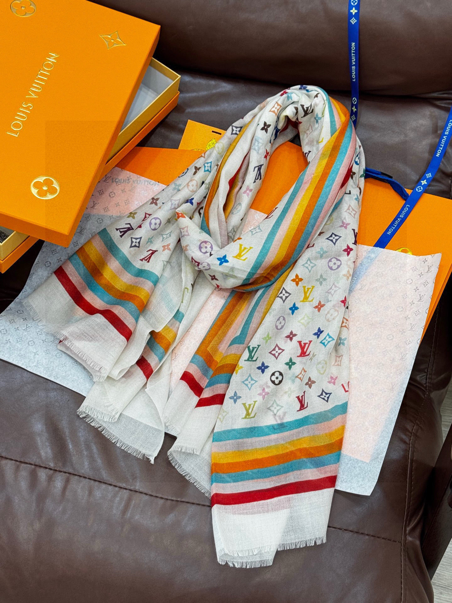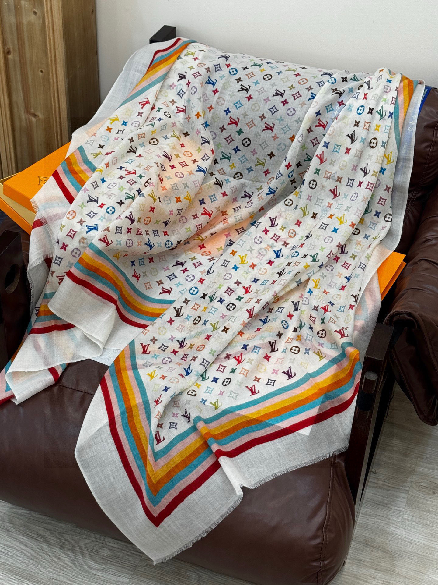 P195 💟25年Iv最火的村上隆三彩羊绒长巾出货了!也可做装裱画,绝美无比,尽显时尚高端大气奢华风格!年度最佳爆款 !材质是百分百💯羊绒,很值得收藏的款式,时尚是一种轮回,永不过时很时尚的款式!尺寸100*200