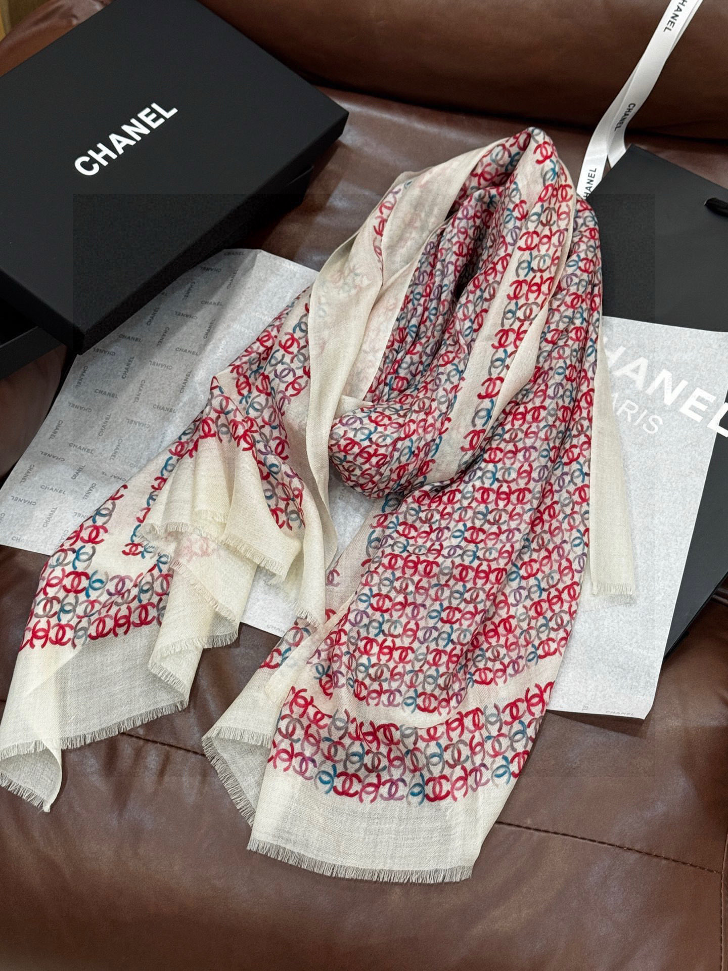 P195 💟2025年秋冬新款 💟CHANEL香奈儿经典元素设计优雅大方,绕在颈间超级完美💋💋简直人间的尤物😍 专柜品质[玫瑰]长巾100*200cm 100%顶级纯羊绒[强]自留款喜欢的快来抢吧