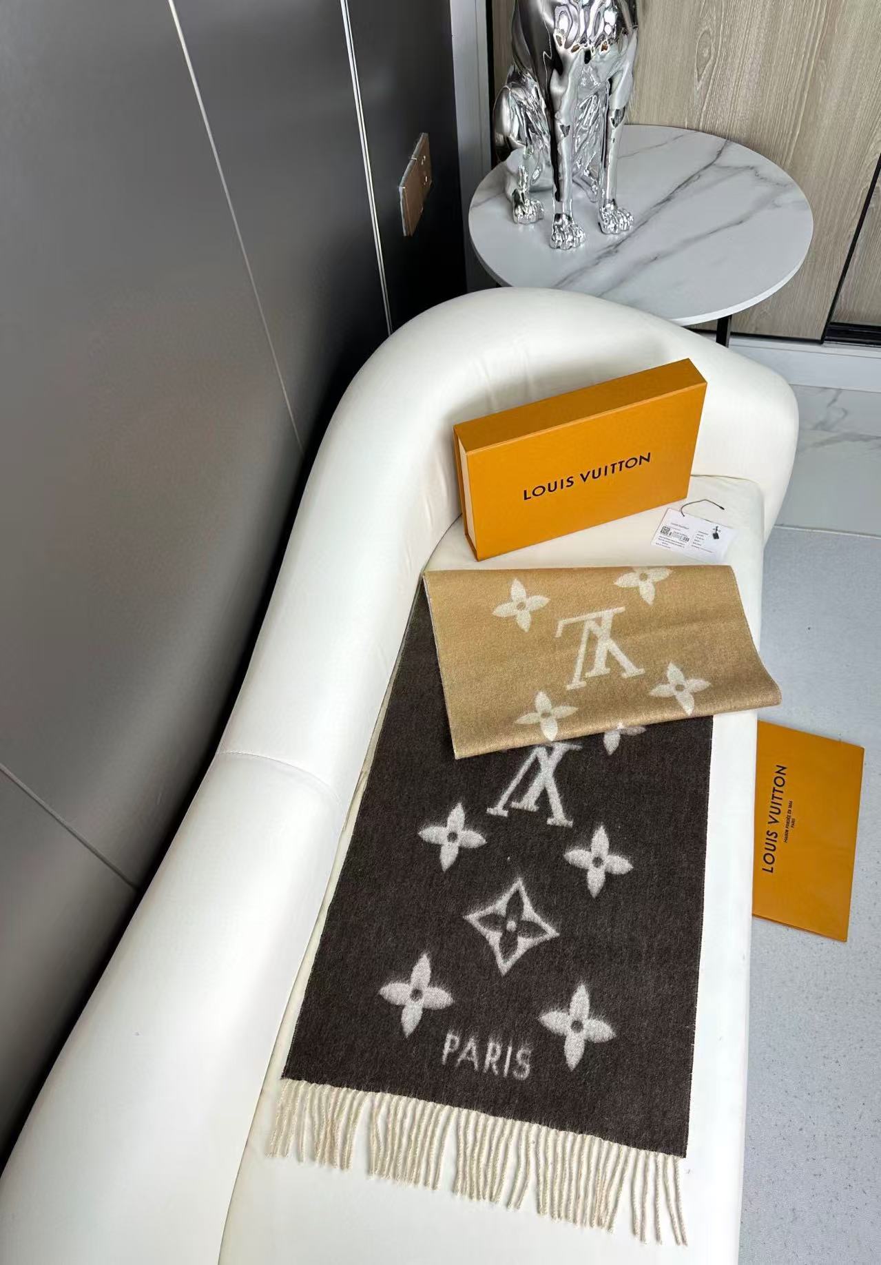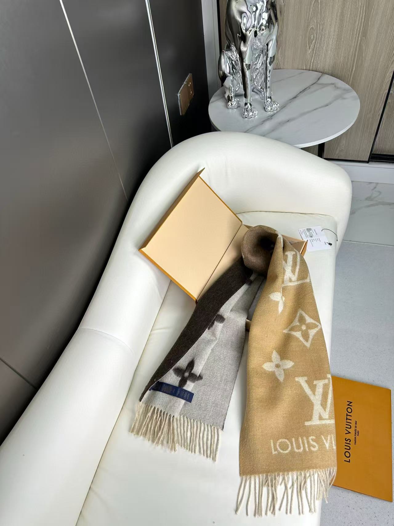 P140 渐变色!Lv可以用一辈子的围巾 永不过时的经典” 驴牌 #𝑹𝒆𝒚𝒌𝒋𝒂𝒗𝒊𝒌 双面羊绒围巾 羊绒材质 一点也不扎 可以当围巾也可以当做披肩 双面异色提花 两面完全相反的颜色及图案 设计真的非常走心 一条围巾的钱戴两条围巾 绝对超值‼️ 尺寸 :190 x 45厘米 材质:羊绒