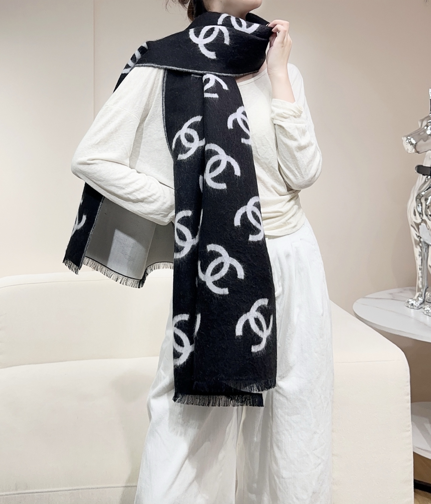 P215(高品质) 2025最爆火的chanel 大号Logo的披肩,双面设计体验不同风格穿搭,一面满纹大号双C,一面素色+简洁的品牌双C标识,美腻单品,永远不会过时的经典,根本抢不到!这一季必须拿下! 这款上身很大气 年底各种聚会、出行 非常压得住场面 高贵又百搭!材质:95%绵羊毛,5%真丝,手感很nice,质感柔软顺滑细腻! 尺寸:70×200cm
