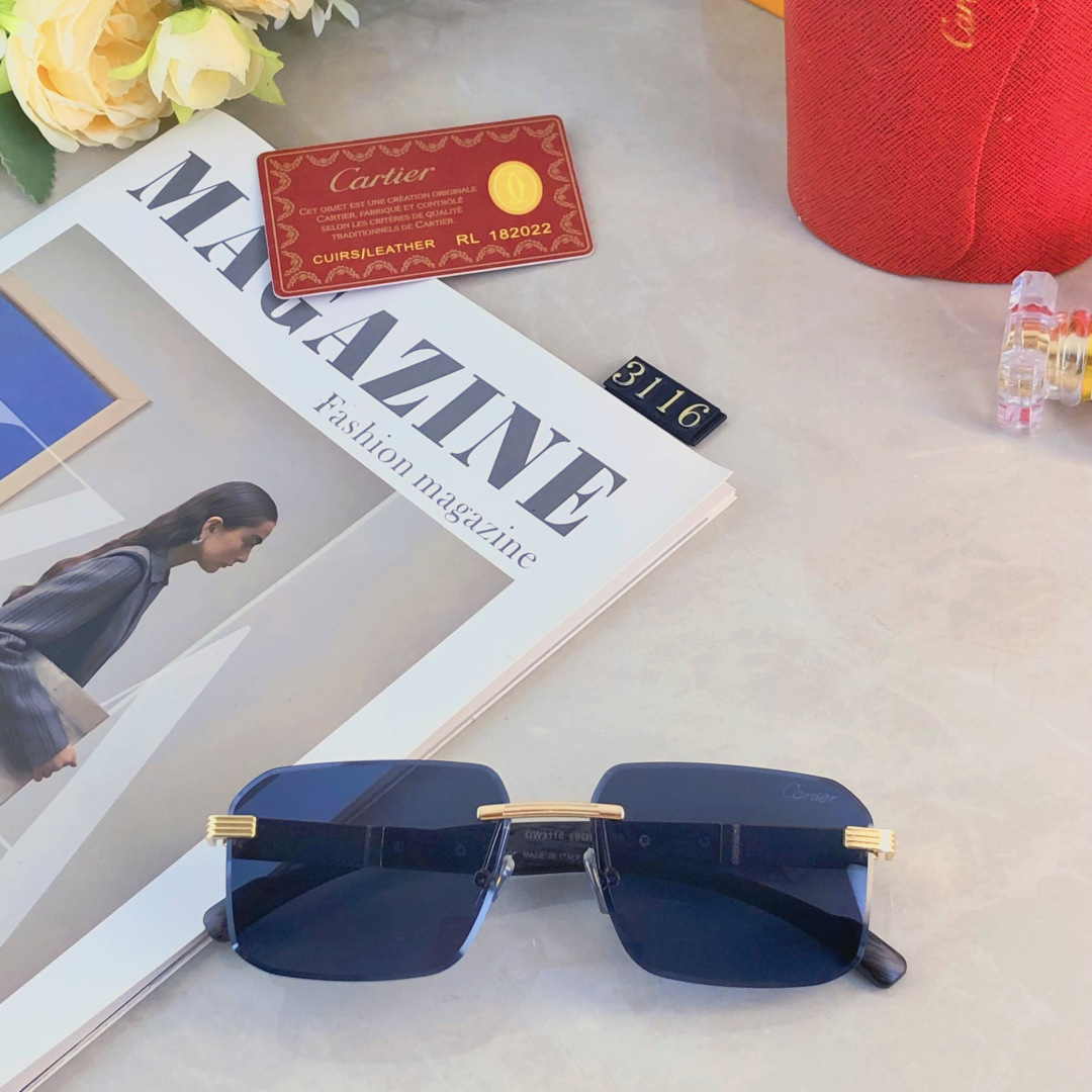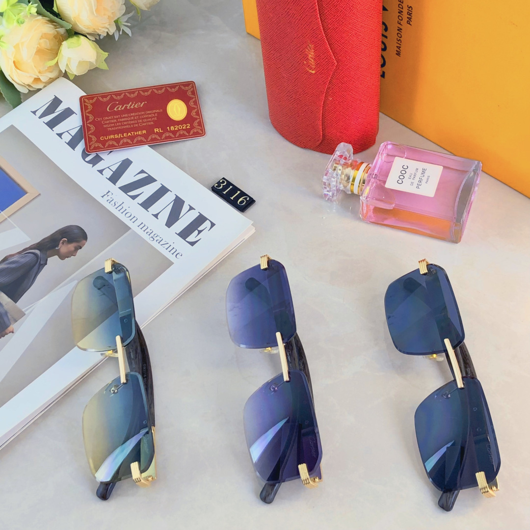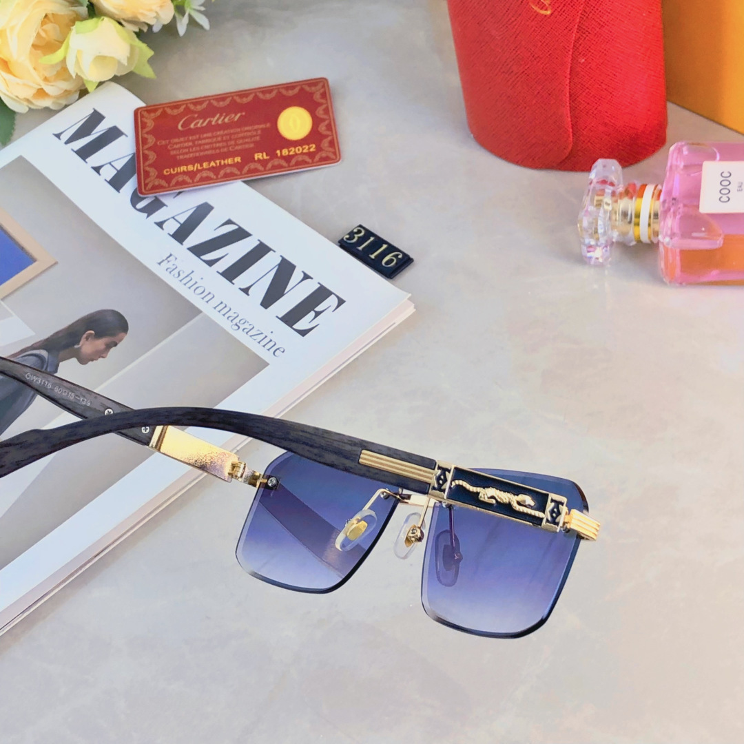 P105🔥🔥Cartie*墨镜太阳眼镜新款时尚潮流无框切边个性穿搭街拍豹子眼镜