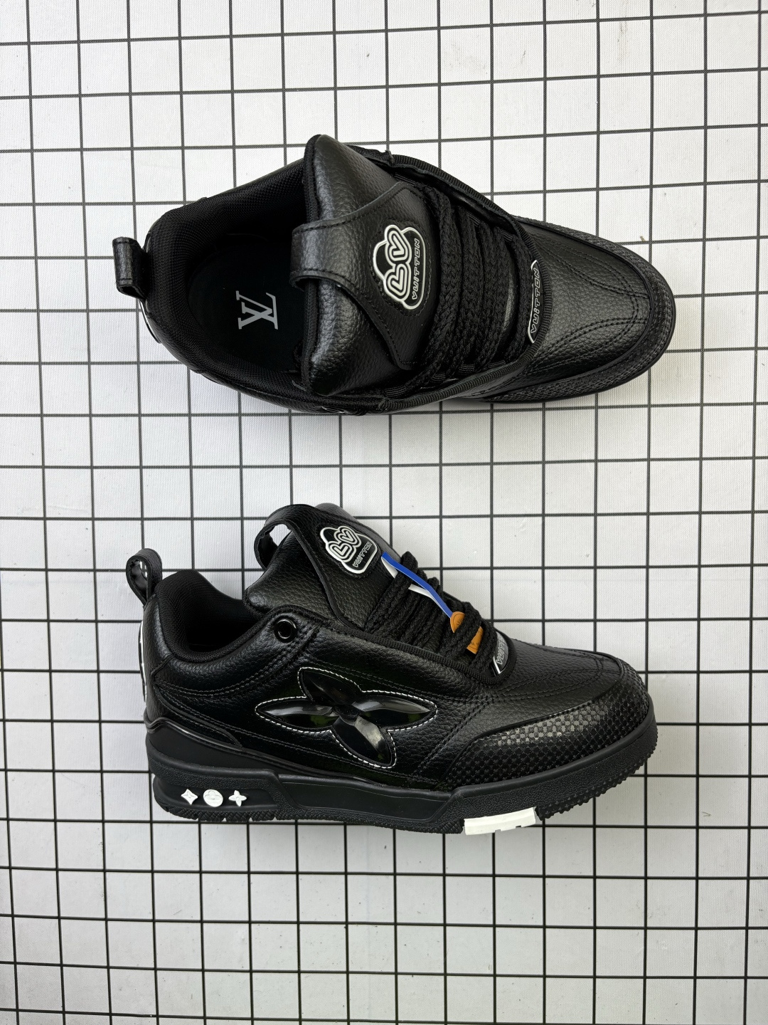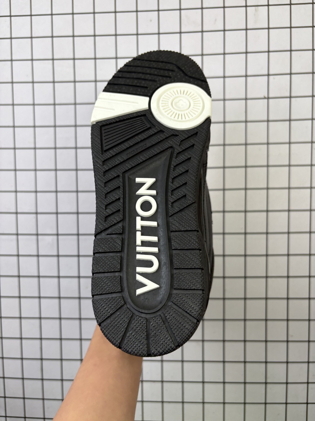 💰170 LV VUITTON SKATE升级厚实抽屉礼品鞋盒及包装说明书防尘布袋物件!!#采用科技网格面料和正绒面革鞋面材质(手工排布细密饰钉!!)#鞋垫嵌入超软脚感PU乳胶物料#后跟耐弯折滴塑支撑片#全新开发TPR光泽组合隔色鞋底❗爆款 Trainer 继任者!LV「面包鞋」全新LV路易威登Louis Vuitton Skate 1854 Low Sneaker LV54系列低帮复古百搭休闲运动文化滑板板鞋“橘黄黑金属饰钉”1ACEH3 尺码:36 37 38 39 40 41 42 43 44 45 46(偏大一码!!) 编码:小X 详细特征 本款 LV Skate 运动鞋汲取秀场造型的瞩目笔触,以科技网格面料和正绒面革演绎 1990 年代的滑板鞋设计,其上排布细密饰钉。加衬鞋领和科技双鞋带树立辨识度,大号 Monogram 花卉和 Vuitton Since 1854 标识分饰侧面和后部。 混合材质 双鞋带 橡胶外底 鞋舌饰有 LV Vuitton 标识 侧面和外底饰有 Monogram 花卉 后部饰有 Vuitton Since 1854 标识 LV 字母后