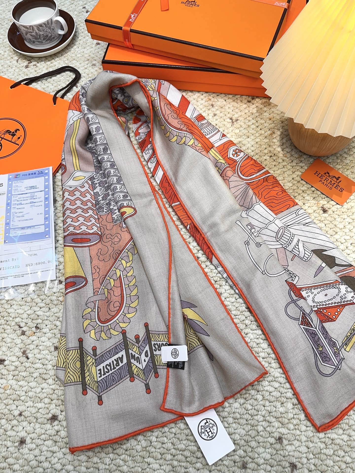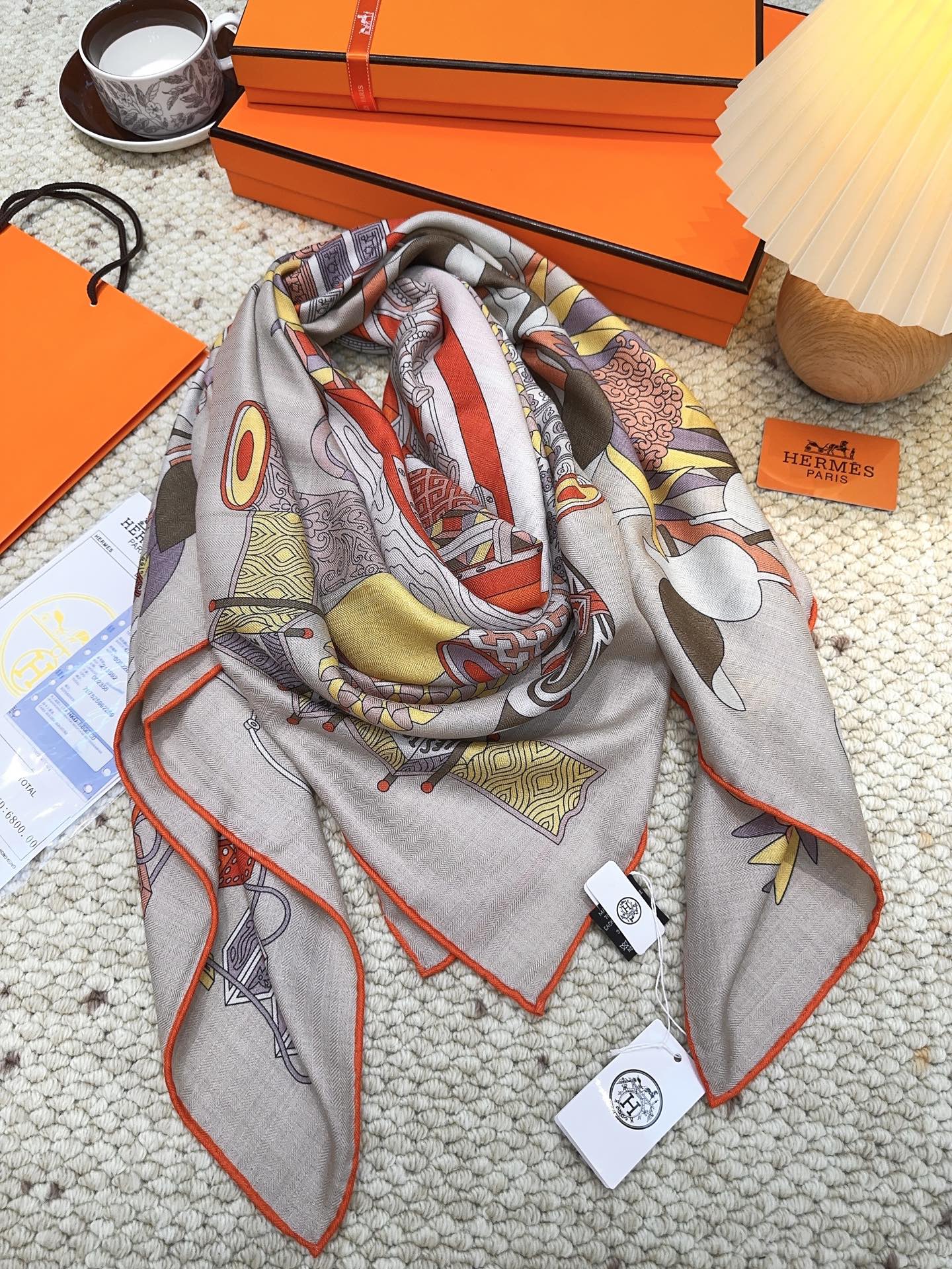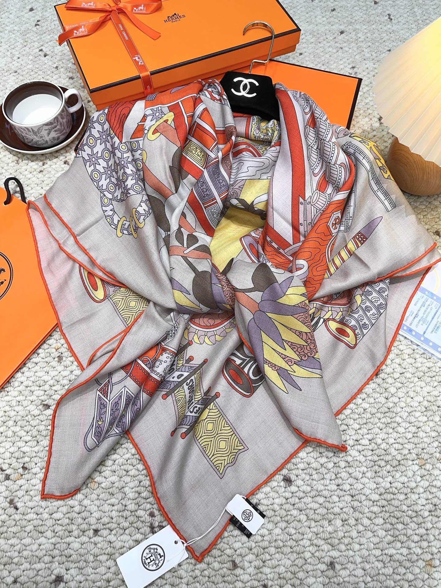 P240 爱马仕(Hermes)上新💕【爱马仕2025春夏 】这款点睛配饰可以多种方式佩戴,与任何服饰皆搭配得宜。无论系绕颈间,或作为腰带、束发带及头巾佩戴,皆赏心悦目。法国制造手工卷边丝羊绒巾(30%桑蚕丝70%山羊绒)。 尺寸:140x 140厘米