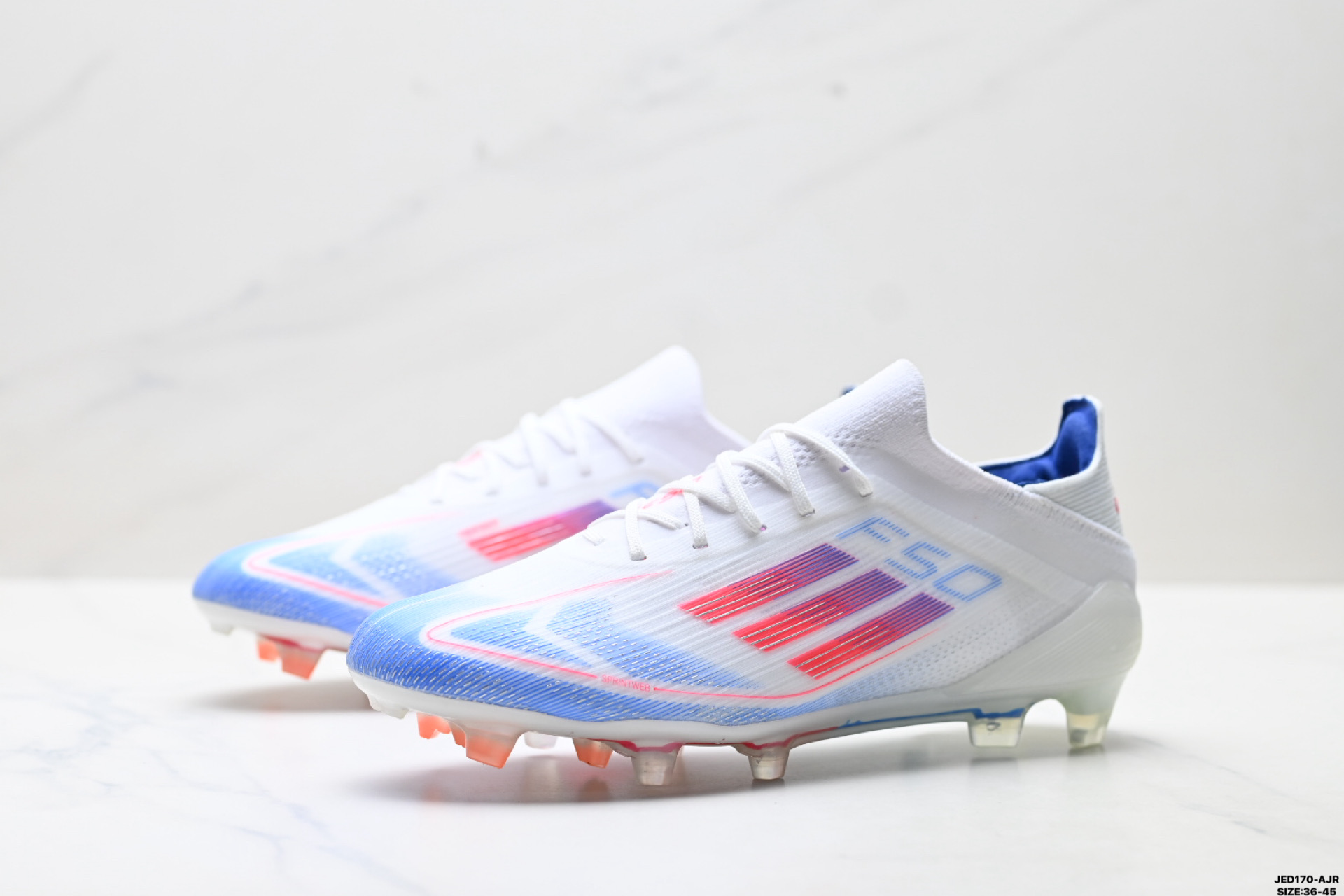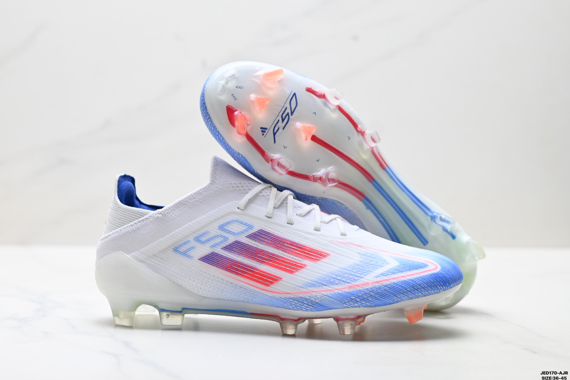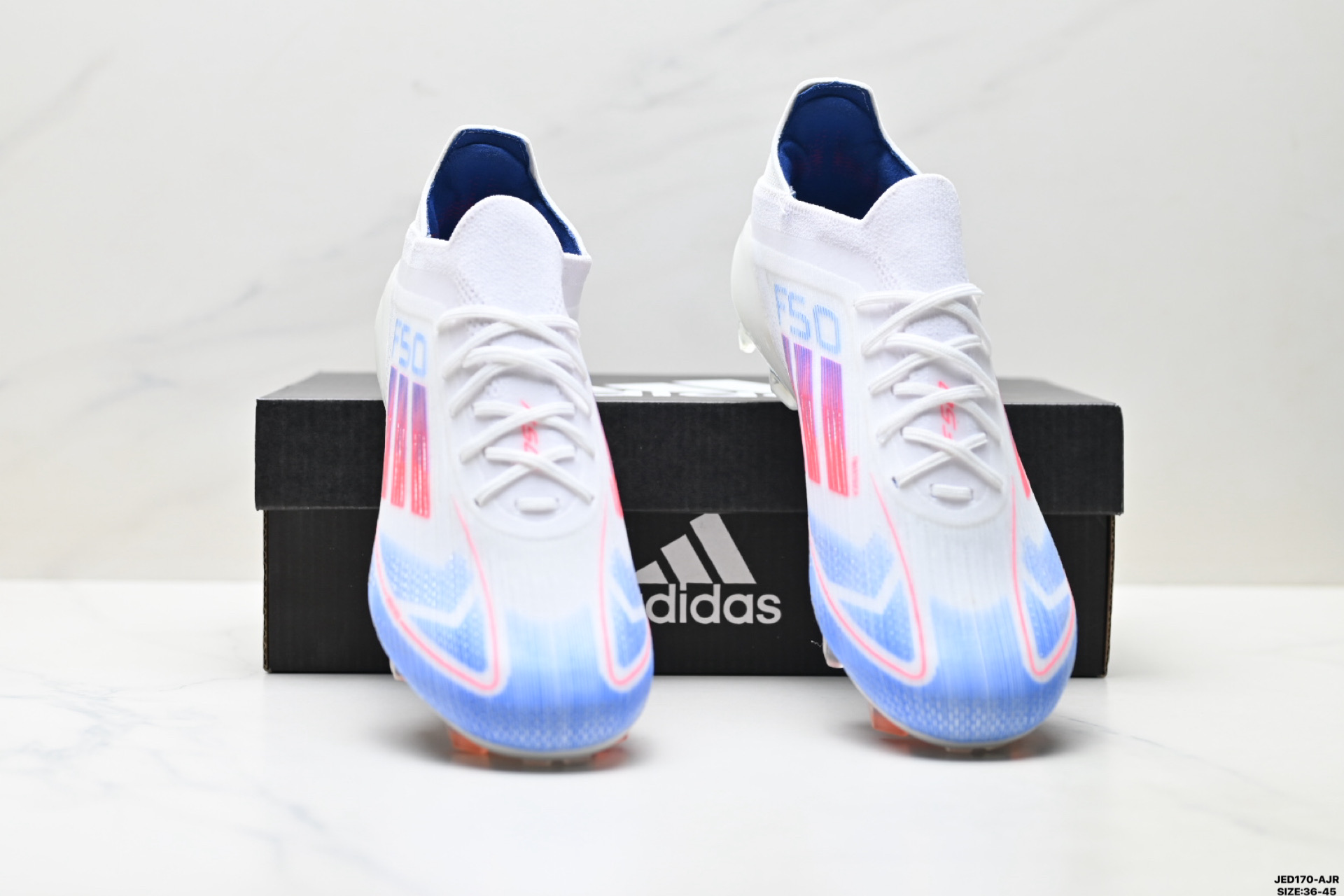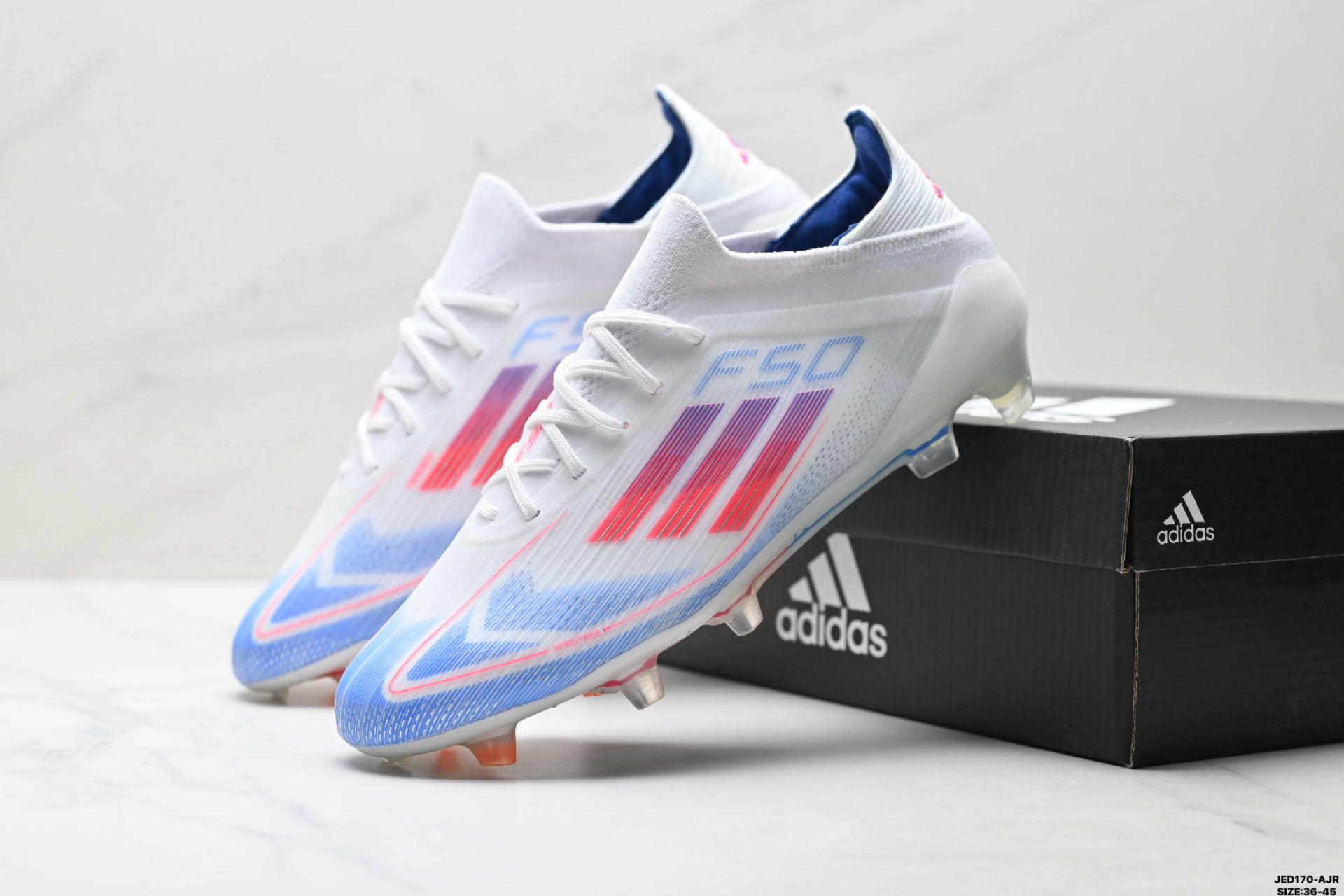 💰140 公司级✅Adidas F50 ELITE 阿迪达斯 舒适百搭 防滑耐磨包裹性 足球鞋 该鞋款具备出众回弹缓震性能 助你在比赛中掌控配速和节奏 缔造出色比赛表现 抓地设计搭配匠心鞋钉 助你在快速切入时轻松急停 鞋款采用合成材质 柔韧灵活 提供有力支撑和出色的触球感 货号:IE1203 尺码:36-45 ID:JED170-AJR