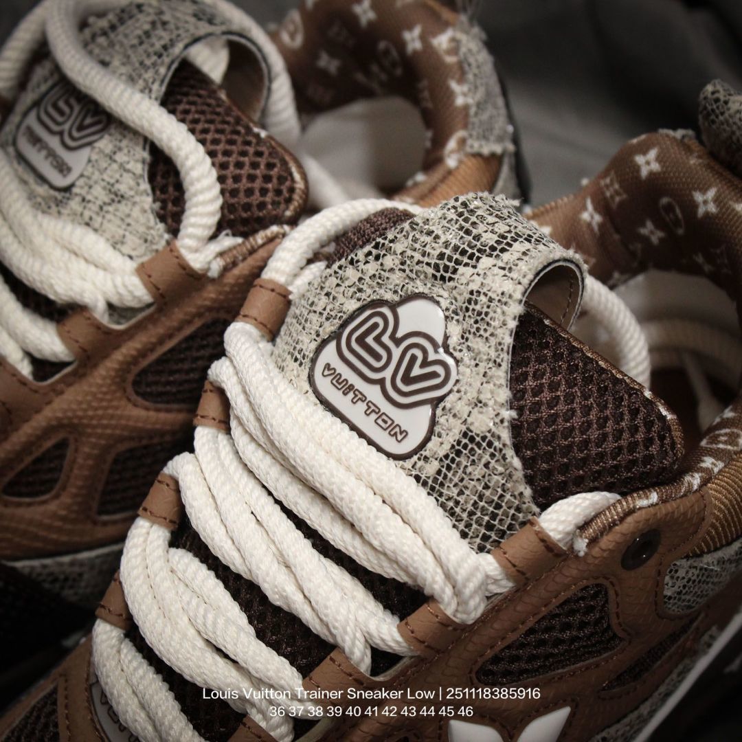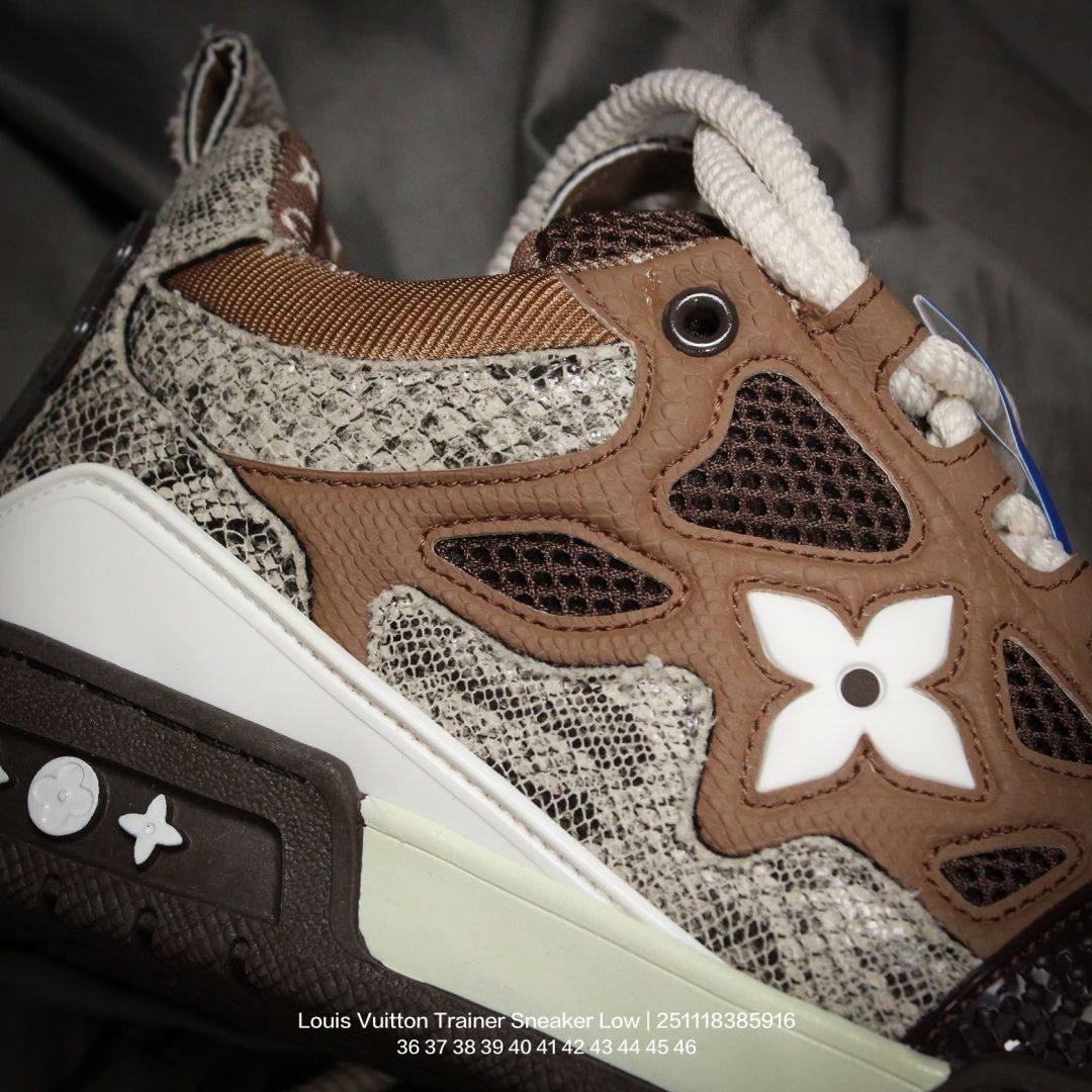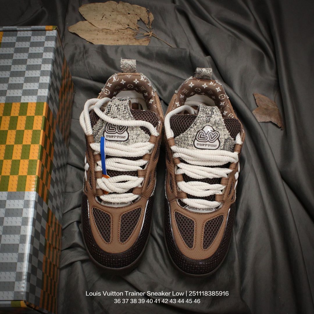 💰170 Louis Vuitton/路易威登 男女鞋配置厚实抽屉礼品鞋盒,采用荔枝纹纤维革组合粒面牛剖革鞋面材质,鞋垫嵌入软脚感EVA物料,外置TPR光泽隔色鞋底❗法国巴黎百年奢侈品牌LV路易威登Louis Vuitton Trainer Sneaker Low 运动系列低帮复古百搭休闲运动文化篮球板鞋“ 类型:男女鞋 码数:36 37 38 39 40 41 42 43 44 45 46 编码:251118385.916