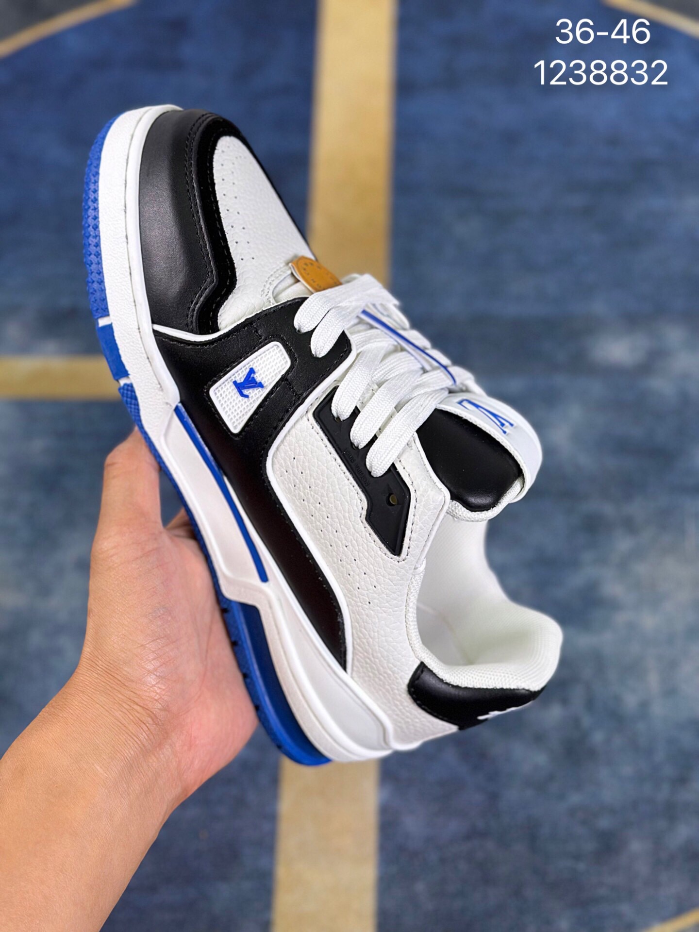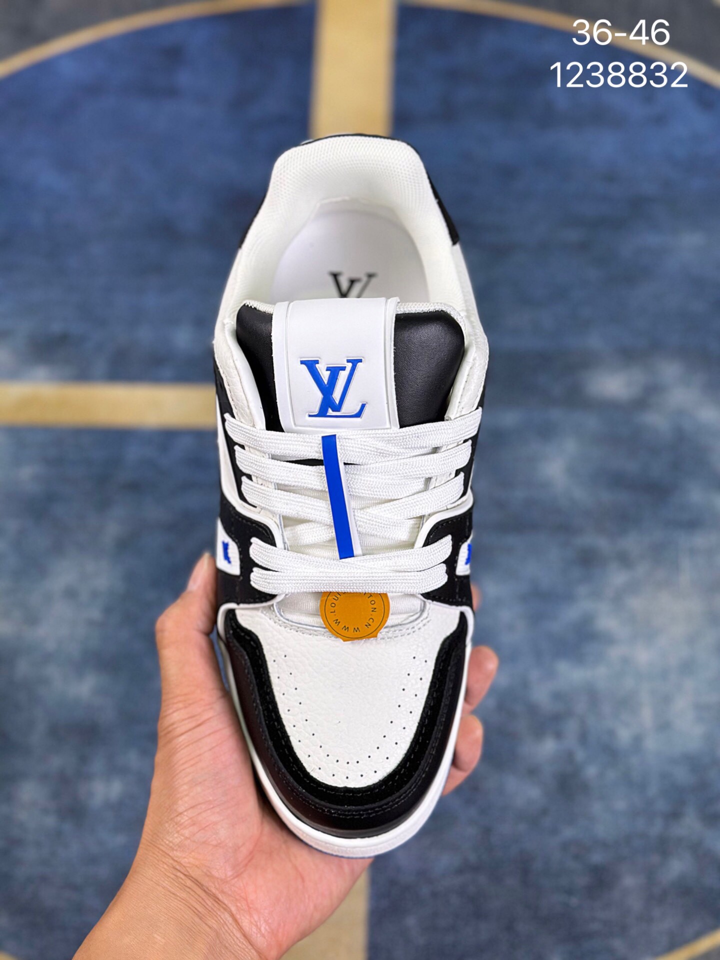 💰160 Louis Vuitton/路易威登 采用大荔枝鞋面材质,原装一致TPR光泽组合鞋底,耐弯折滴塑支持片,鞋垫嵌入超软脚感乳胶材质❗驴的篮球鞋,Virgil Abloh亲自操刀 计❗全新LV路易威登Louis Vuitton Trainer Sneaker Low休闲运动文化休闲鞋 编码:1238832