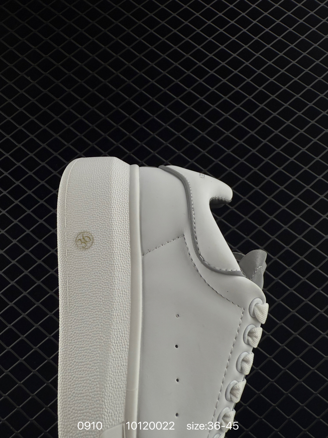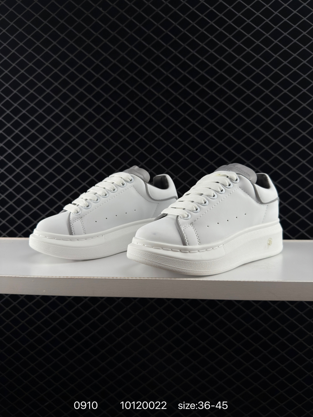 💰110 AlexanderMcQueen 亚历山大·麦昆MCQ 运动小白鞋 厚底增高闪尾光滑牛皮平底鞋休闲鞋 时尚男女板鞋潮运动鞋 ,火爆到大街小巷无人不知,无人不晓的境界,上脚立马显瘦显高,增高不只是说说而已增高4.5厘米秒变大长腿。真空橡胶大底,舒适度满分,难怪他这么火,就是这个道理。 编码:10120022 Size:36~45