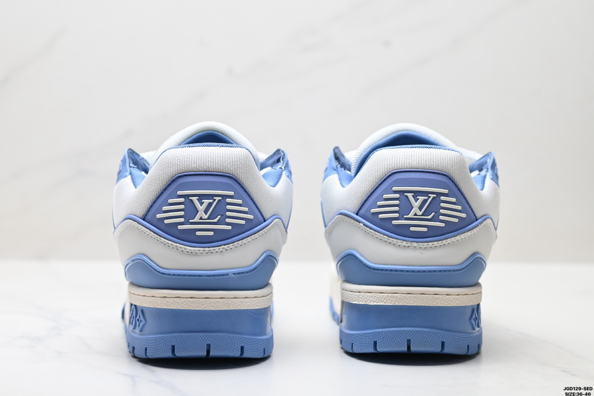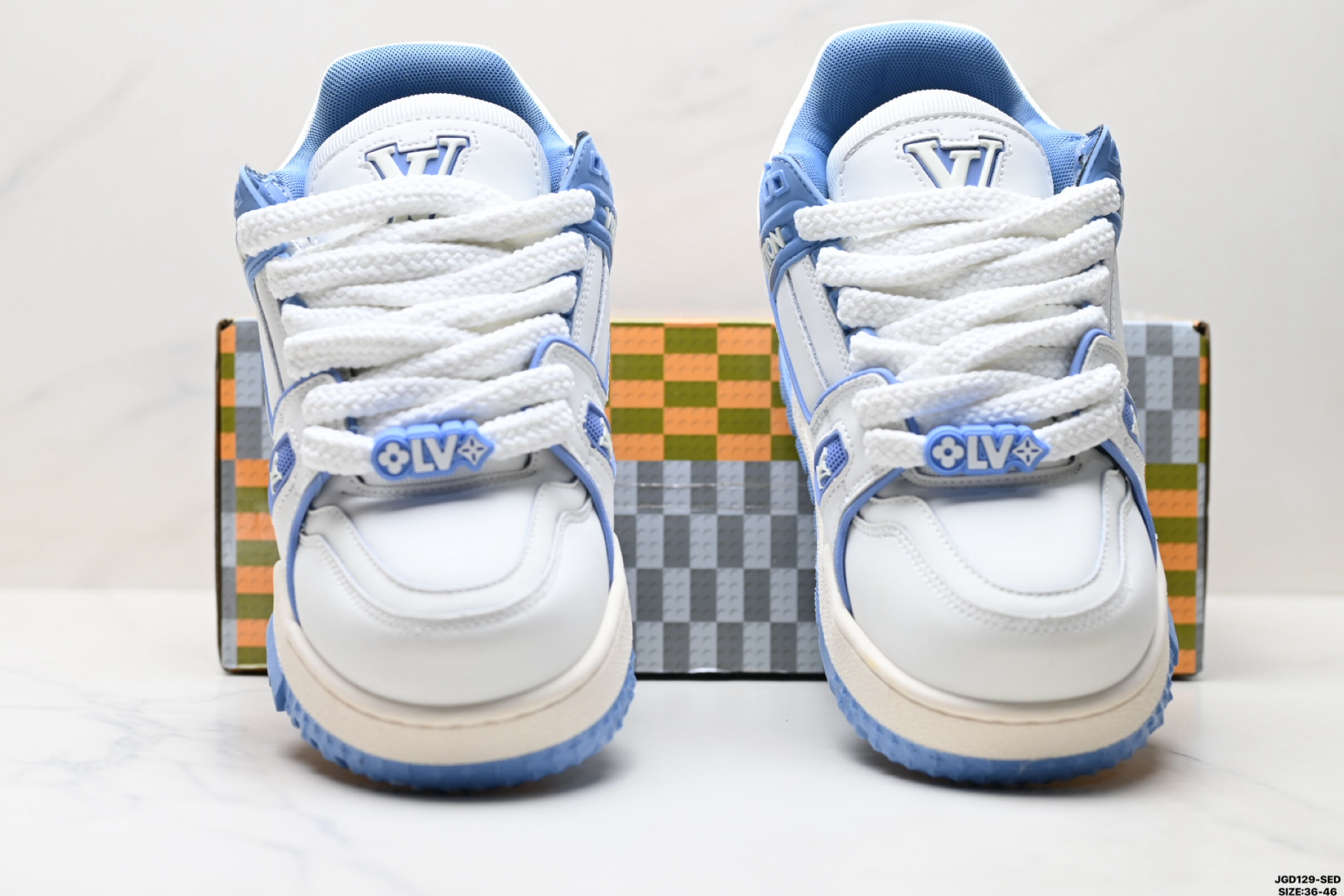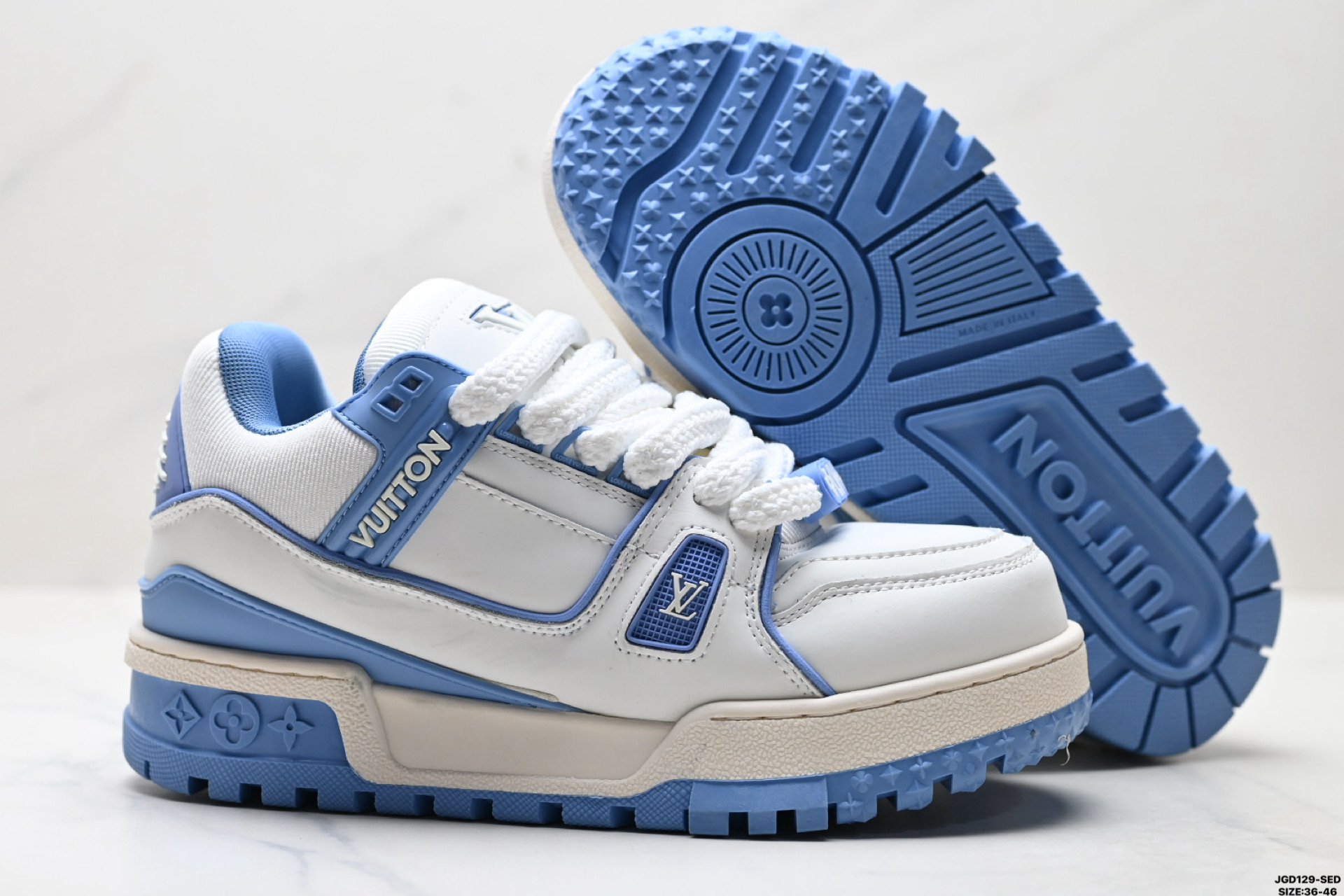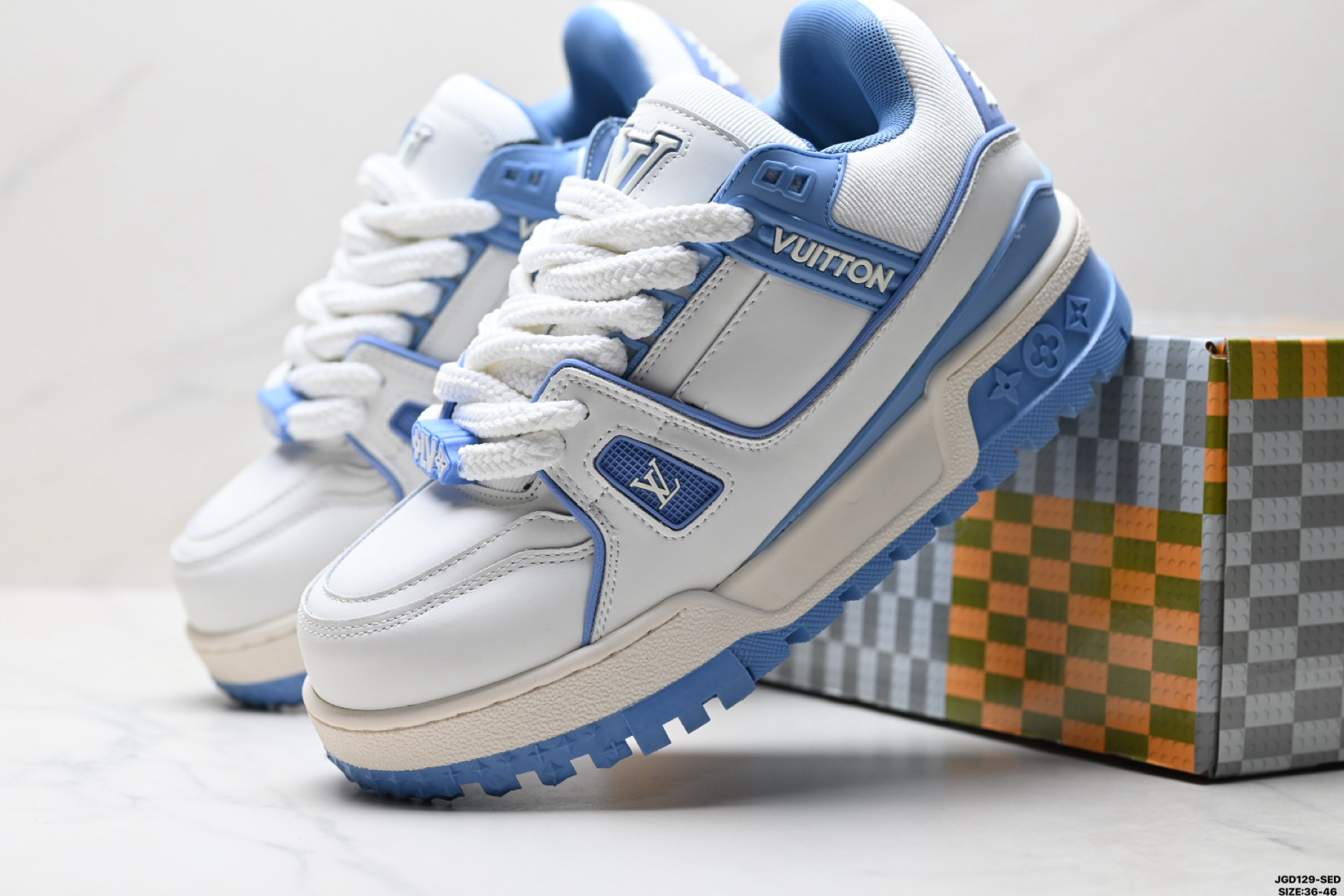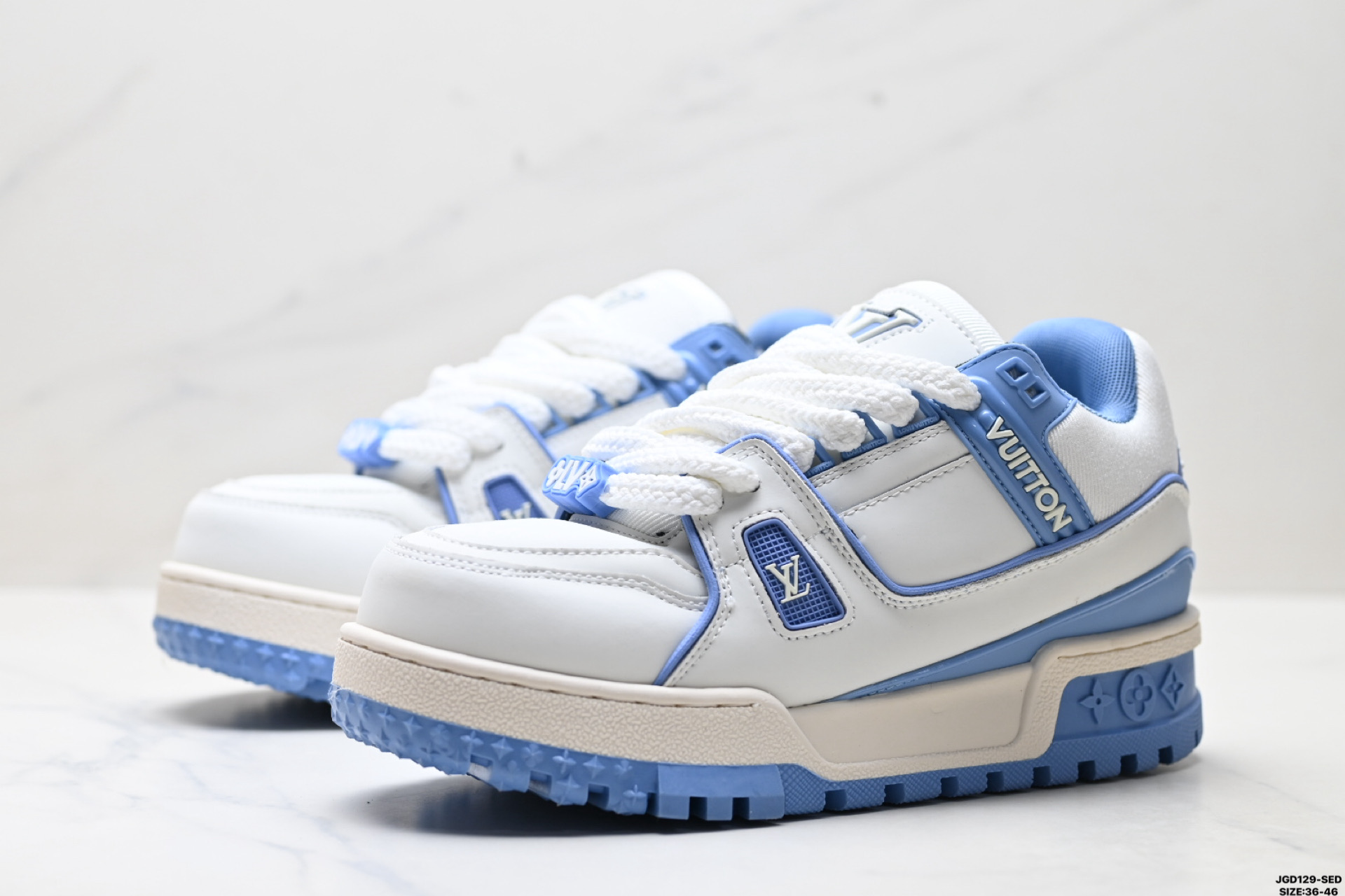 💰160 公司级✅LOUIS VUITTON Trainer Maxi 路易威登 小胖丁 圆头系带低帮 厚底板鞋 舒适防滑底和百搭性霸屏整个时尚娱乐圈 细节调整完美主义 鞋面采用柔软皮革鞋面 独家开模大底 侧边采用3D打印标志性Logo 尽显贵族时尚气息 配带正品全套包装 尺码:36-46 lD:JGD129-SED