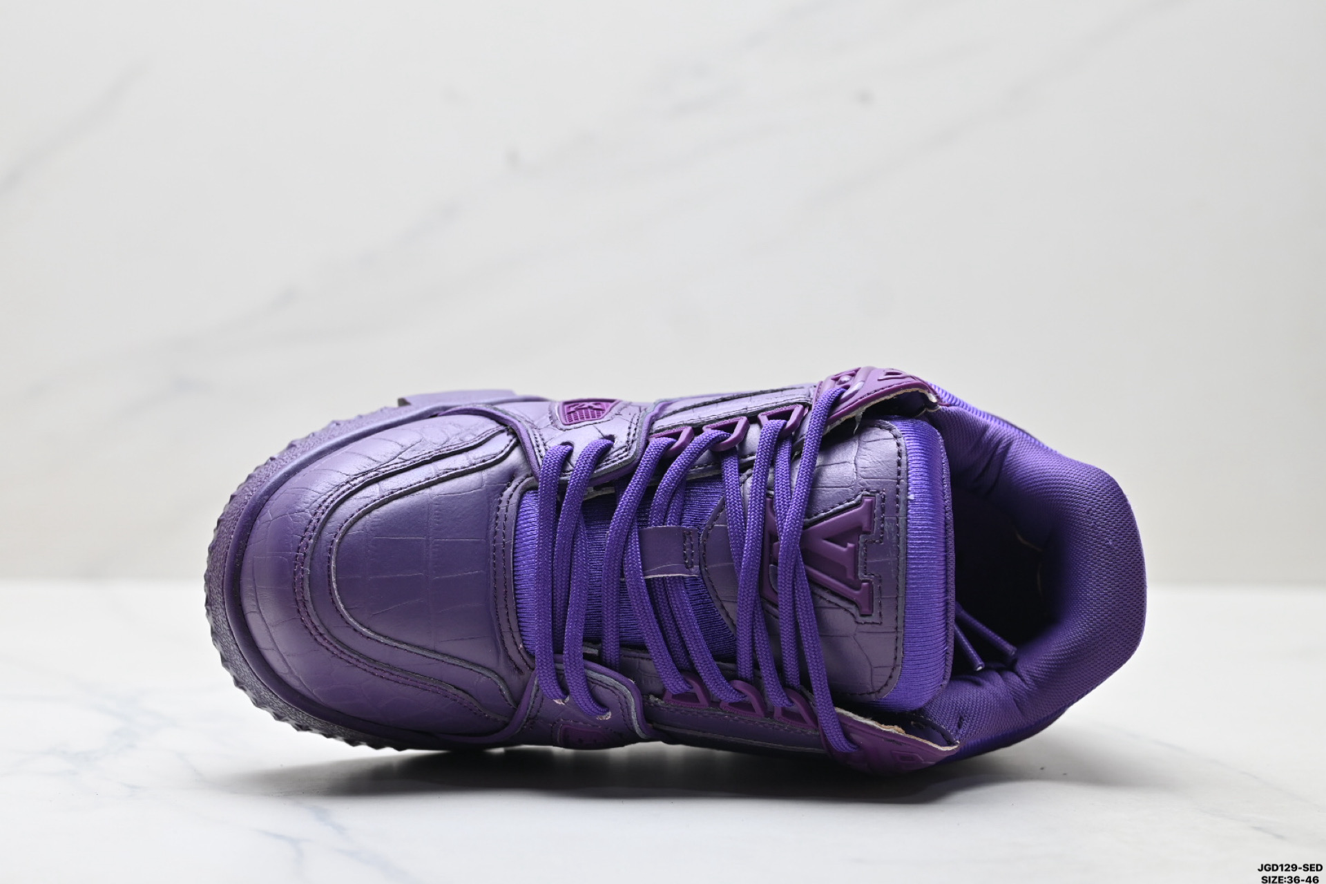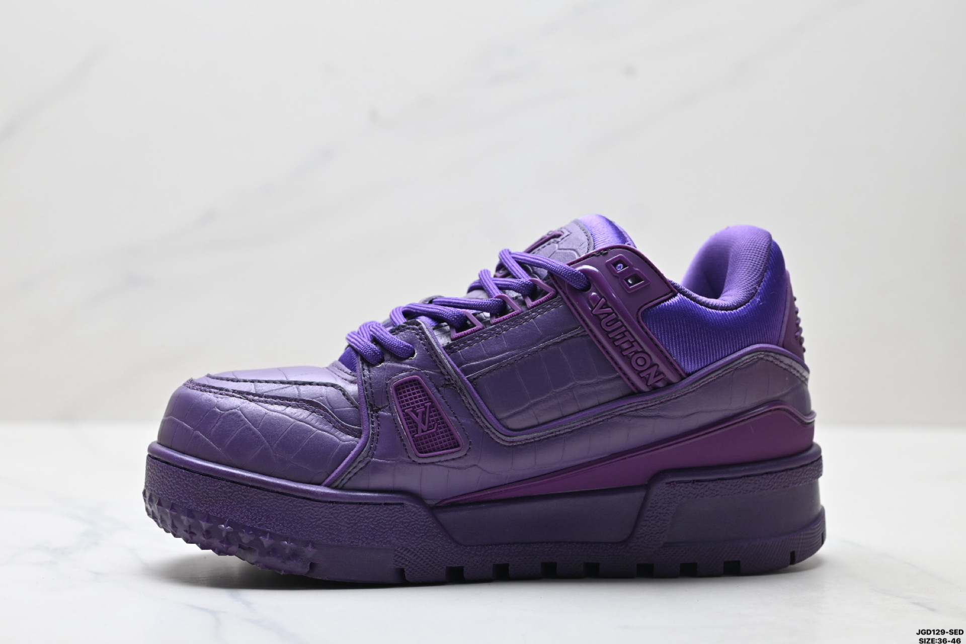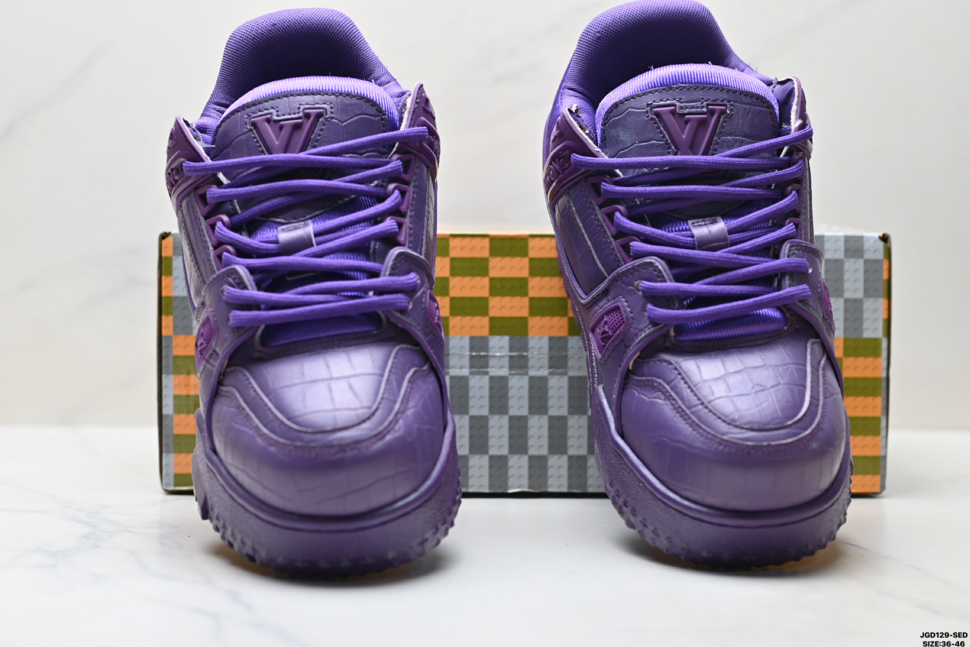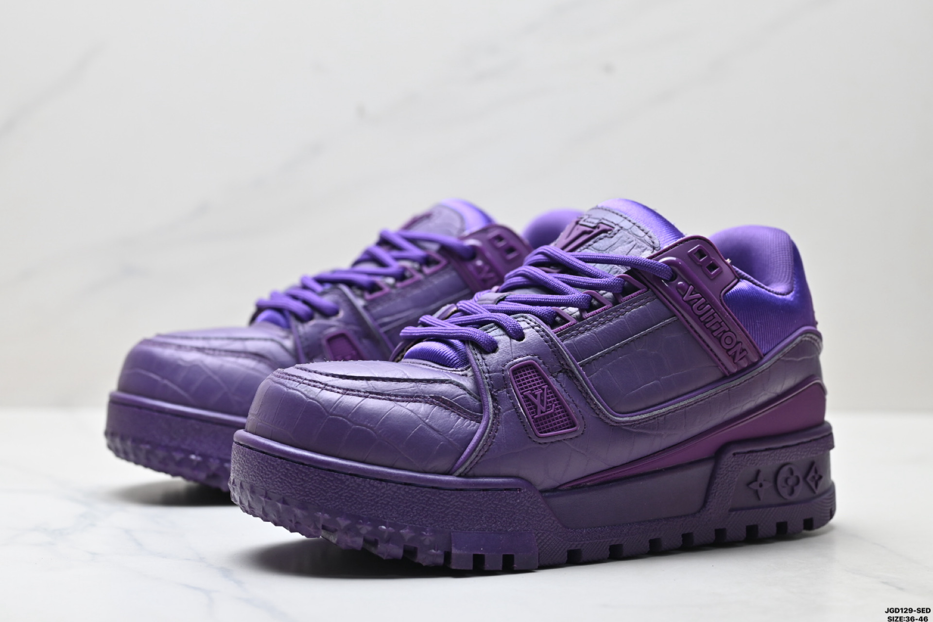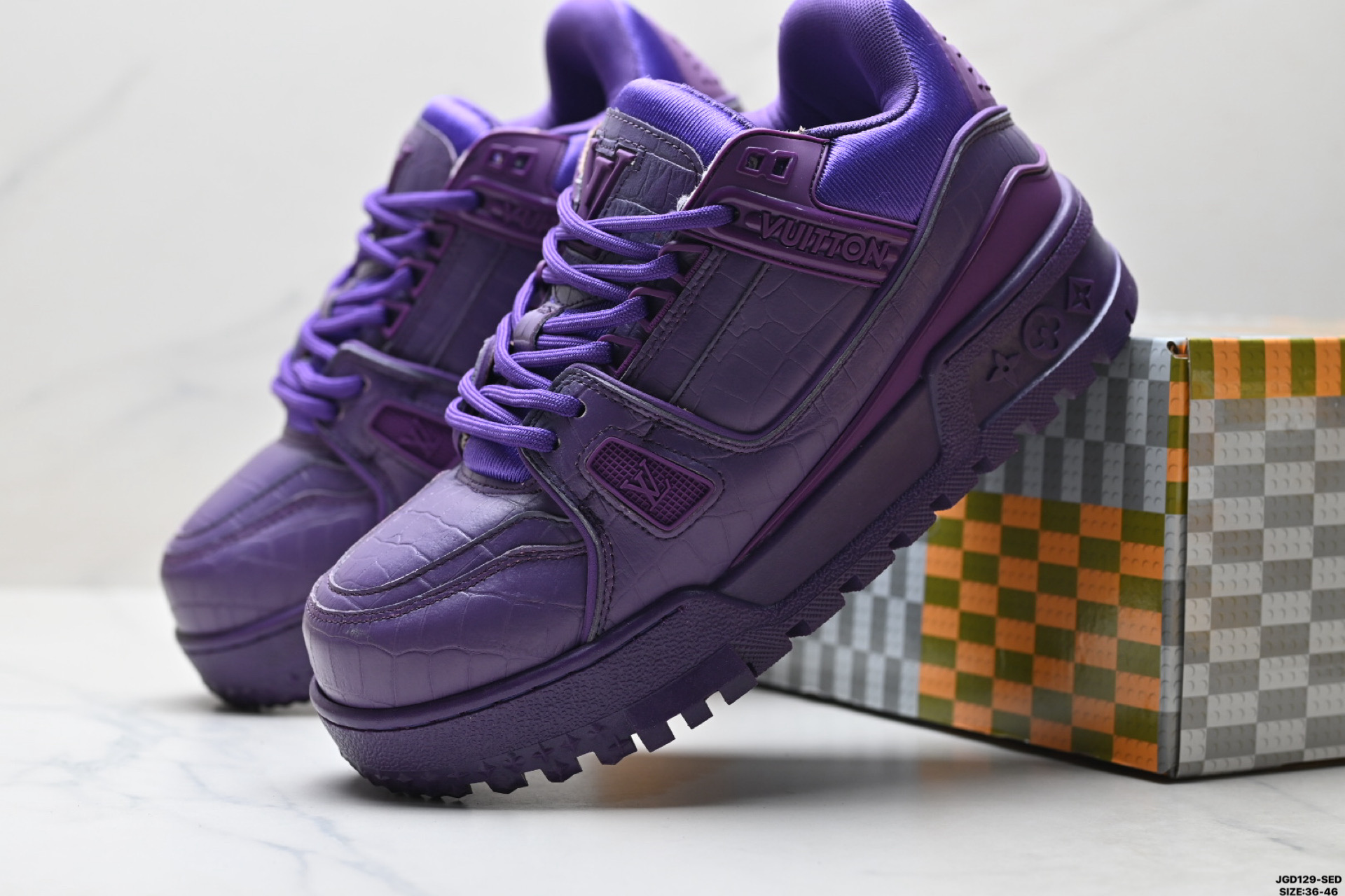 💰160 公司级✅LOUIS VUITTON Trainer Maxi 路易威登 小胖丁 圆头系带低帮 厚底板鞋 舒适防滑底和百搭性霸屏整个时尚娱乐圈 细节调整完美主义 鞋面采用柔软皮革鞋面 独家开模大底 侧边采用3D打印标志性Logo 尽显贵族时尚气息 配带正品全套包装 尺码:36-46 lD:JGD129-SED