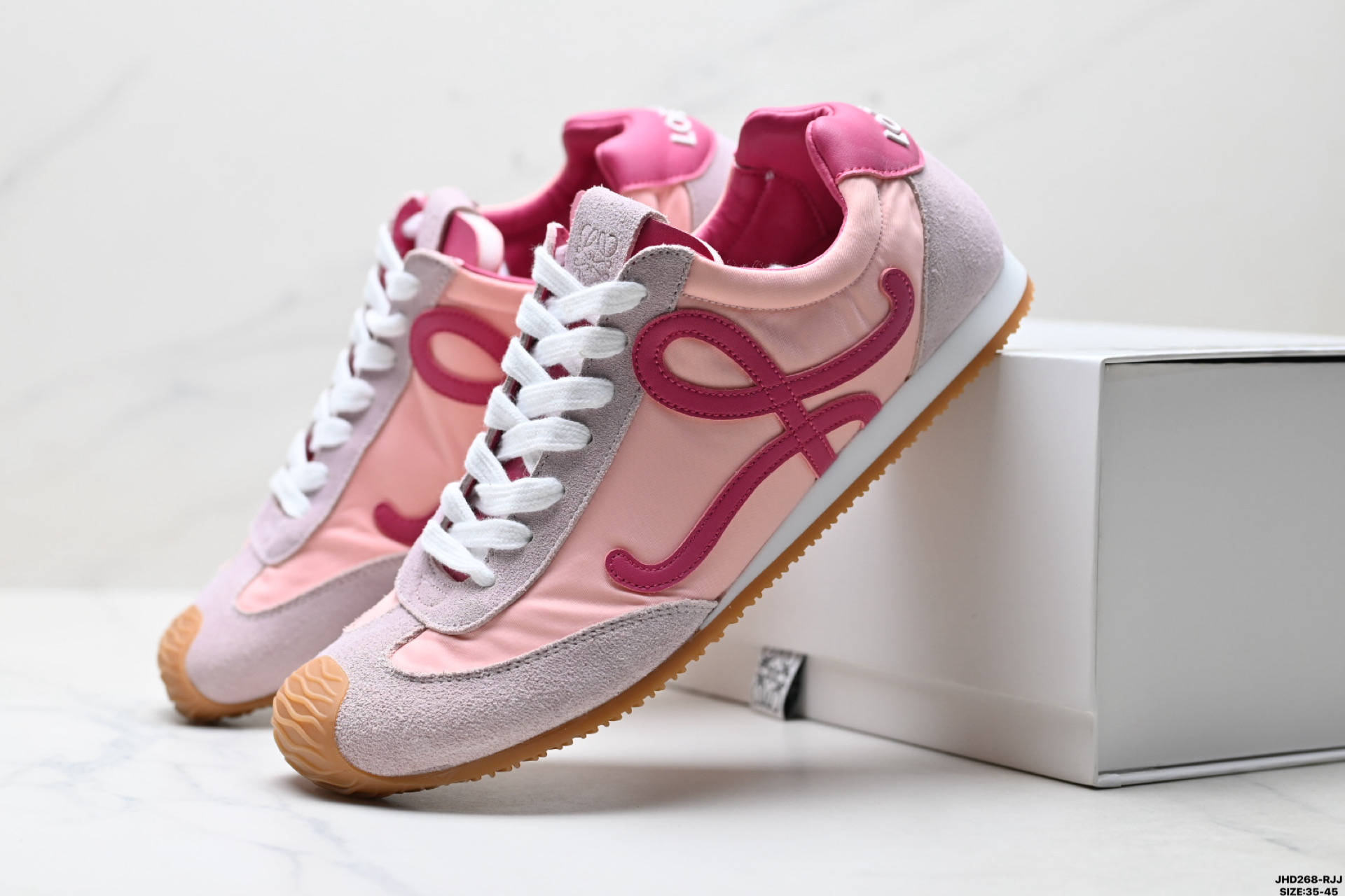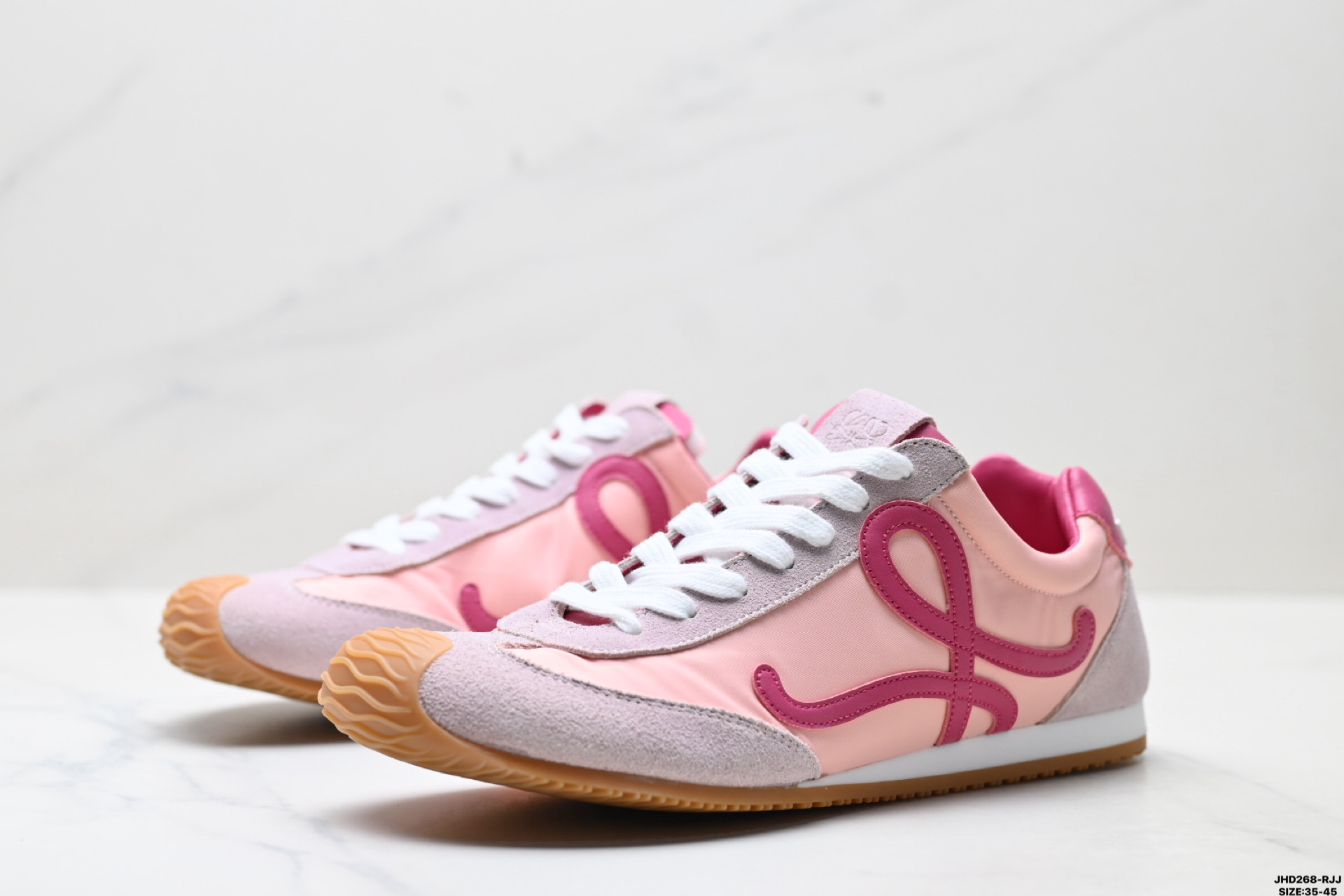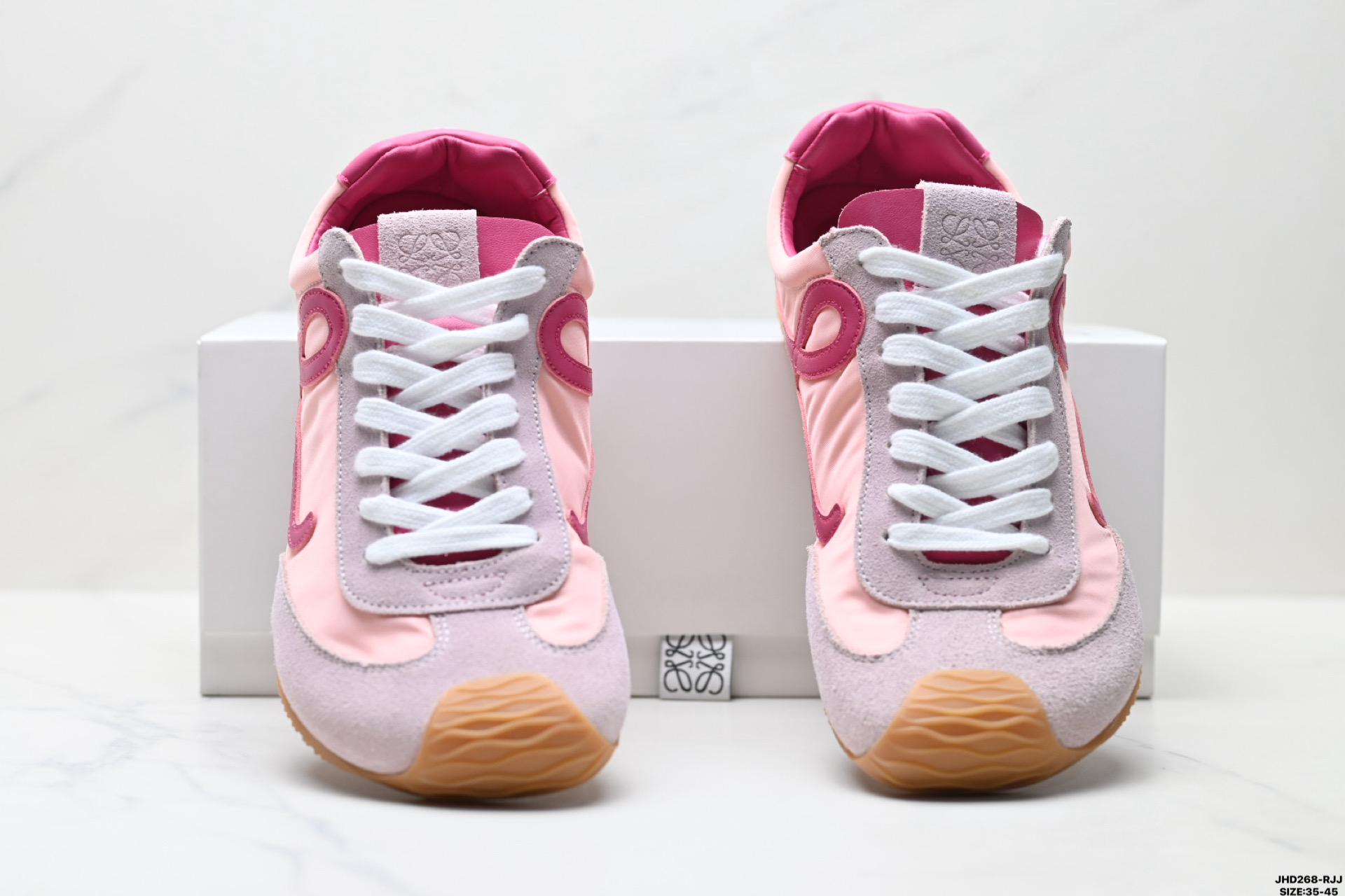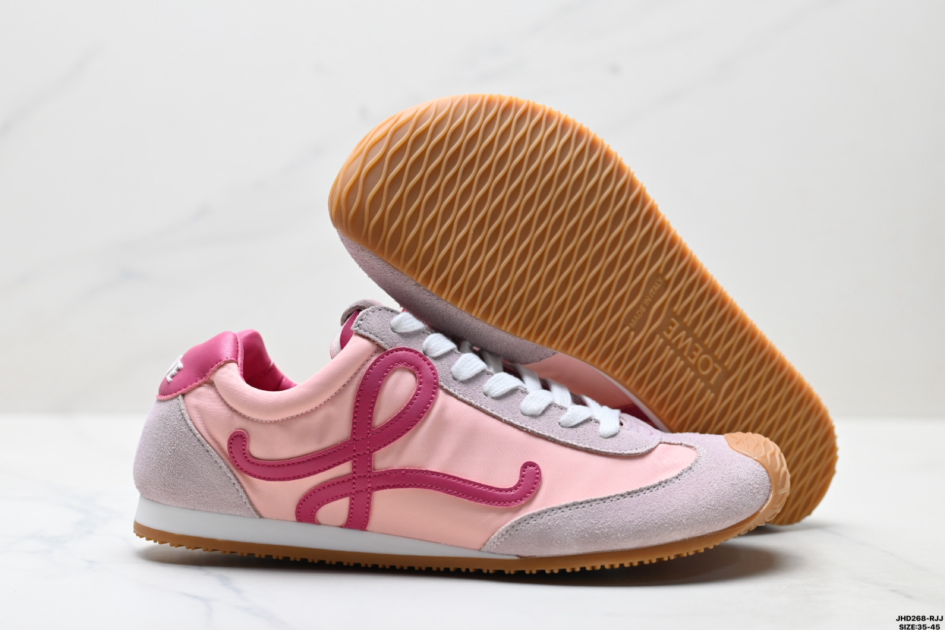 💰170 公司级✅Loewe Ballet Runner 2.0 罗意威 Sneakers系列阿甘复古风德训薄底百搭休闲运动鞋 广东纯原大厂出品 不对称鞋头设计 袜状内部结构 轻盈橡胶外底延伸至鞋头 后跟标签饰有注塑橡胶 LOEWE 标志 MAX推荐版本 升级原楦型开发纸版 全手工拉帮工艺成型 采用反绒牛皮革拼接头层皮饰片 鞋面材质 鞋身原装高密度防刮尼龙面料 极好柔软效果 双层乳胶缓震鞋垫 外部搭配轻量 EVA缓震组合橡胶防滑片装外底 尺码:35-45 ID:JHD268-RJJ