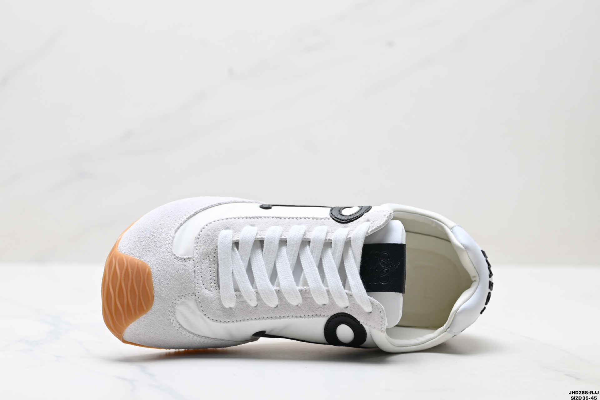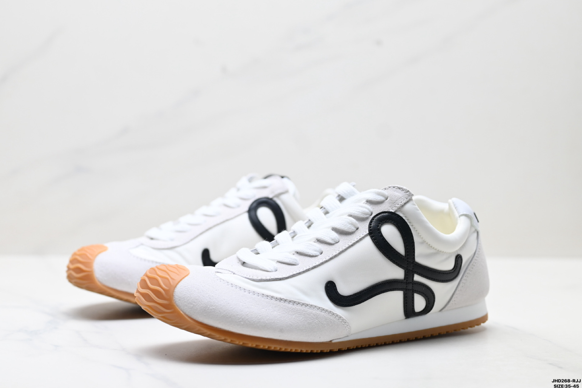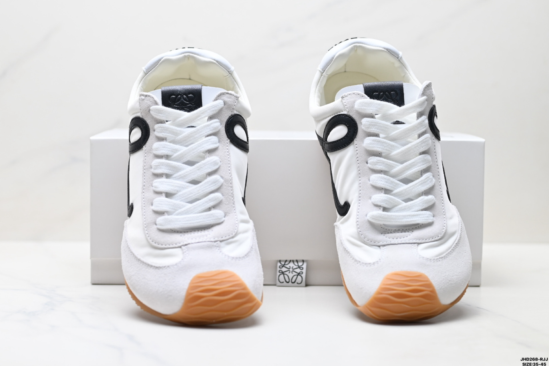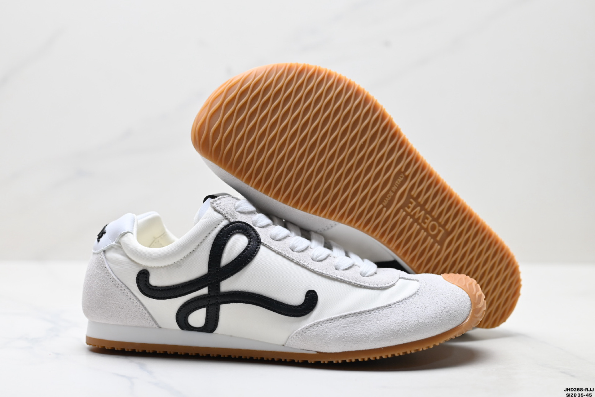 💰170 公司级✅Loewe Ballet Runner 2.0 罗意威 Sneakers系列阿甘复古风德训薄底百搭休闲运动鞋 广东纯原大厂出品 不对称鞋头设计 袜状内部结构 轻盈橡胶外底延伸至鞋头 后跟标签饰有注塑橡胶 LOEWE 标志 MAX推荐版本 升级原楦型开发纸版 全手工拉帮工艺成型 采用反绒牛皮革拼接头层皮饰片 鞋面材质 鞋身原装高密度防刮尼龙面料 极好柔软效果 双层乳胶缓震鞋垫 外部搭配轻量 EVA缓震组合橡胶防滑片装外底 尺码:35-45 ID:JHD268-RJJ
