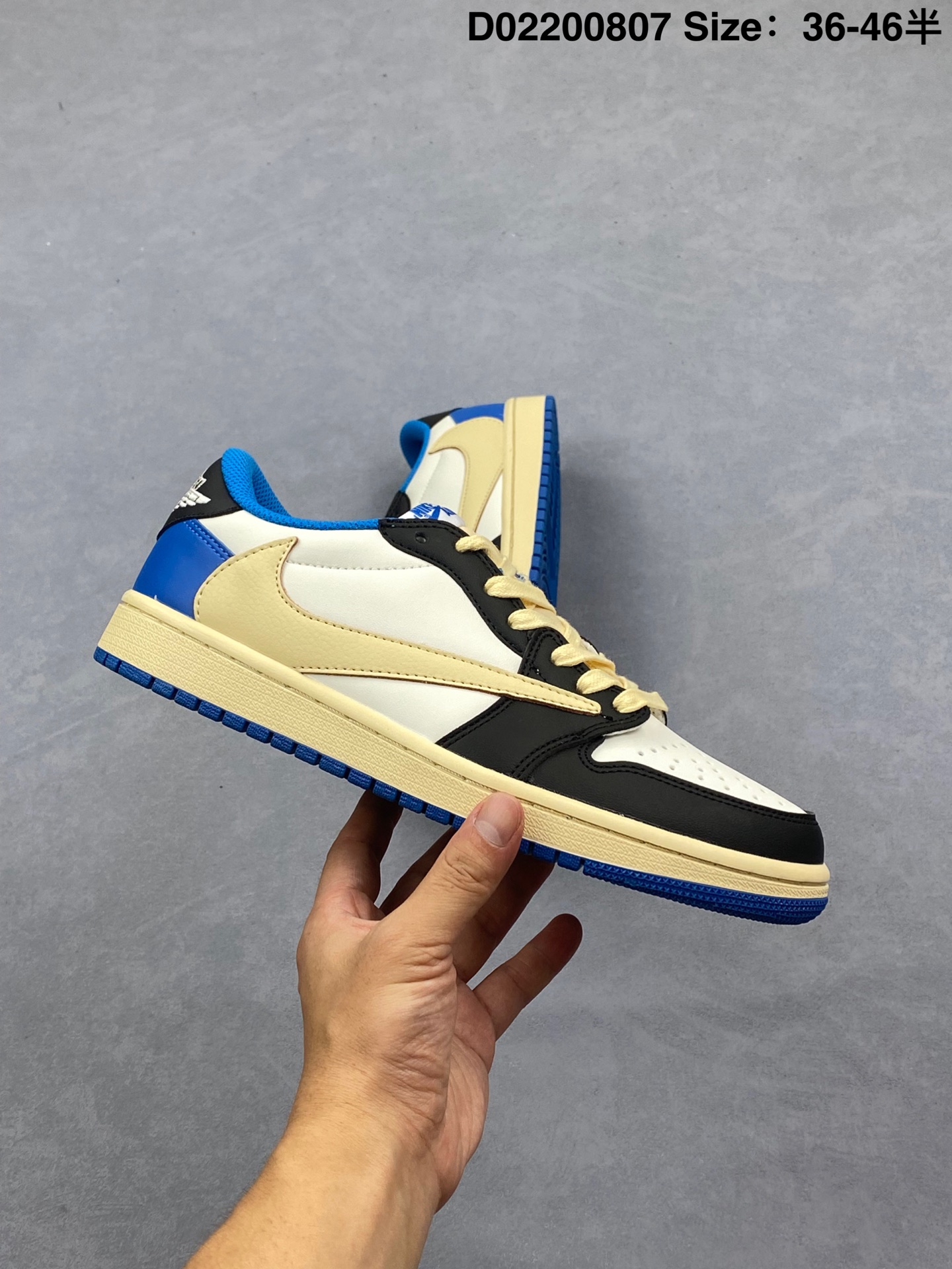💰100 乔丹Fragment x Travis Scott x LV Air Jordan 1 Low 三方联名倒钩,整双鞋以全荔枝皮打造,腰身搭配白色「倒勾」,再点缀上Travis Scott 标志性的Logo,后跟处以藤原浩最拿手的蓝色为主色调,完善极具Fragment Design的白蓝黑设计风格,左右脚分别以Travis Scott鬼脸和乔丹飞翼加以修饰,彰显出三方联名的奢华格调。 货号:DM7866-104 编码: D02200807Size:36~46半