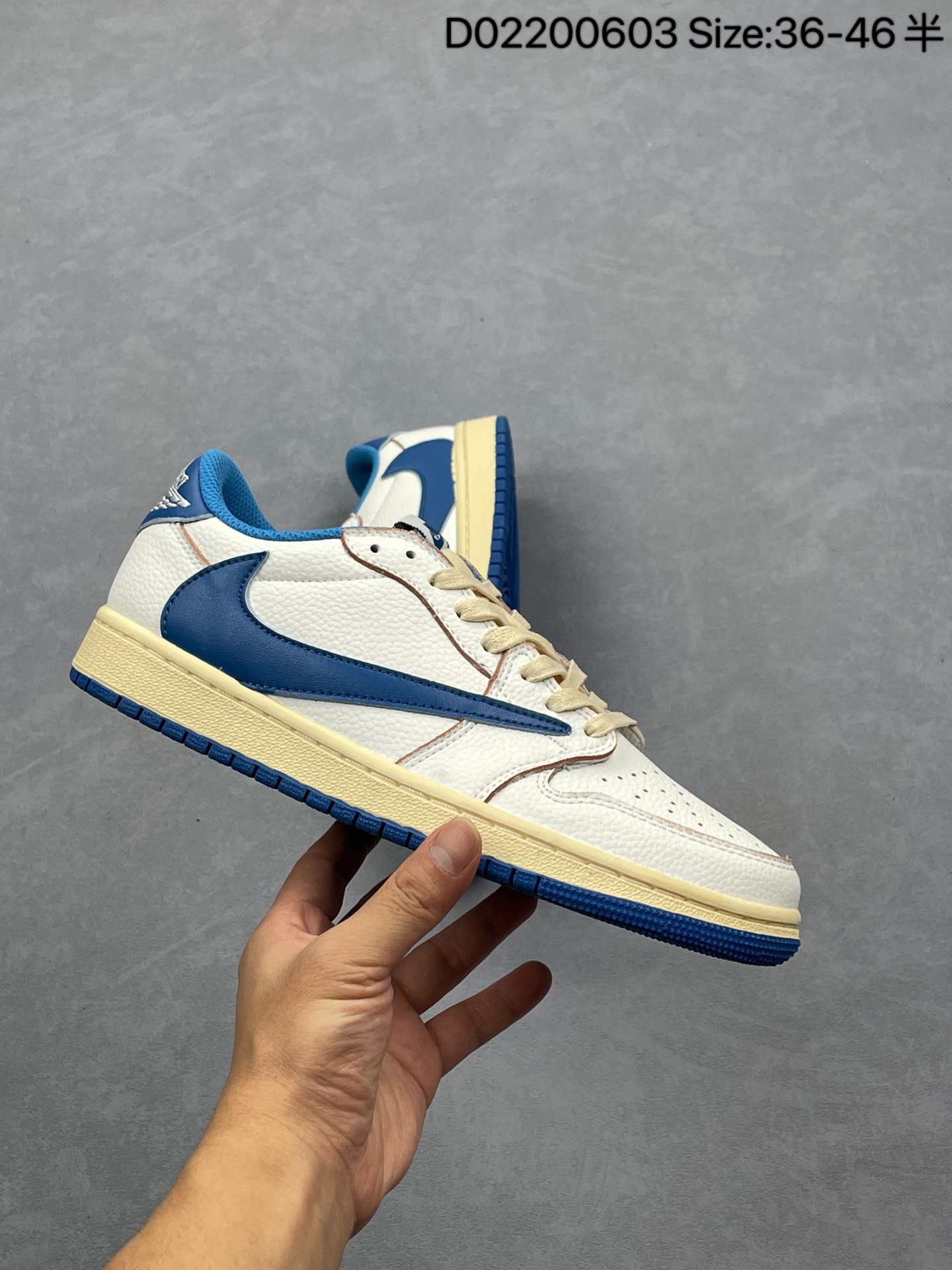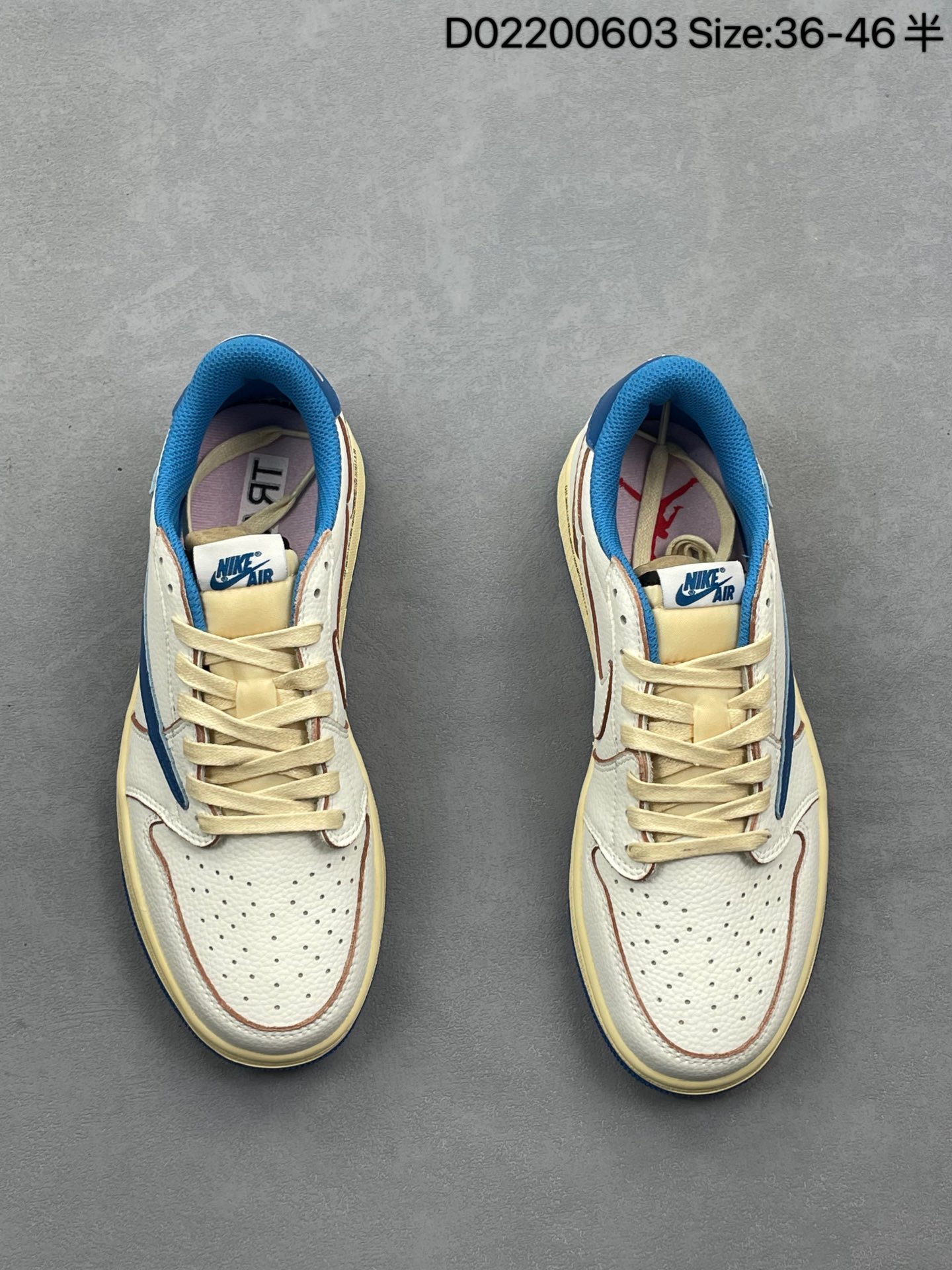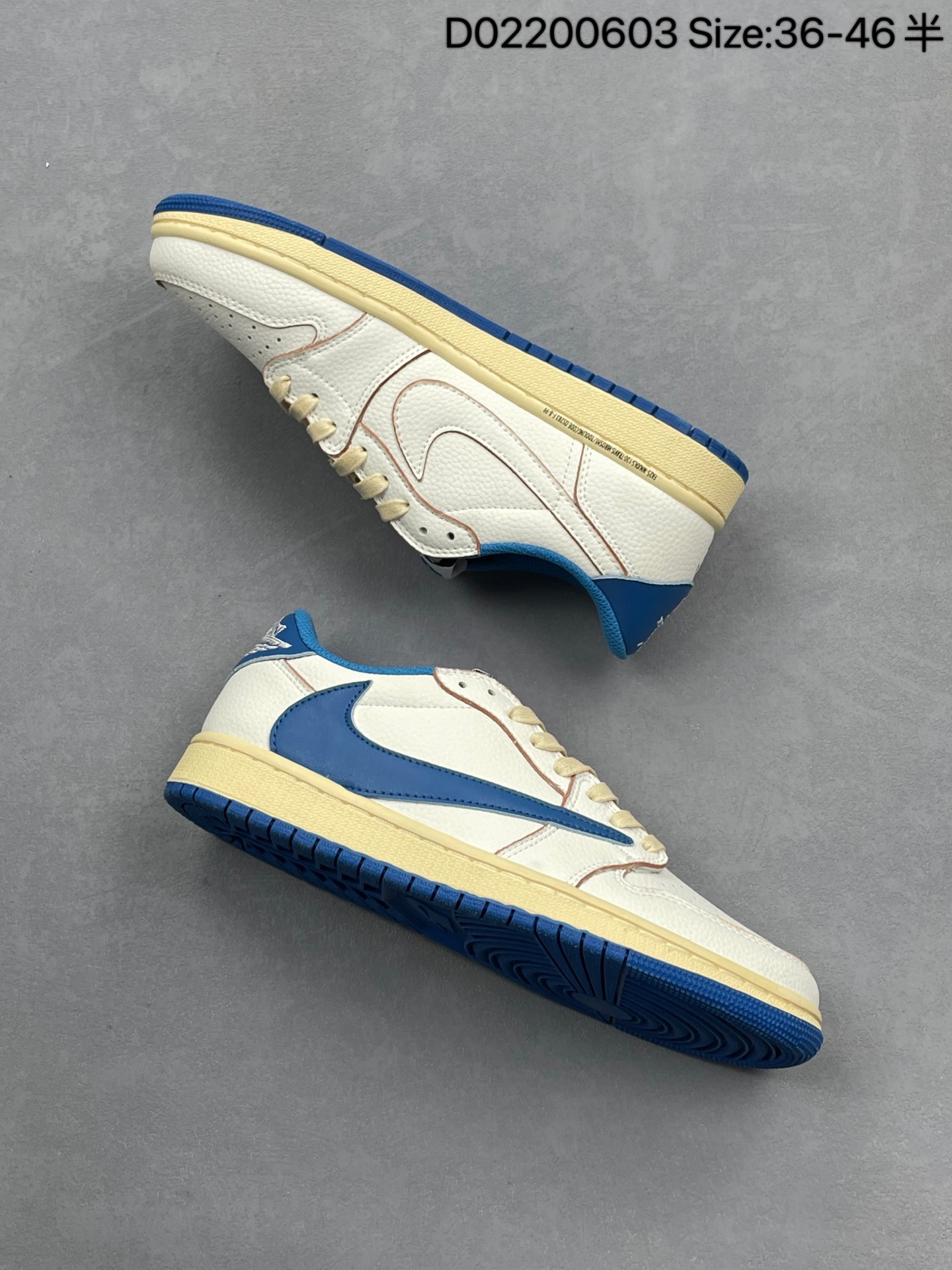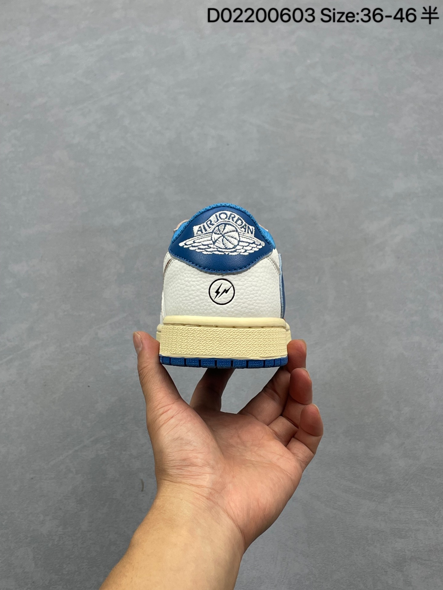 💰100 Travis Scott x Fragment Design x Air Jordan 1 Low OG 低帮 白蓝闪电倒勾联名 AJ1 乔丹1代 aj1 乔1 低邦 白蓝闪电倒钩联名 乔丹篮球鞋系列 鞋款整体以白色为底搭配白色框架呈现,标志性的反钩Swoosh Logo采用蓝色皮革呈现,内侧则辅以白色Swoosh Logo点缀,鞋舌等多处TS标志性元素均得以保留;鞋舌白色绣标上点缀蓝色Nike Swoosh Logo鞋身内侧Cactus Jack厂牌LLogo采用白色点缀,后跟的厂牌Jacck标志以及Wings Logoz均采用白色缝线打造,彰显联名身份;最后以米白色中底搭配蓝色橡胶外底完善整体设计收尾。 货号:DM7866-104 尺码:如图 D02200603