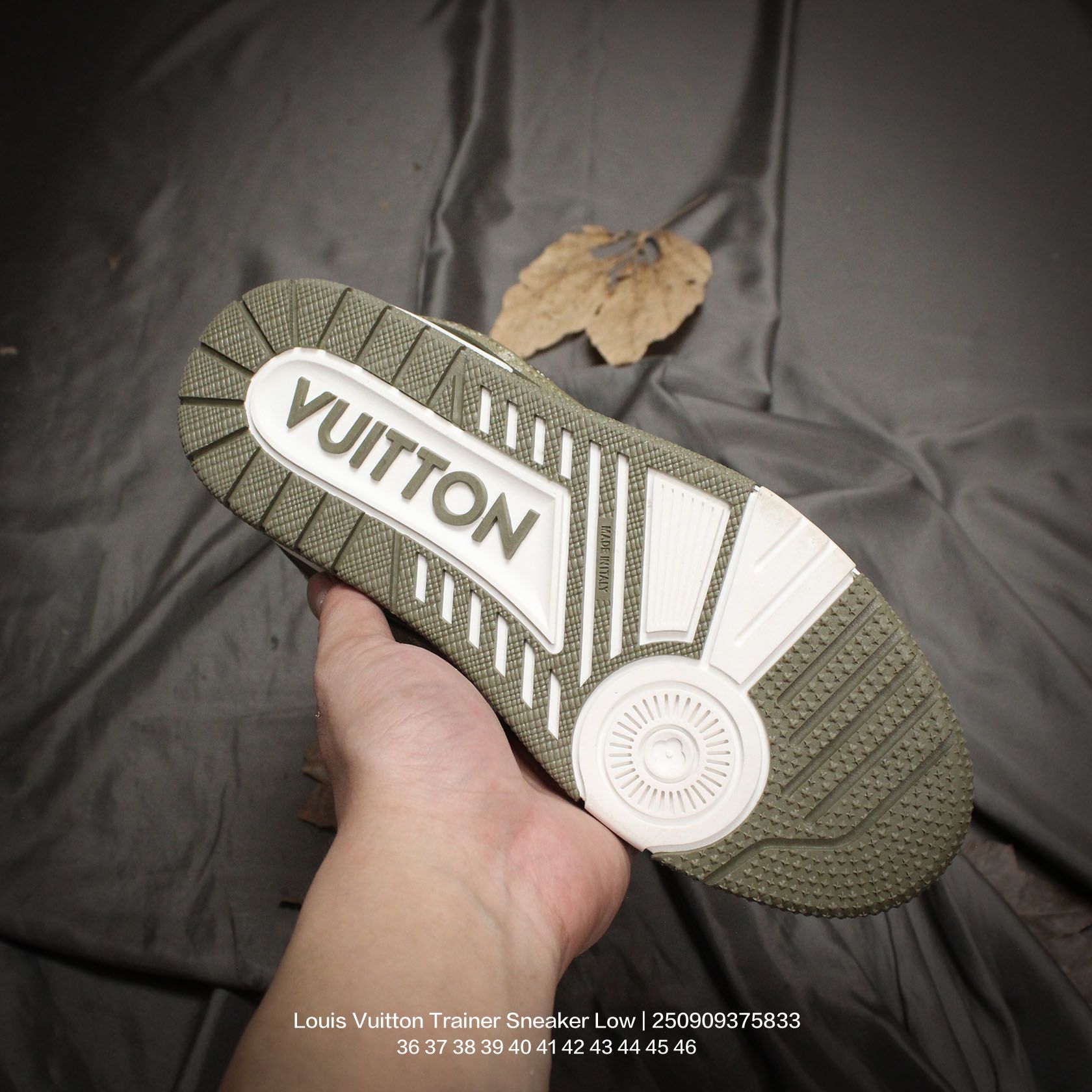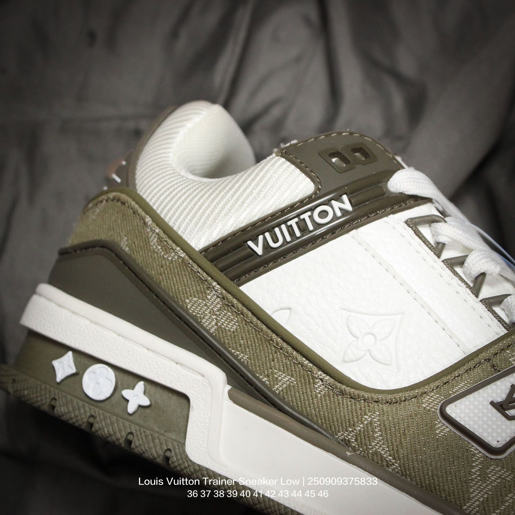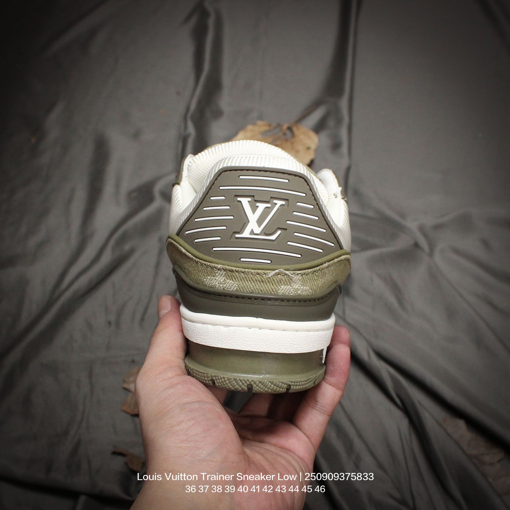 💰160 Louis Vuitton/路易威登 男女鞋配置厚实抽屉礼品鞋盒,采用荔枝纹纤维革组合粒面牛剖革鞋面材质,鞋垫嵌入软脚感EVA物料,外置TPR光泽隔色鞋底❗法国巴黎百年奢侈品牌LV路易威登Louis Vuitton Trainer Sneaker Low 运动系列低帮复古百搭休闲运动文化篮球板鞋“ 类型:男女鞋 码数:36 37 38 39 40 41 42 43 44 45 46 编码:250909375.833