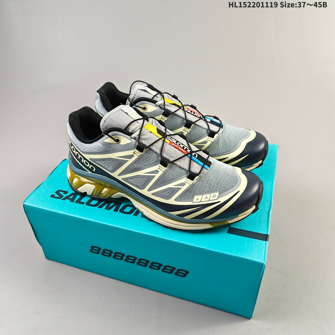 集合二💰220 莞产纯原礼盒版本 全码出货‼ Salomon XT-6 黑灰银 萨洛蒙机能风户外越野跑鞋 实拍上架 鞋面采用SENSIFIT贴合技术 全方位贴合包裹脚型 鞋跟部鞋底牵引设计 提供强大的抓地性能 更适应野外崎岖不平的道路 其3D ADVANCED CHASSIS底盘 材料轻量大化 钉齿设计更具稳定性、防护性 鞋底易磨损区运用CONTAGRIP高耐磨材料 应对城市硬质路面长距离跑考验 货号:416635HL152201119 Size:37~45B