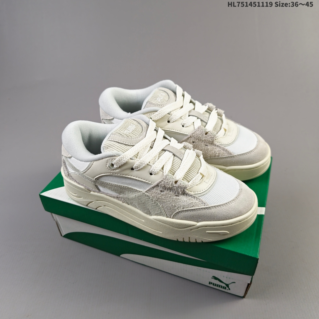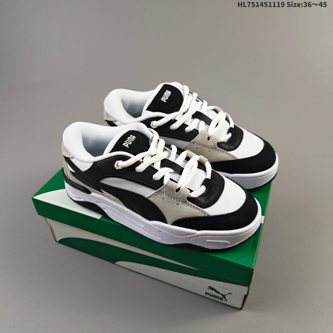 集合一💰145 PUMA 180 Night Rider 彪马 防滑耐磨低帮休闲板鞋 设计灵感源自90及00一代的滑板运动文化 简约又不失设计巧思的帅气风格让它轻松驾驭日常休闲或滑板场合 运动兼具匠心 细节彰显品质 衬垫边缘以提供支撑和灵活性 强化鞋头以承受持续的磨损 耐磨性强 稳定性高 抓地更牢 不易打滑 官方货号:394873 02 编码:HL751451119 Size:36~45