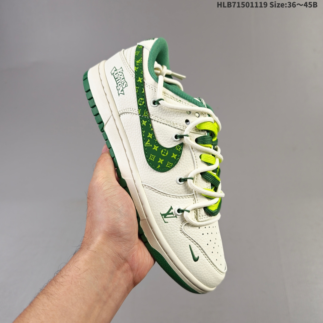 集合💰150 NIKE DUNK SB LOW 全新配色 LV联名 定制Dunk SB顾名思义,具有经典的Dunk血缘,又注入了更多的时尚元素。相较于普通的Dunk滑板鞋,改良版的Dunk SB加厚了鞋舌的填充,使舒适性大大提升,同时也更方便穿脱;中底部分则加入了脚感柔软舒适Zoom Air气垫,有效吸收滑板等极限运动在落地时带来的冲击力,为街头运动者们提供更好的保护 货号:M6868 078 尺码:36 36.5 37.5 38 38.5 39 40 40.5 41 42 42.5 43 44 45HLB71501119 Size:36~45B