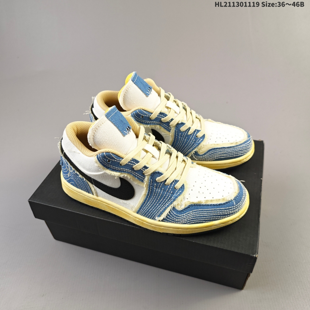 集合💰130 Air Jordan 1 Low 低帮 刺子绣白蓝黑 AJ1 乔丹1代 aj1 乔1 低邦 做旧刺子绣 乔丹篮球鞋系列 整双鞋以白色为主调,辅以单宁蓝色、黑色点缀,视觉效果简约却不简单。鞋身选择白色牛仔布和蓝色单宁材质组成,黑色皮革Swoosh,呈出的质感在Air Jordan 1上十分罕见。除了一目了然的「刺子绣」元素外,单宁材质与白色牛仔布的每一个连接处还进行了破坏处理,使鞋款有着极强的层次感。以重度做旧泛黄的中底收尾,完善了整体造型设计。 货号:FN7670-493 编码:HL211301119 Size:36~46B