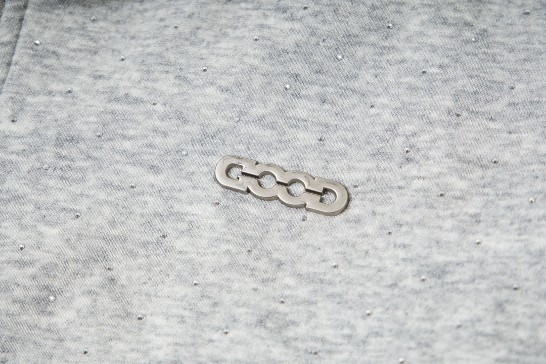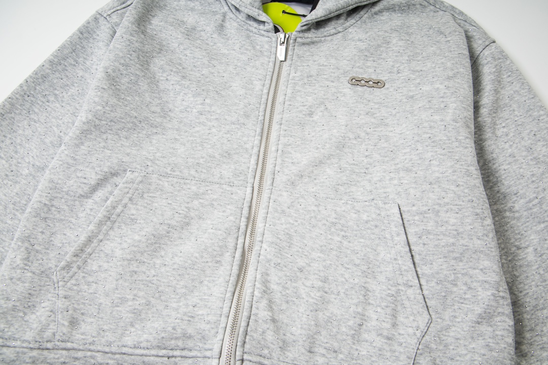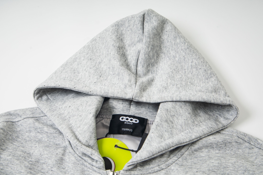 P215 款号Y649 GOODBRAND 闪银星空烫钻空气层开衫连帽卫衣 男女同款 颜色:灰色 黑色 码数:S M L XL