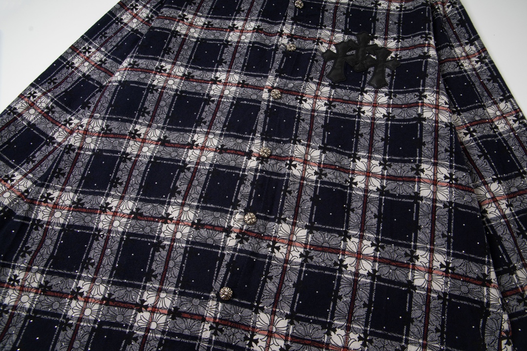 P205 款号Y651 顶级版本!克罗心格纹十字架贴皮满钻长袖衬衫 心心念念的格子衬衫给你们安排了格子控来报到! 原版宽松版型 优选高品质纯棉面料 面料花纹高清细腻无毛边 穿着舒适透气 纽扣全部开模定制 随性时髦可搭配任意下装 春夏可防风防晒 秋冬内搭或是外穿都非常可!轻松凹造型 显瘦显高 男女均可完美驾驭!定制主标 辅料 水洗齐全 全身走线品控无线头! 颜色:黑色 红色 尺码:s−xl