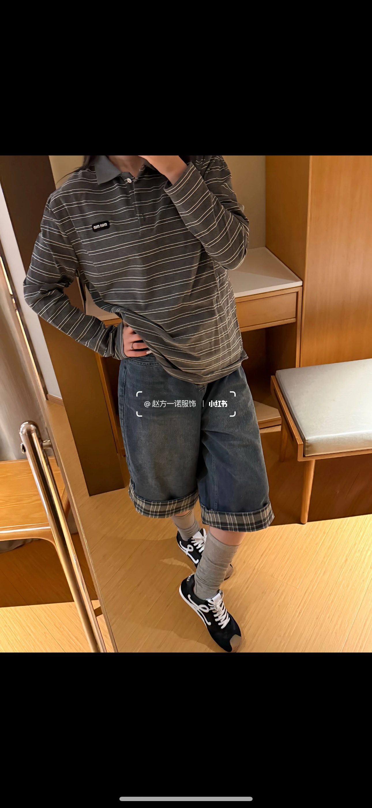 MIU MIU缪缪MM 条纹POLO长袖 上身效果