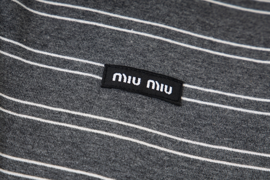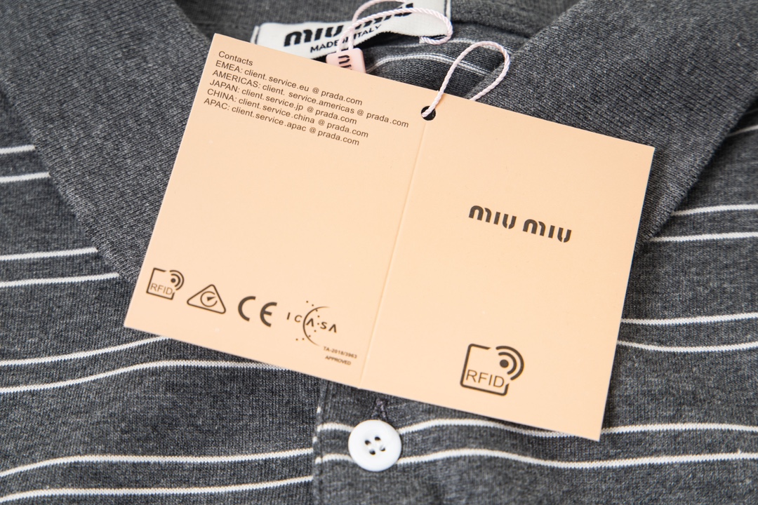 P190 款号Y647 MIU MIU缪缪MM 条纹POLO长袖 正品14700购入开发,定制定染50支纱线条纹卫衣料380克,扁机罗纹,定位裁床,进口刺绣,定制1:1拉链,定制1:1商标,宽松版型 Size:S-XL