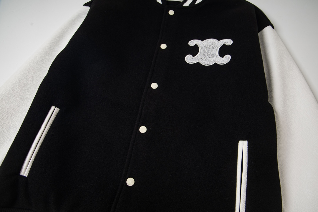 P275 款号Y624 CELINE/赛琳 拼接刺绣棒球服夹克外套 温馨提示:建议手洗或者干洗!! 今年格外火爆 棒球服外套,市场各级版本都有(细节你们一定要对比)最牛X的实力品控 生产研究棒球服7个年头 细节精致 拥有它,你就是全宇宙的最靓的仔. 烤漆面全平面四合扣(纽扣带LOGO),面料定制就发了一个多月 不是市面现成的 采用毛昵混纺,定织定染 拥有较高的色牢度 初次洗涤还是建议手洗或者干洗 《下摆的针织罗纹定织》, 内衬是丝滑细腻的铜氨纤维材质,直接贴身穿着 舒适无比,重磅单品,代购版本! Size:M-XXL