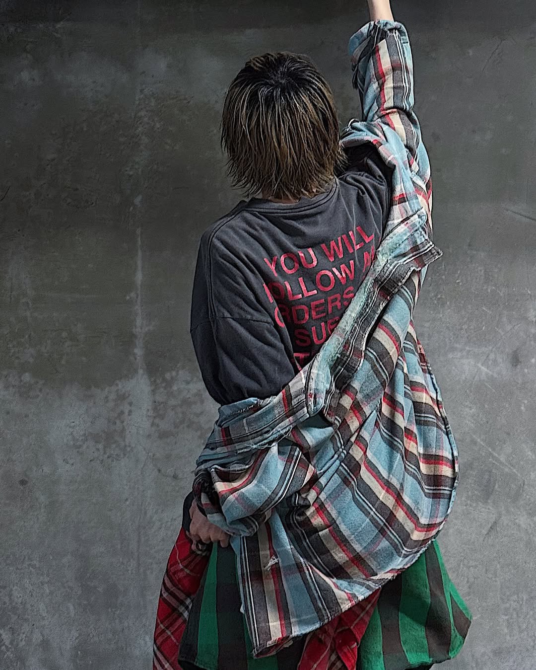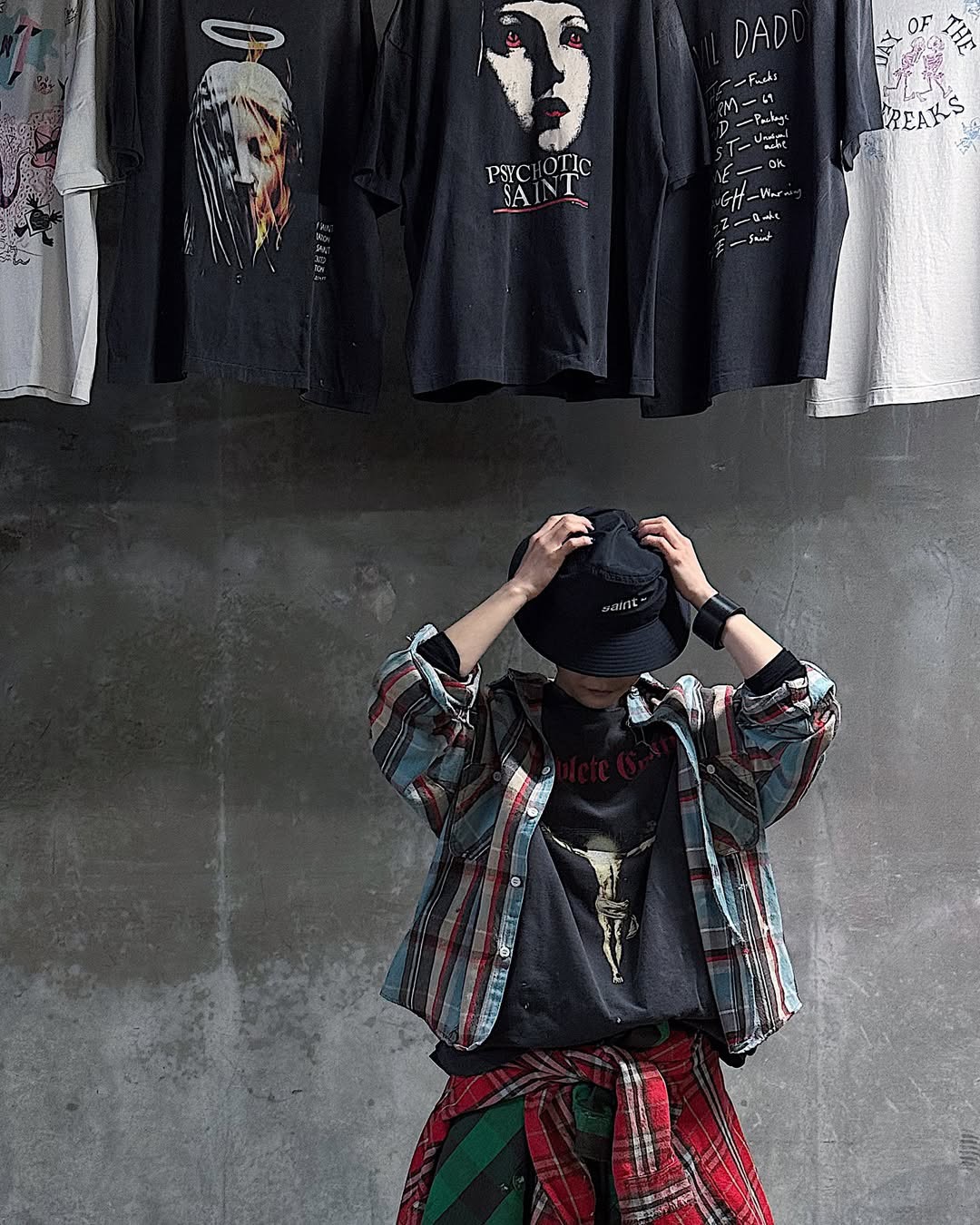 #SAINT MICHAEL 枪械十字耶稣印花长袖上身效果
