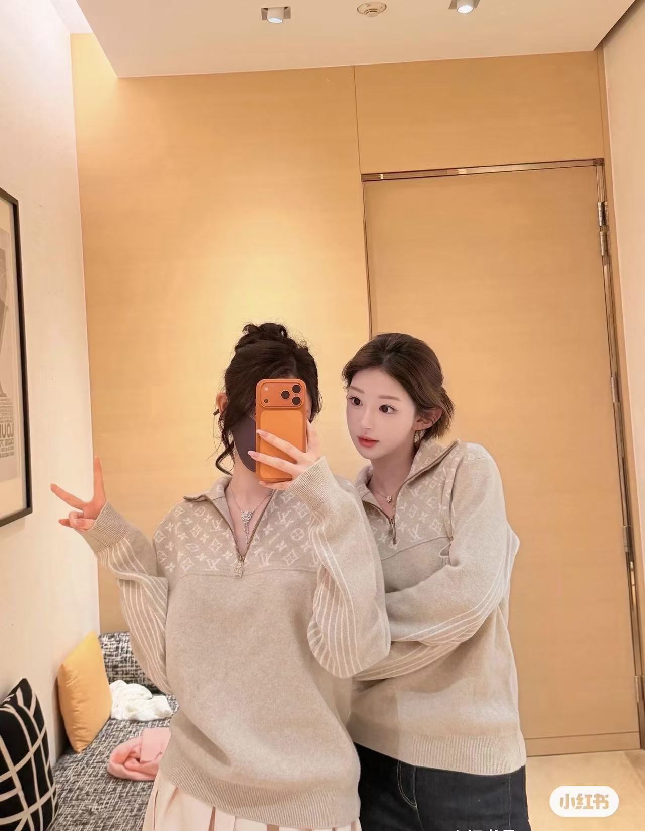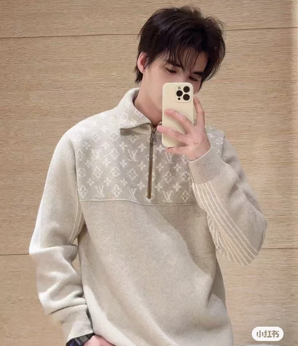 #Louis Vuitton/路易威登 25Fw 滑雪系列老花提花半拉链毛衣上身效果