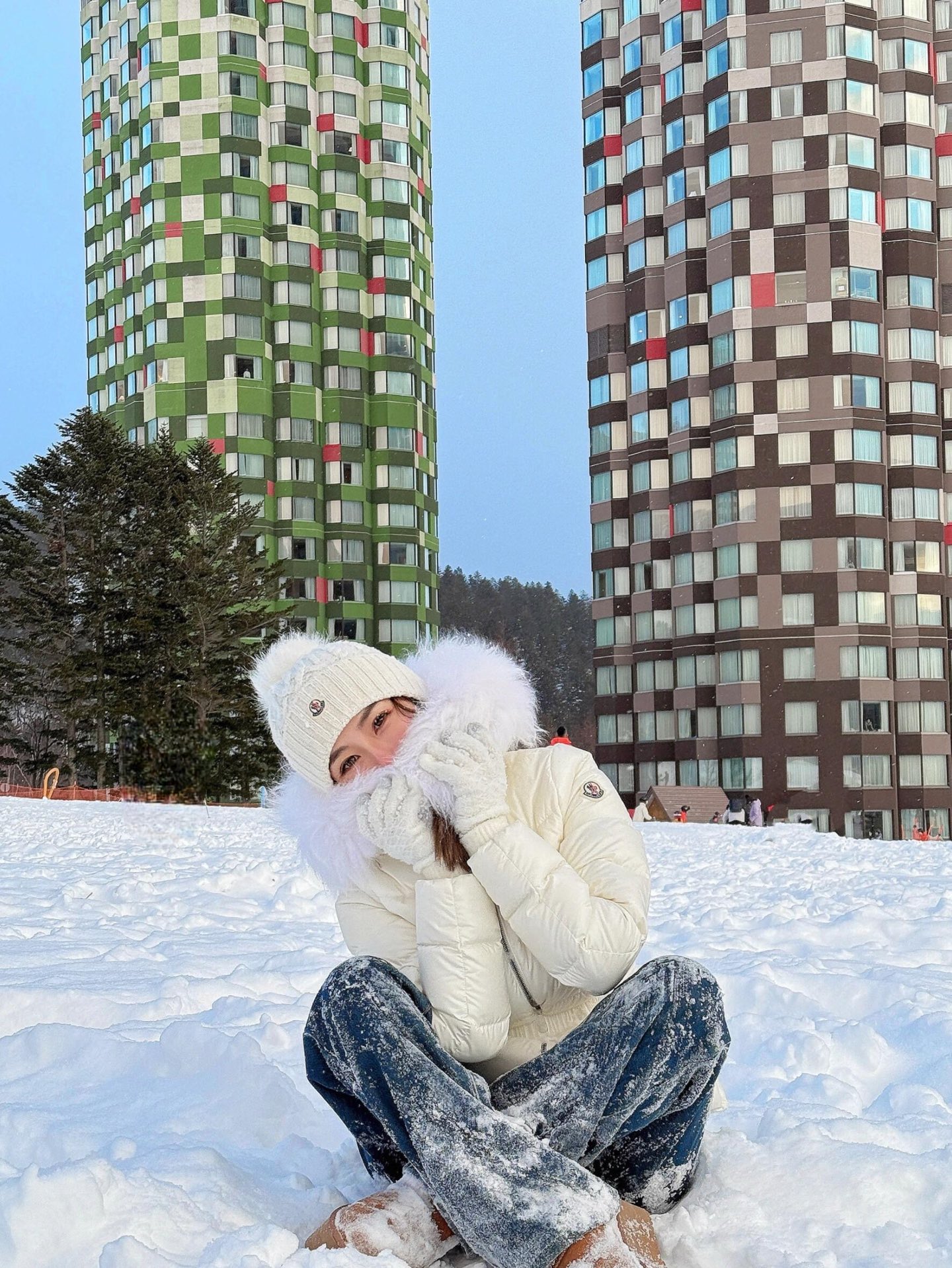 #Moncler/蒙口 腰带束腰毛领连帽女士短款羽绒服上身效果