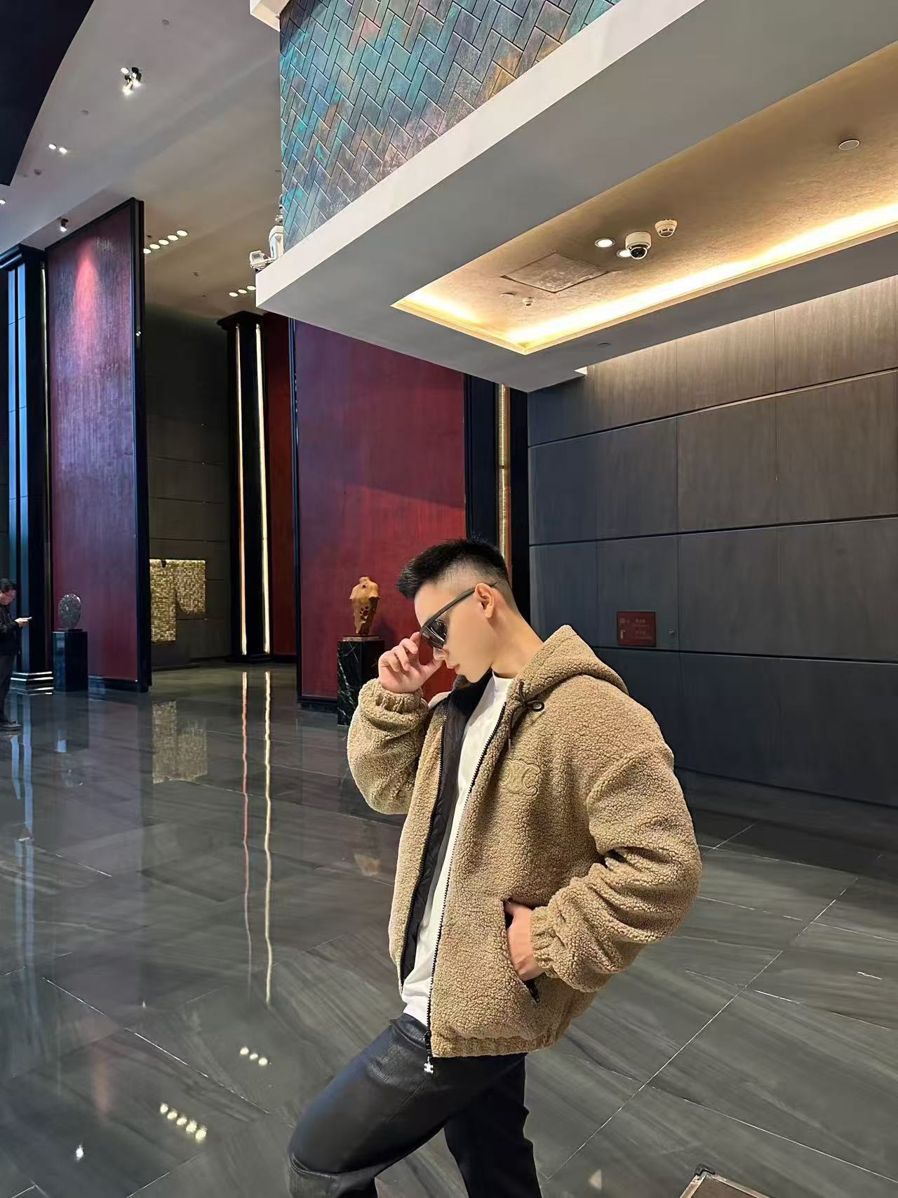 #Celine/赛琳 凯旋门绒面棉服外套上身效果