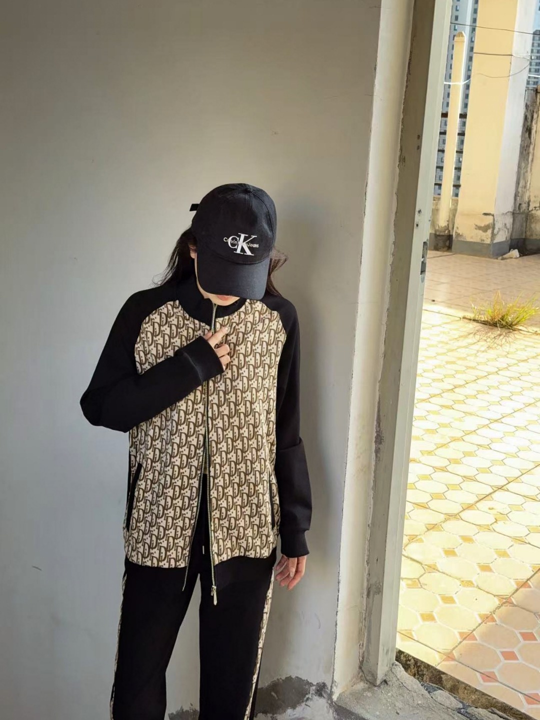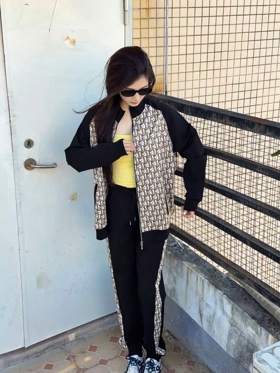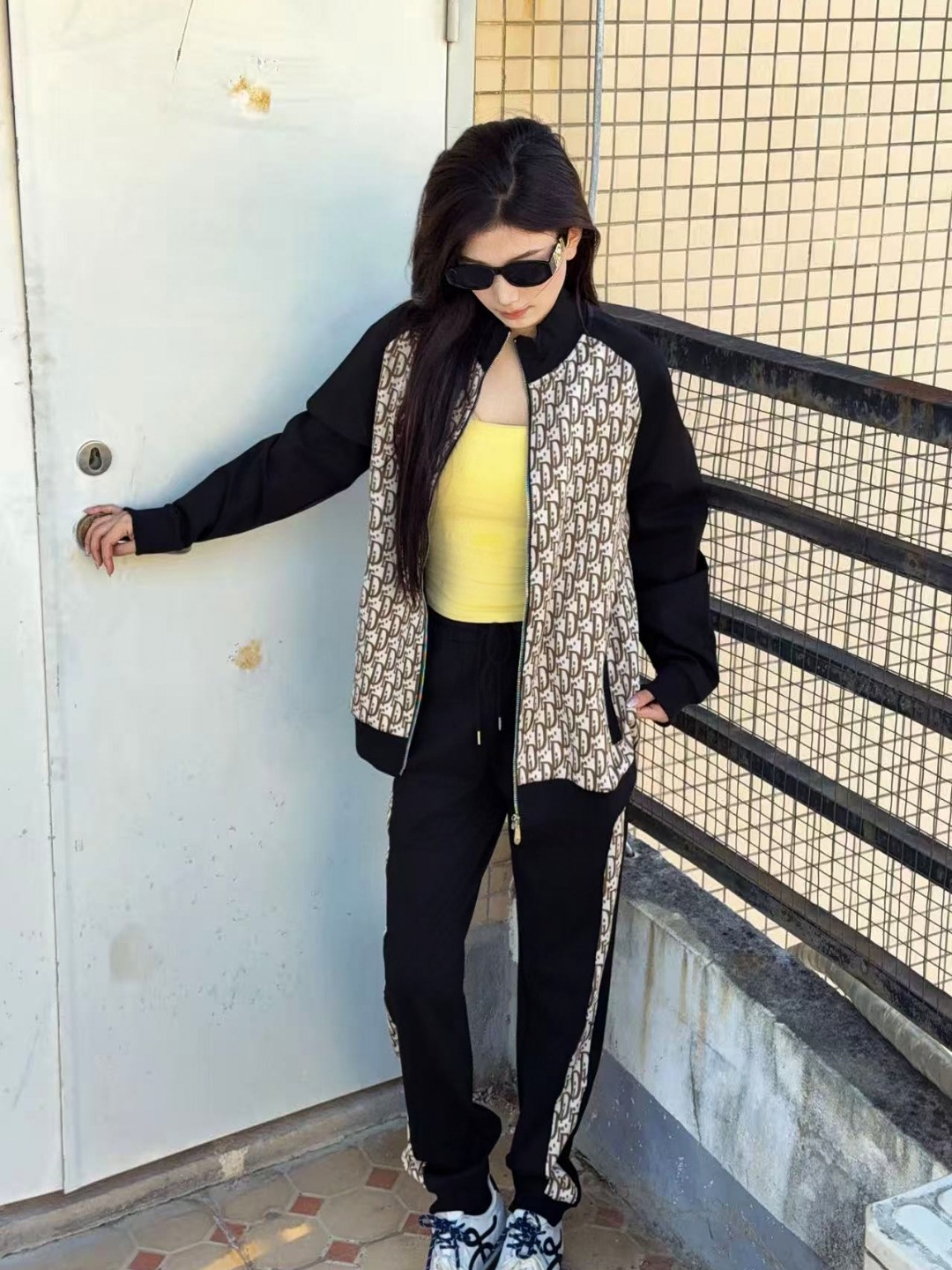 Dior/迪奥 25Fw 撞色拼接老花字母满印套装拉链外套 上身效果#