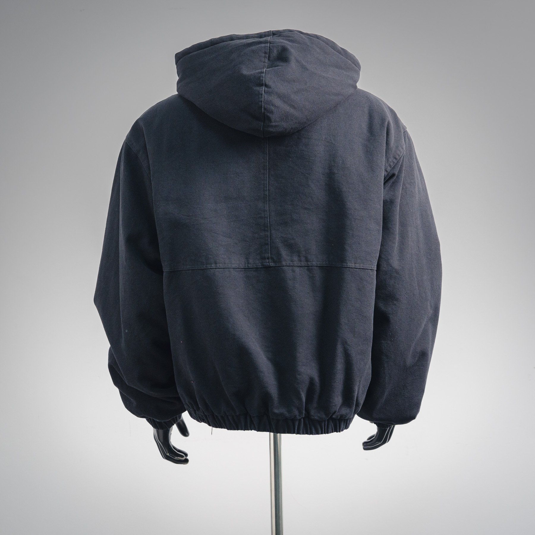 Stussy斯图西 水洗做旧字母刺绣黑8 连帽工装棉服外套