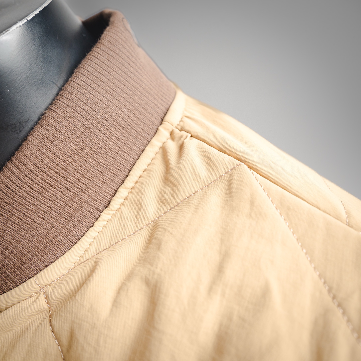 🎱 BALL QUILTED LINER JACKET 首先,先讲讲工艺,整件衣服全部菱形格子都要对位,需要一件件手工裁剪才行,整整耗时七天才能裁完。