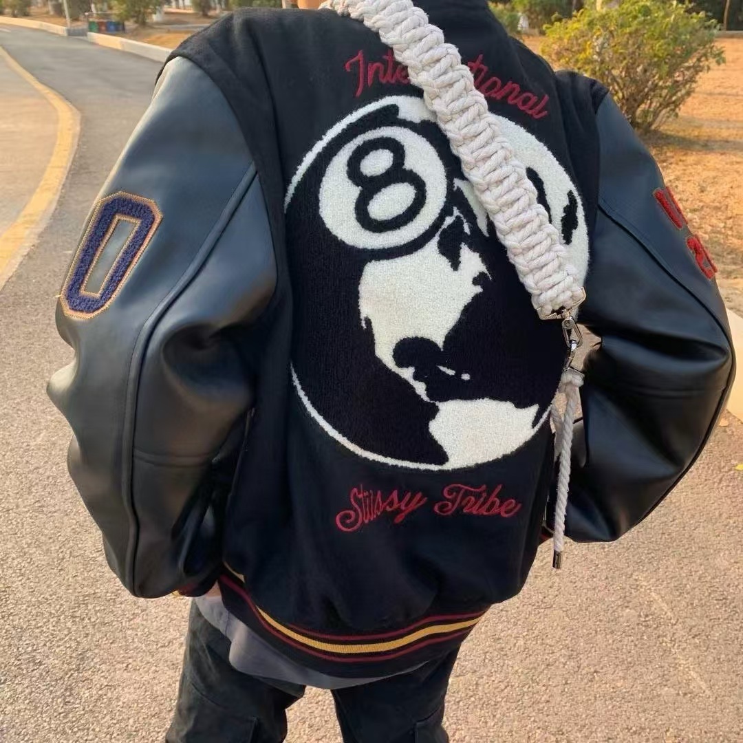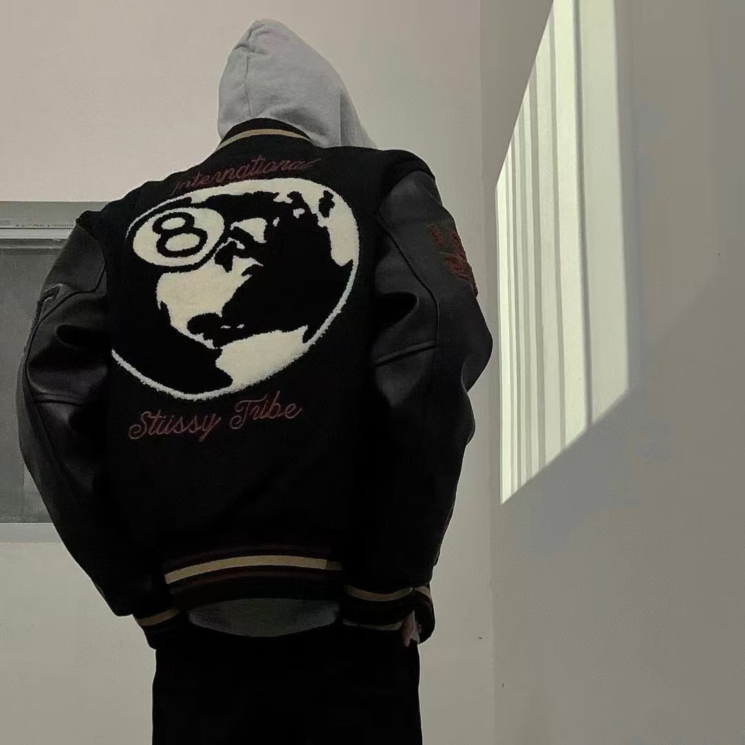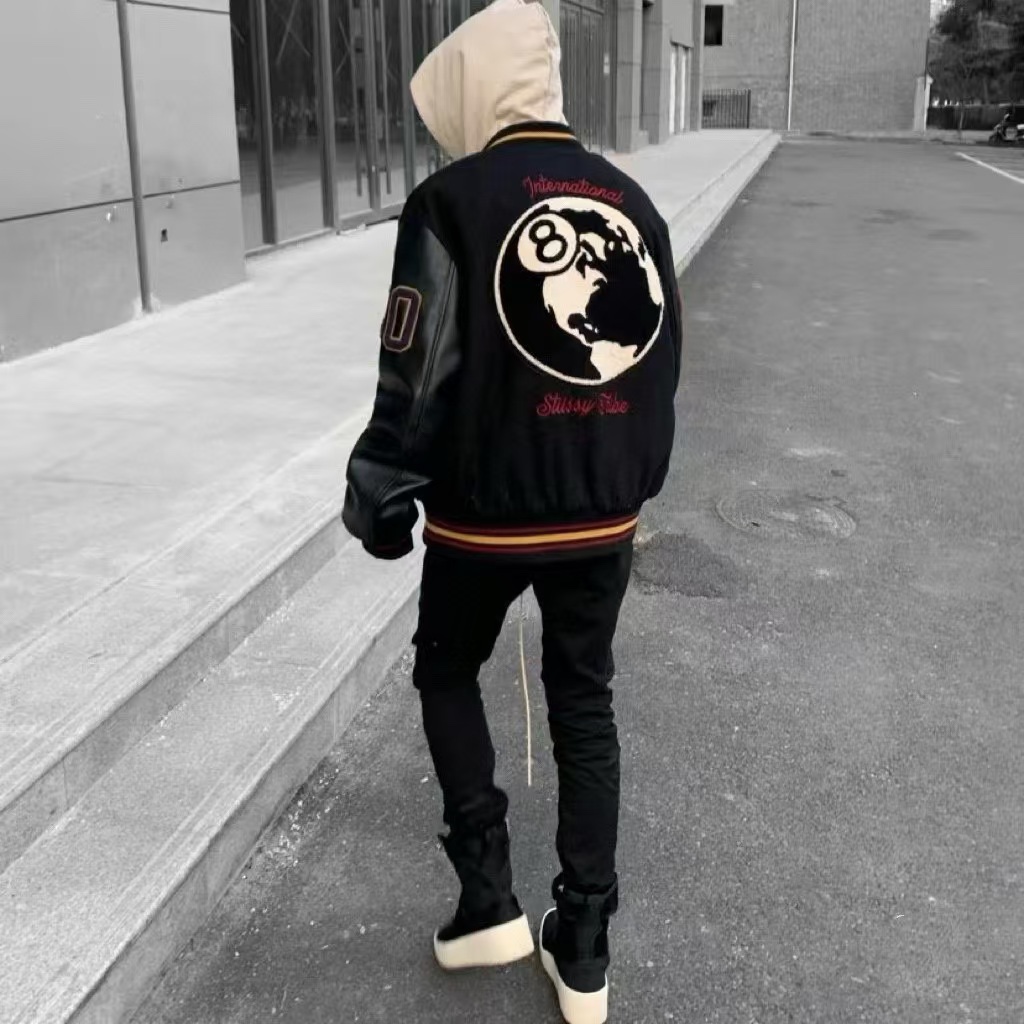 STUSSY斯图西 40周年限定黑8毛巾绣棒球棉服外套 上身集合