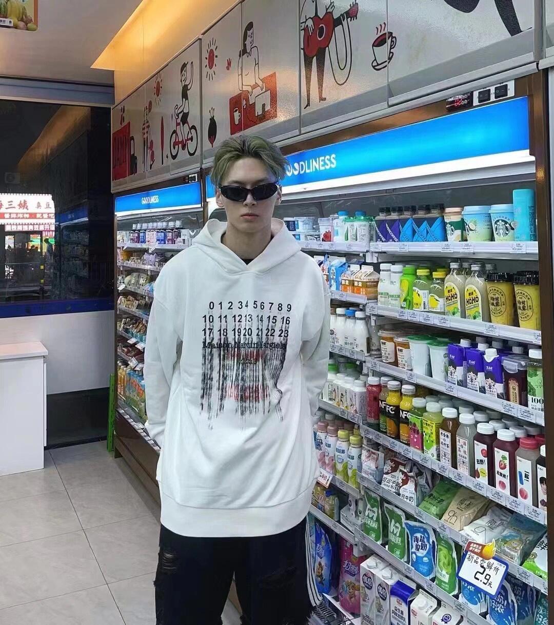 #MaisonMargiela/马吉拉 重影数字印花连帽卫衣 上身效果图#