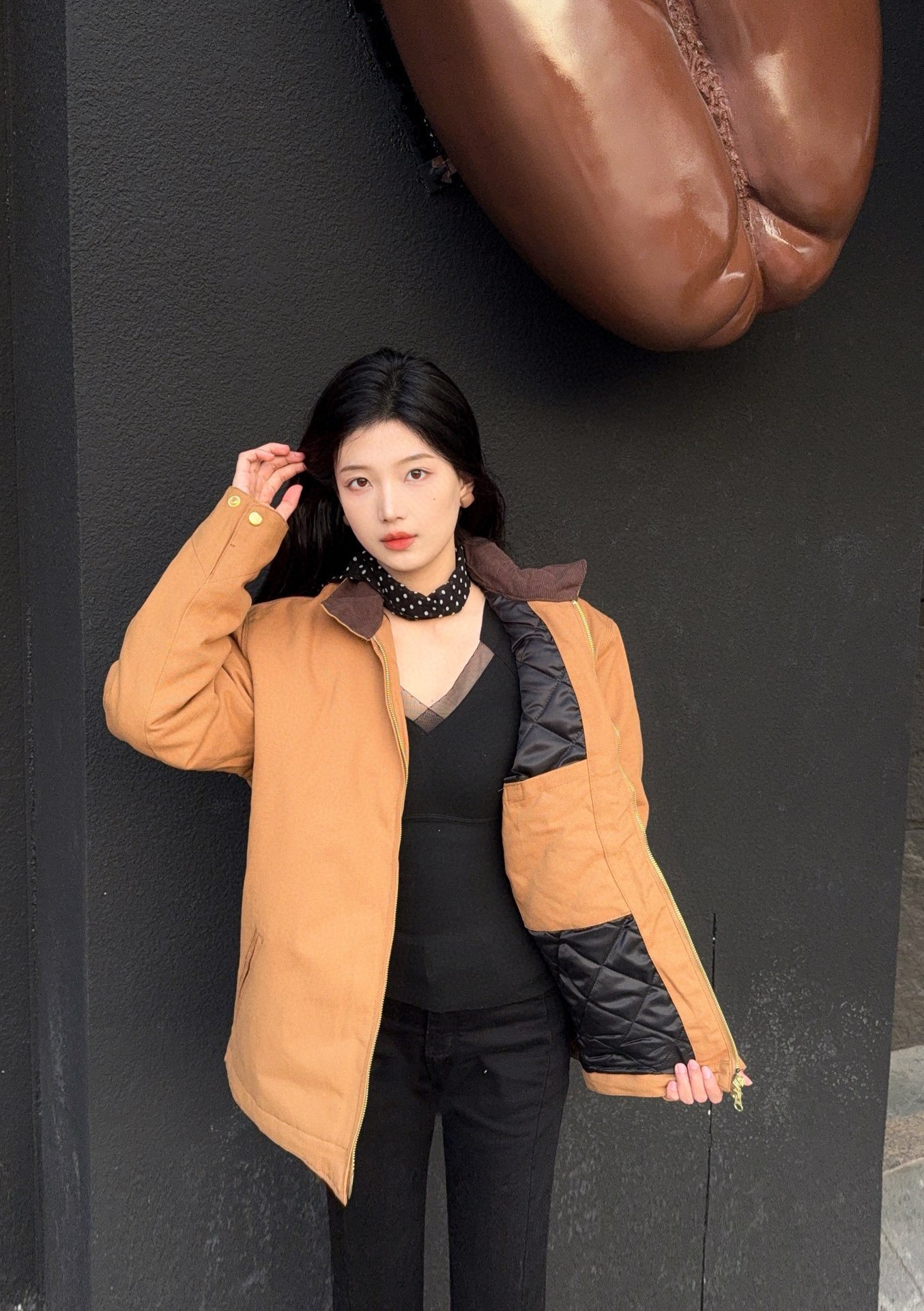 #Carhartt WIP卡哈特复古特律工装灯芯绒领棉服夹克上身效果