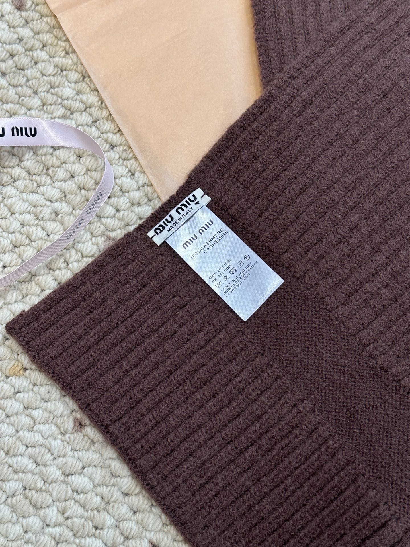 P190 miumiu【新款来袭】MIU专柜最新编织系列!这是一个特别稀有的款式,这也是缪家第一款采用纯色针织工艺的围巾!肯定会成为秋冬季的主打款式!质地非常柔软亲肤,非常好搭配好驾驭,超值回馈~拿到手绝对觉得值!尺寸:180*30cm!100%羊绒!