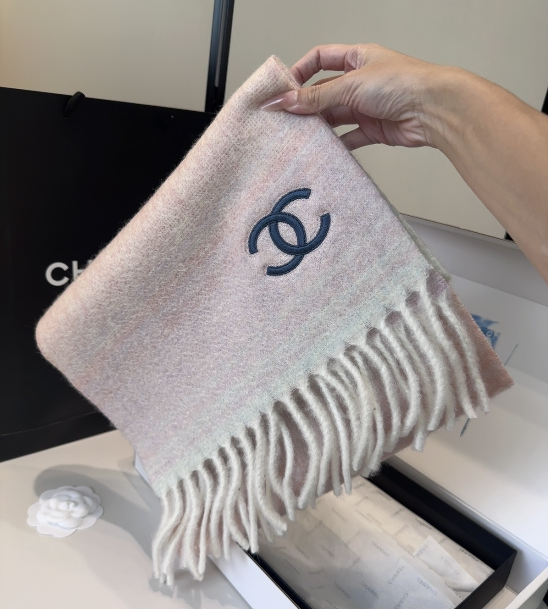 香奈儿超美新款马海毛围巾!超级推荐入手!】质感好货!主打的马海毛围巾~据说超难买哦!!打了好多次版!终于出货  最接近原版  进出专柜无压力👍🏻做工非常精致,很有分量,我们的价格真的超级值!这个围巾最大的感触就是:超级柔软舒服,并且很有空气蓬松感!!!马海毛特殊工艺特有的质感真的太美了!数量有限,不保证随时有货~只要经济允许,任意收!!狂不挑人,狂气质!谁围谁有气质!!真的希望大家不要错过这样的款式。    40*185   225g   50%马海毛  48%羊毛   2%锦纶💰210
