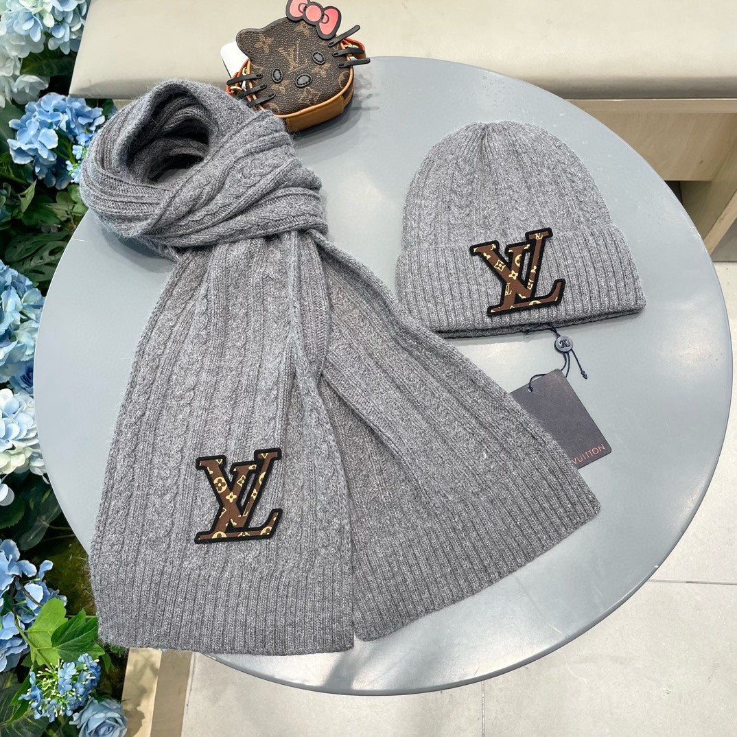 P190 Lv家。【两件套-羊毛套装帽子】经典套装帽子!帽子➕围巾!暖暖哒超级舒服~冬日小姐姐减龄神器哦~这个冬天你就差这么一套套装帽子啦~又保暖又时尚!男女通用款!可以做情侣款!防伪标签吊卡齐全!多多款式,欢迎选择!