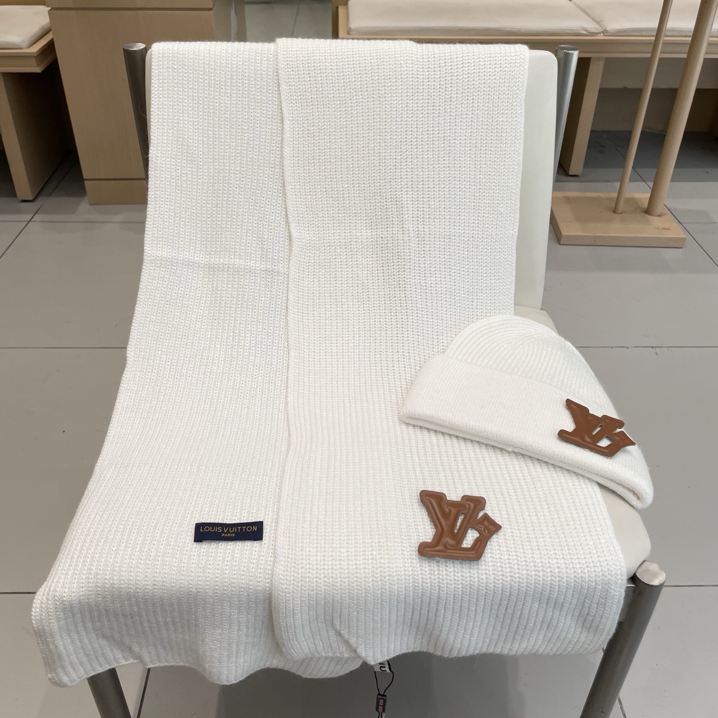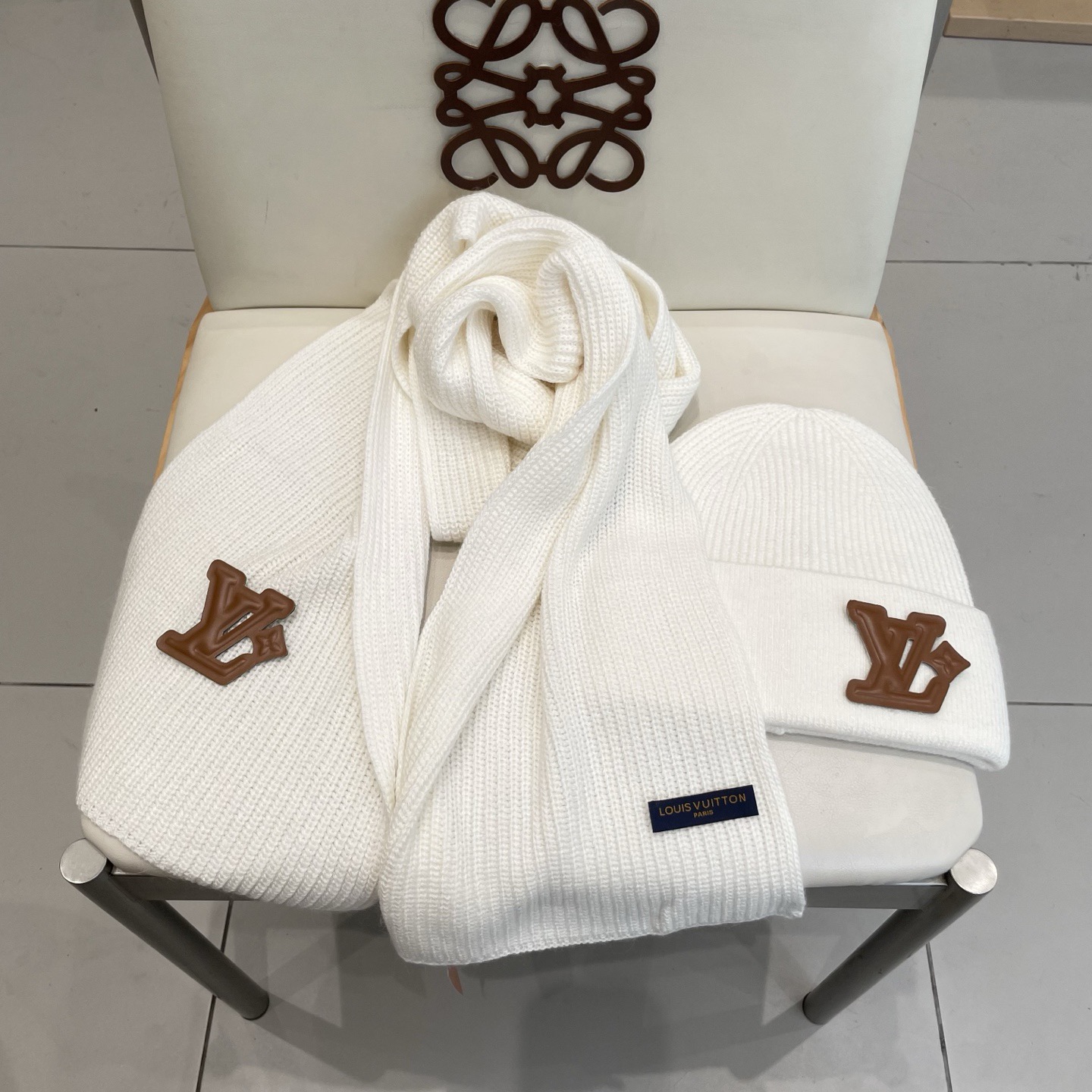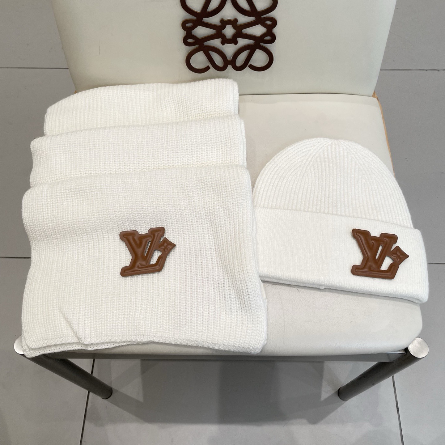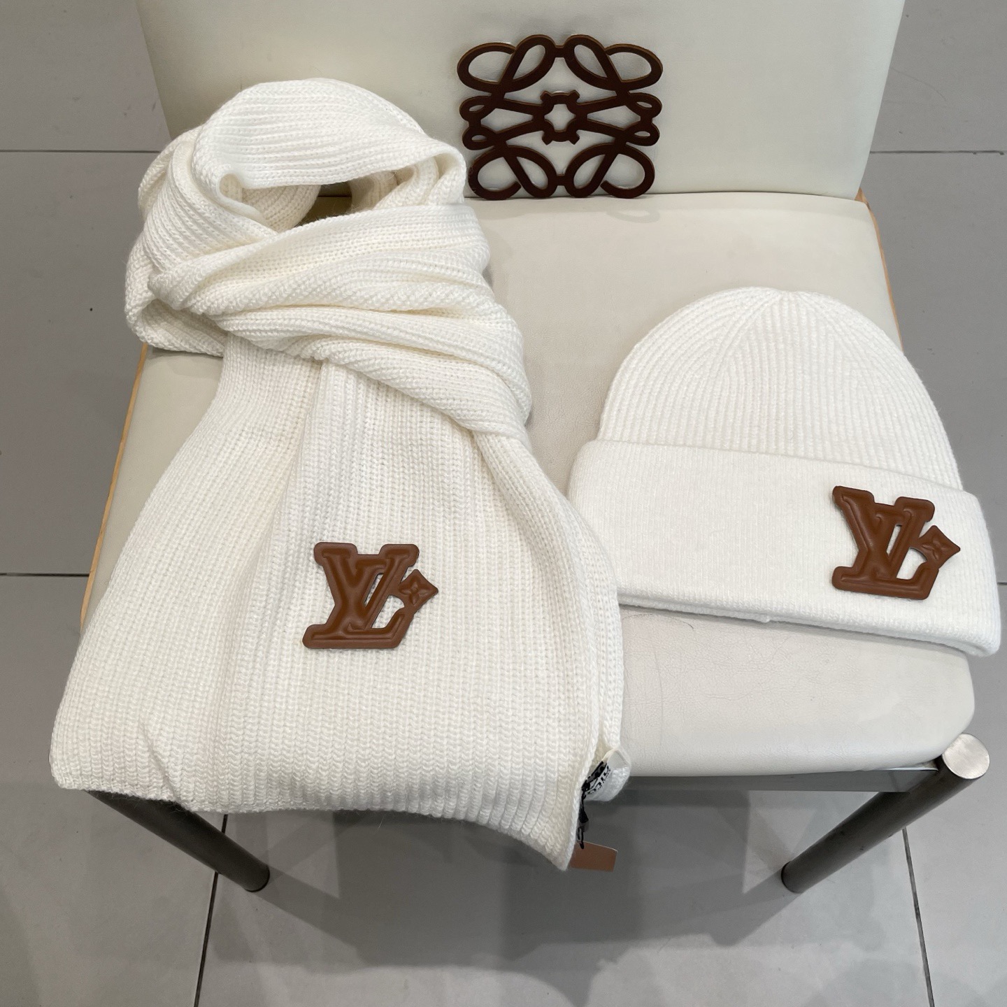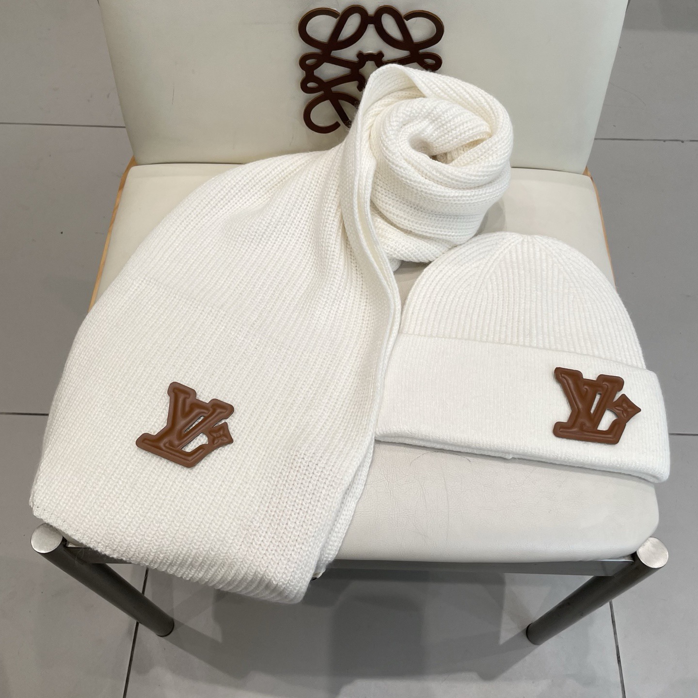 P195 Lv路易威登 【羊毛套装帽子】经典套装帽子!帽子➕围巾!暖暖哒超级舒服~冬日小姐姐减龄神器哦~这个冬天你就差这么一套套装帽子啦~又保暖又时尚!男女通用款!可以做情侣款!防伪标签吊卡齐全!多多款式,欢迎选择!